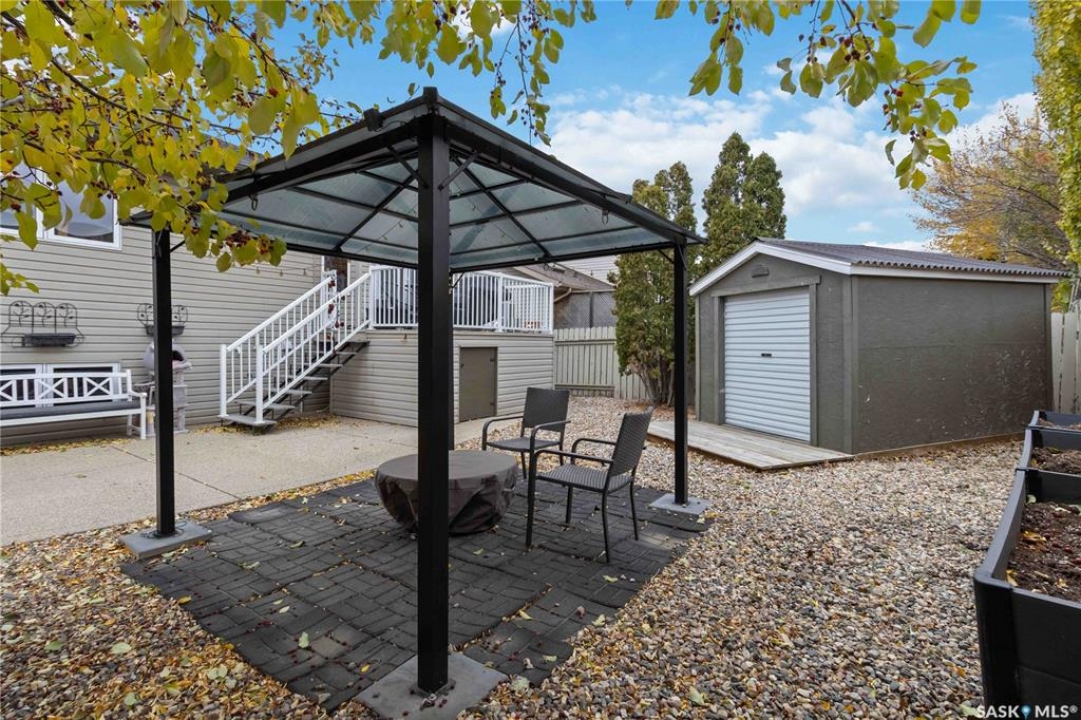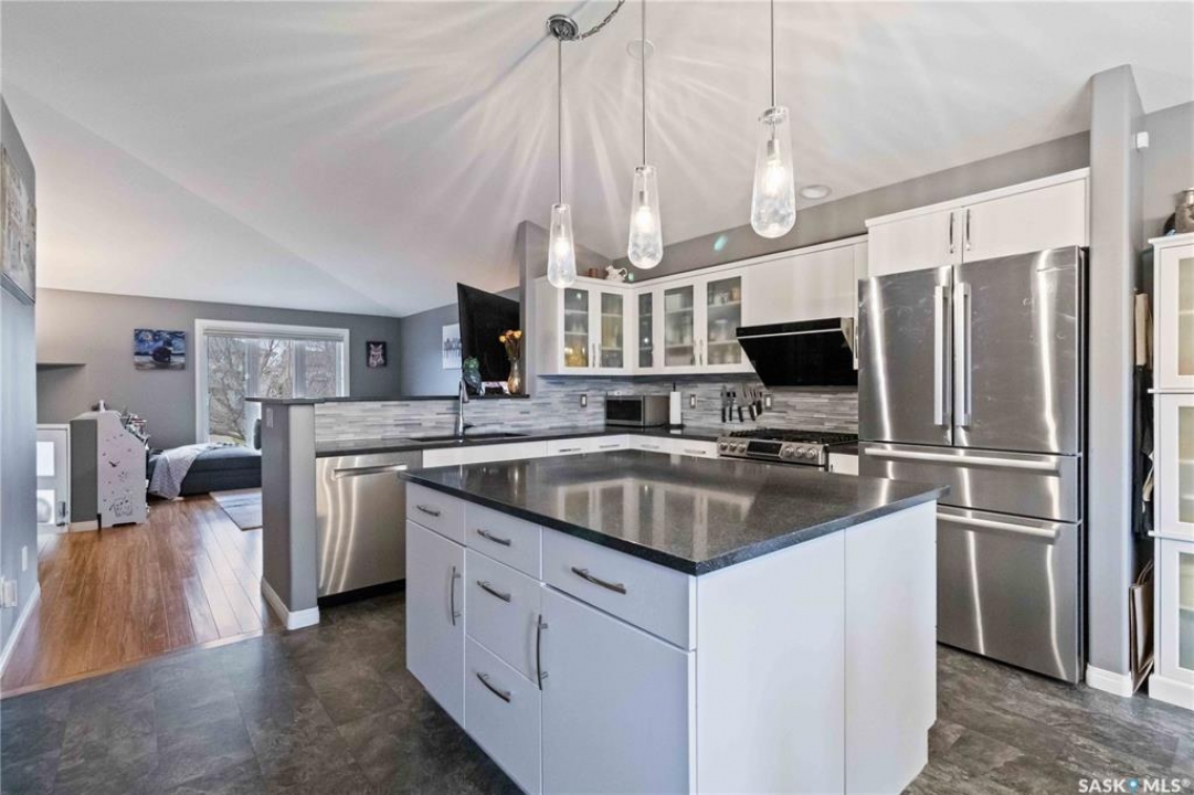 Welcome to 506 Kucey Crescent! This beautifully renovated 1256 sq ft bi-level is just half a block from the park. The main floor boasts a modern kitchen with a large island, quartz countertops, a gas stove, Bosch dishwasher, new Bosch fridge, and plenty of cabinet space. The vaulted ceiling and open floor plan create an inviting and spacious vibe. The spacious living room features updated flooring. There are three bedrooms on the main floor, along with an updated 4-piece bathroom. The primary bedroom includes a walk-in closet and an updated ensuite bath. The lower level offers a cozy family room with a gas fireplace, a pool table (included - with all accessories), two sizable bedrooms, a 3-piece bath, and a large laundry/mechanical room. Outside, enjoy the maintenance-free backyard with a large storage shed, deck with storage underneath and a gazebo. The heated, attached garage has storage, work bench and a new epoxy coated floor. This well-maintained home is in a fantastic location that's hard to beat!