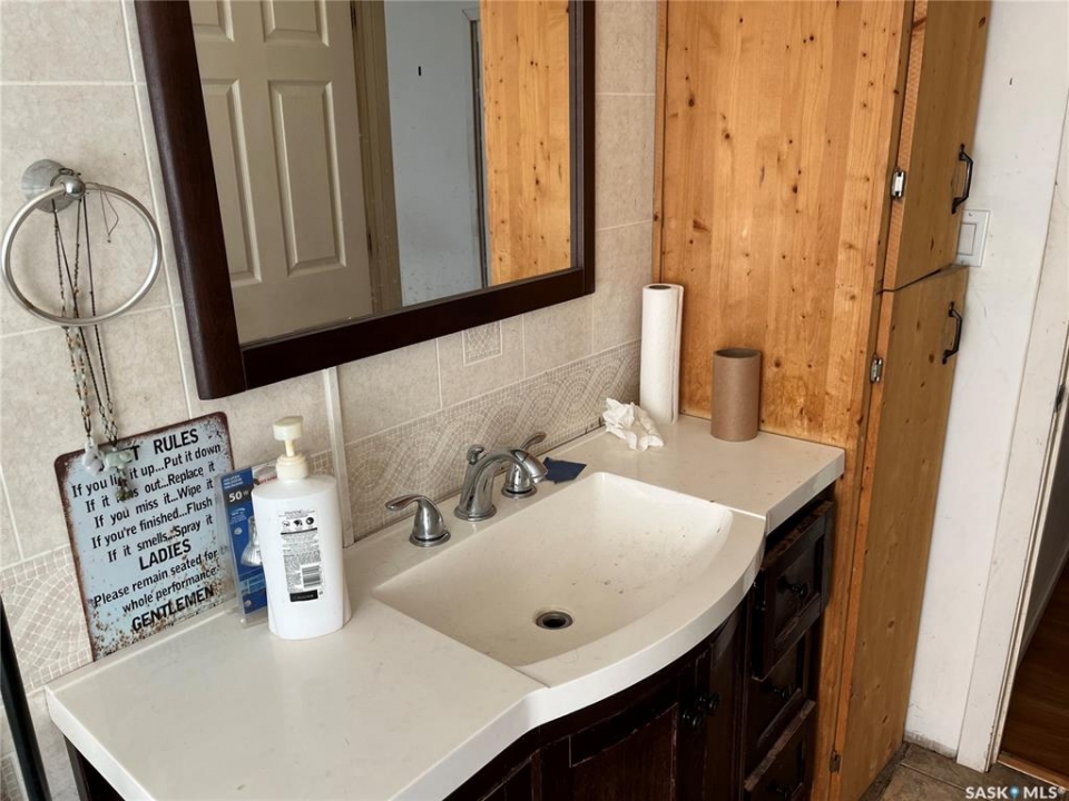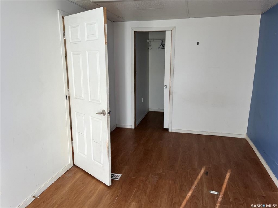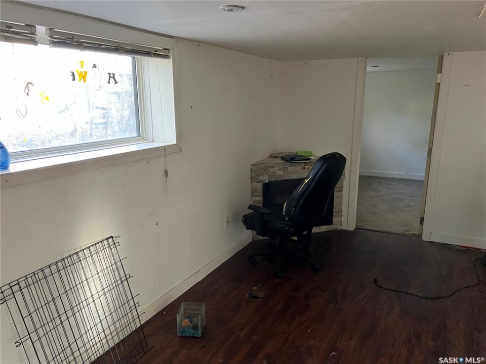 Quiet Rosemont location starter or revenue; large primary bedroom with walk in closet and garden door to deck; kitchen has granite counter top; garden doors off kitchen to deck; jet tub in bath; main floor laundry; basement developed with family room, bedroom, den and 3 piece roughed in plumbing; egress windows; three concrete walls braced and spray foamed, back wall replaced a few years ago with preserved wood; basement floor re-poured; hi-efficiency furnace; 200 amp; large garden shed and parking for four vehicles in back; fridge, stove, washer and dryer included.