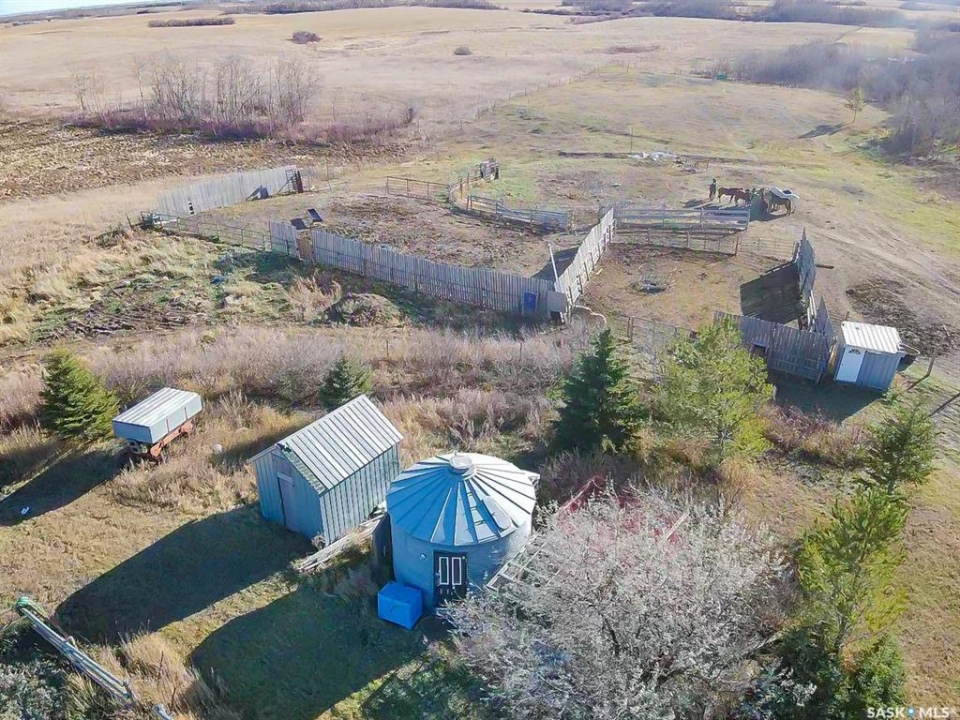 Welcome to your prairie retreat — a 20-acre acreage with tons of potential just 30 minutes east of Regina, perfectly set up for horse lovers, hobby farmers, or anyone seeking a peaceful country living with modern comfort. Located just 1.5 miles East of the town of Qu'Appelle, this property offers wide-open views, versatility, and the space to live your dream rural lifestyle. The 1,212 sq ft bungalow features 3 bedrooms up and 1 down, with spacious living room and a bright kitchen showcasing quartz countertops, vinyl plank floors, and a spectacular view of the land. The home sits on a solid ICF foundation with a 9' high basement and is equipped with a reliable geothermal heating and cooling system—offering efficient comfort year-round. The home was moved onto the foundation in 2009. Outside, the acreage is turnkey for equestrian use or small-scale livestock. You'll find a massive 80' x 160' outdoor riding arena, a 70' round pen, 4 fenced pastures, a powered 36'x 50' pole barn with an insulated and heated tack room that measures 20'x12', and a 30' x 50' Coverall Quonset with a 16' overhead door and 22' ceilings. There is also a 24' x 30' double detached garage for extra parking and workspace. The property also has a chicken coop and multiple small storage sheds. The strong-flowing well, combined with reverse osmosis filtration, provides excellent drinking water. Kids play structure is included; trampoline optional. Negotiable items include portable corral panels, roping chute, and dummy. With the perfect balance of rural tranquility and convenience, this acreage is ready for its next owner to build memories and live their country dream. Don't miss the chance to make it yours. If you're looking for more land there are 142.29 Acres available south of the property see MLS SK022451.
