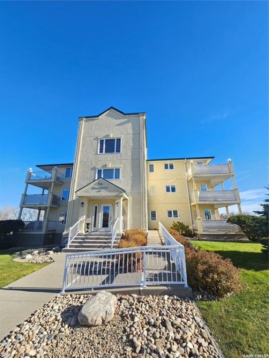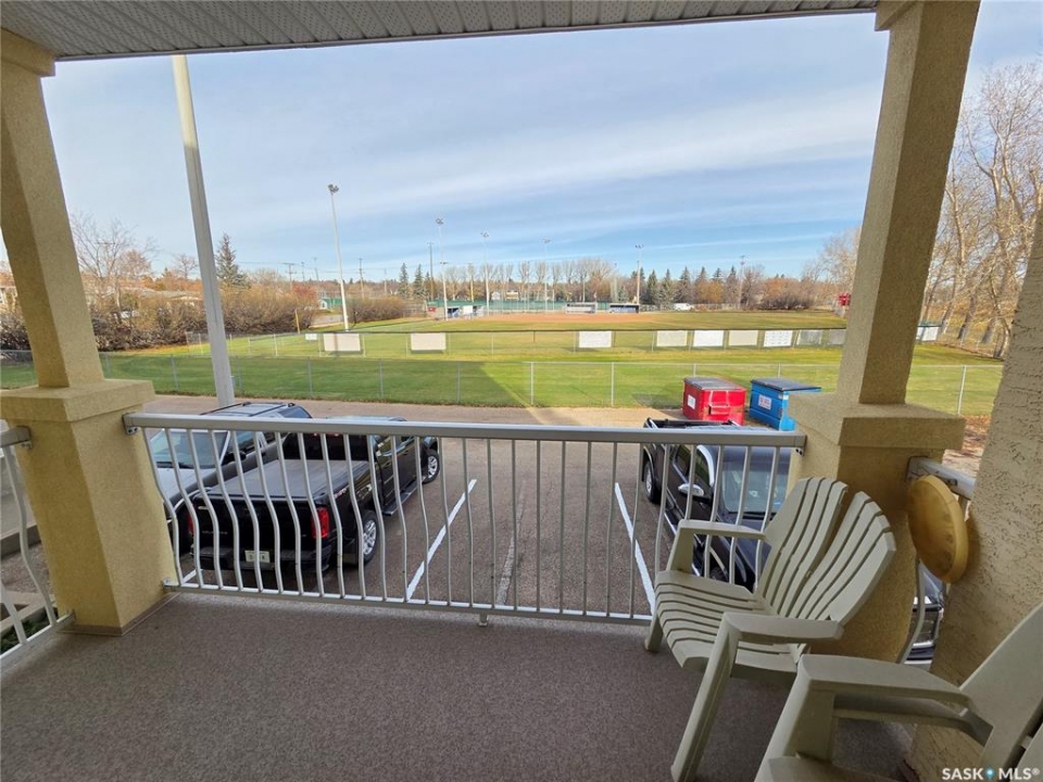Welcome to the Manhatten! Bright 2 bedroom condo on ground level. Balcony faces the ball diamond. Eat-in kitchen with lots of oak cupboards & appliances included. 2 large bedrooms --one with a full en-suite. Patio doors to cement deck. Radiant in-floor heating. Air conditioning. Elevator access to underground heated parking space and storage included. Laundry room in unit.