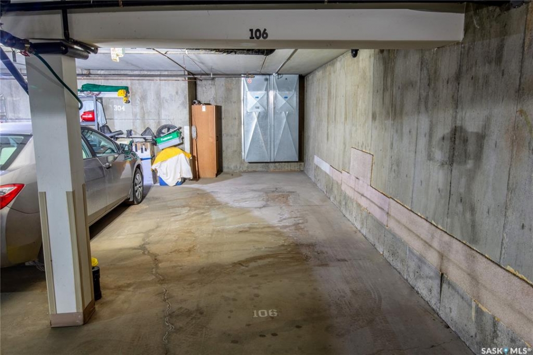 Welcome to the Manhatten! Bright 2 bedroom condo on ground level. Balcony faces the ball diamond. This corner unit allows for extra daylight from the window in the kitchen. Eat-in kitchen with lots of oak cupboards & appliances included. 2 large bedrooms --one with a full en-suite. Patio doors to cement deck. Radiant in-floor heating. Air conditioning. Elevator access to underground heated parking space and storage included. Laundry room in unit.