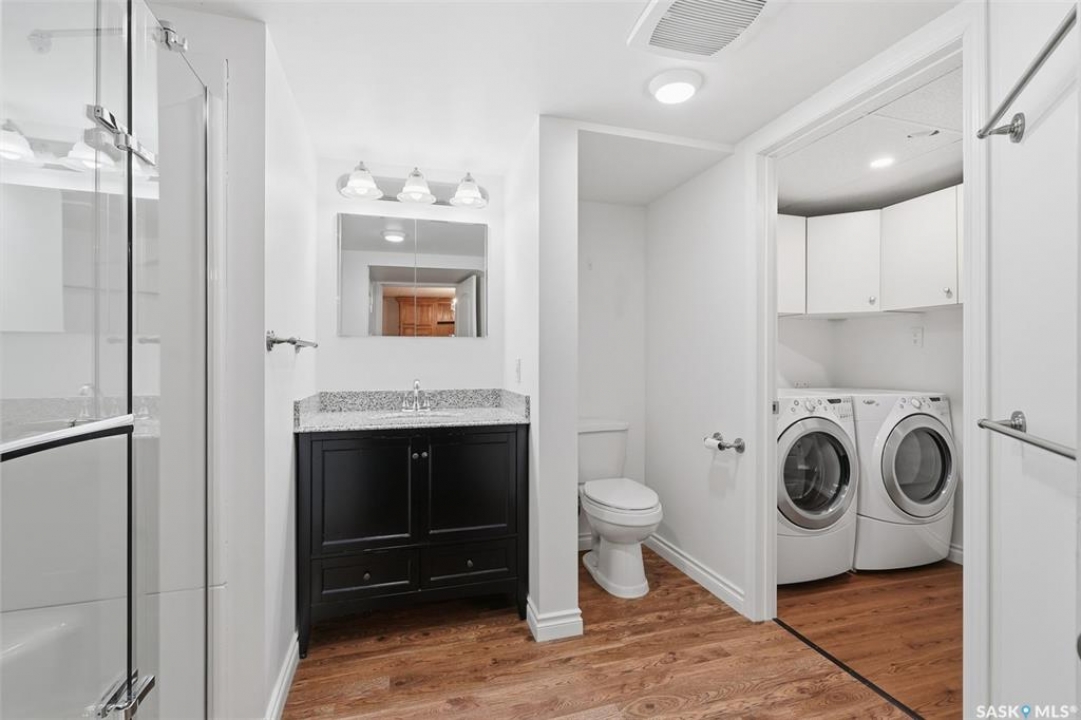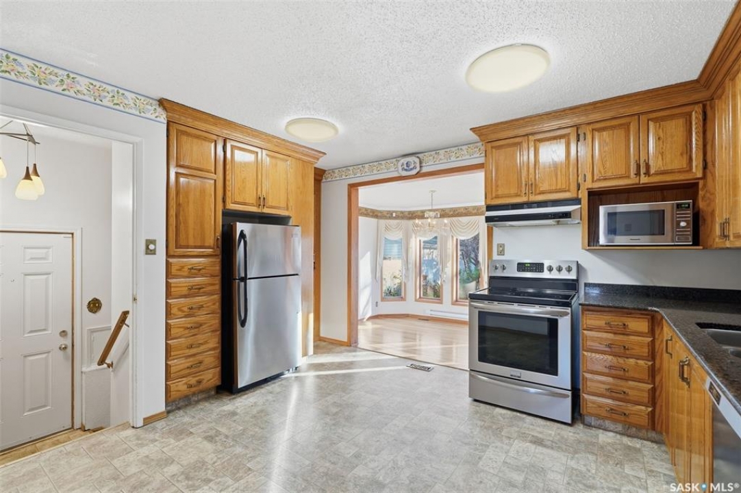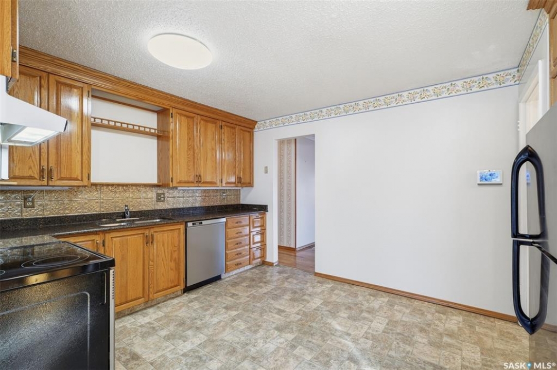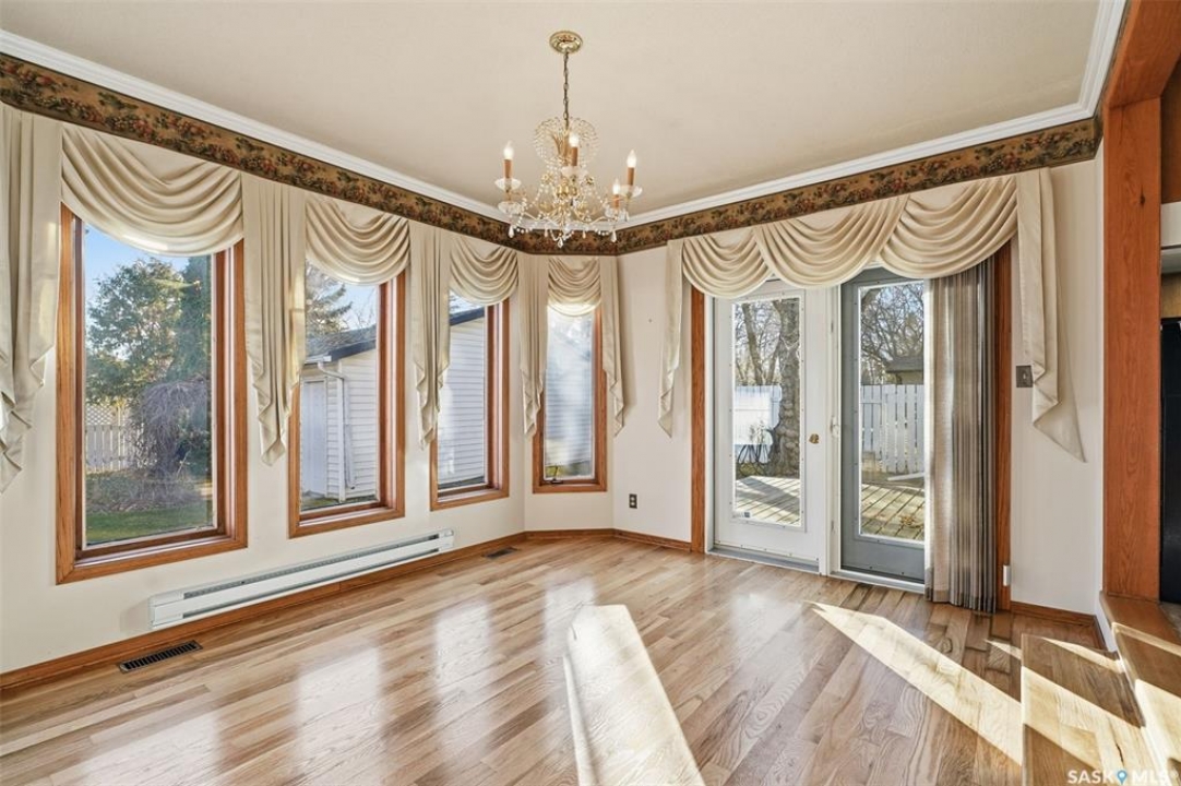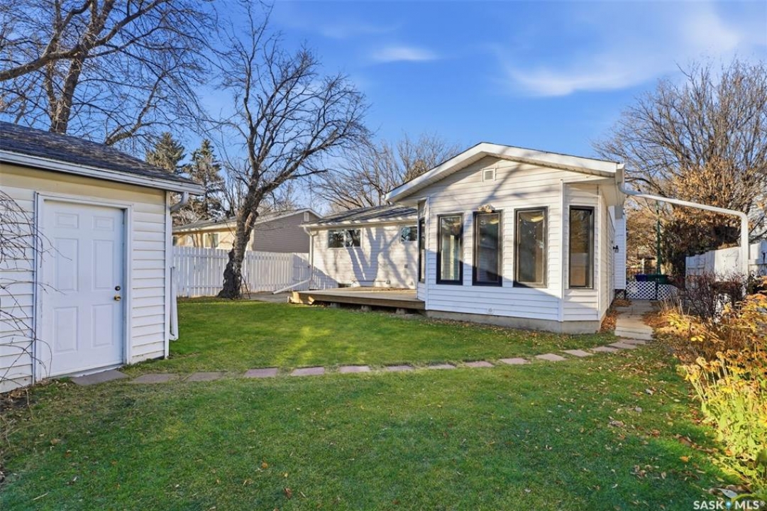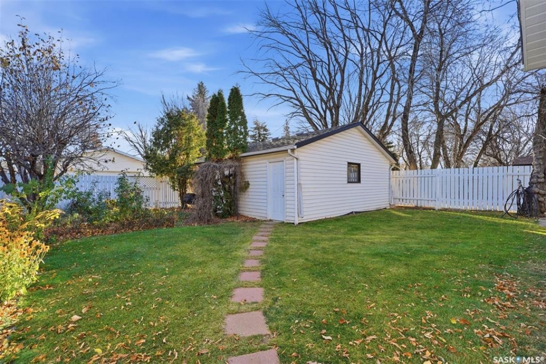 Welcome to 449 Simon Fraser Crescent, a well cared for College Park bungalow loved by the same owner since 1982. The main floor features beautiful original hardwood flooring, a bright living room with a bay window, a dining room addition filled with natural light, and an updated kitchen with oak cabinets and quartz counters. There are three bedrooms and one bathroom on the main level.The finished basement includes a cozy family room with a gas fireplace, a second bathroom, a den with a window and plenty of storage. Some areas of the home are dated, including original curtains and older basement carpet, but the home has strong bones and great potential.Updates include newer shingles and eaves and two fully permitted additions. The 24 by 26 garage adds excellent parking and storage. Located close to schools, parks, College Drive and the University of Saskatchewan, this home offers comfort, character and a chance to make it your own.