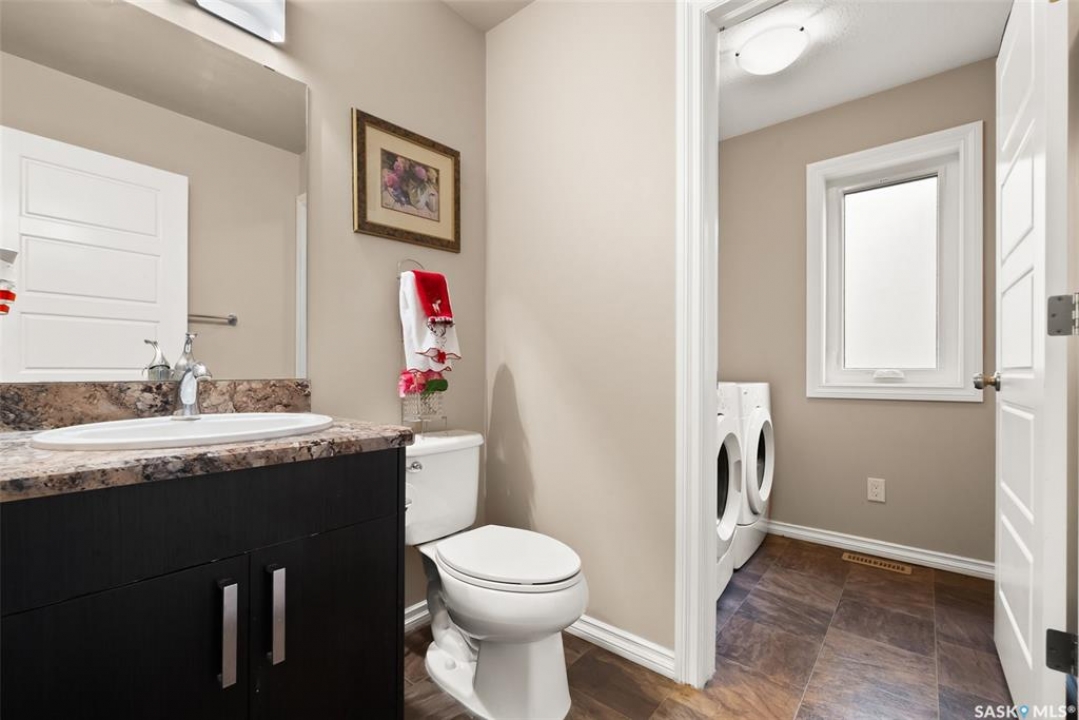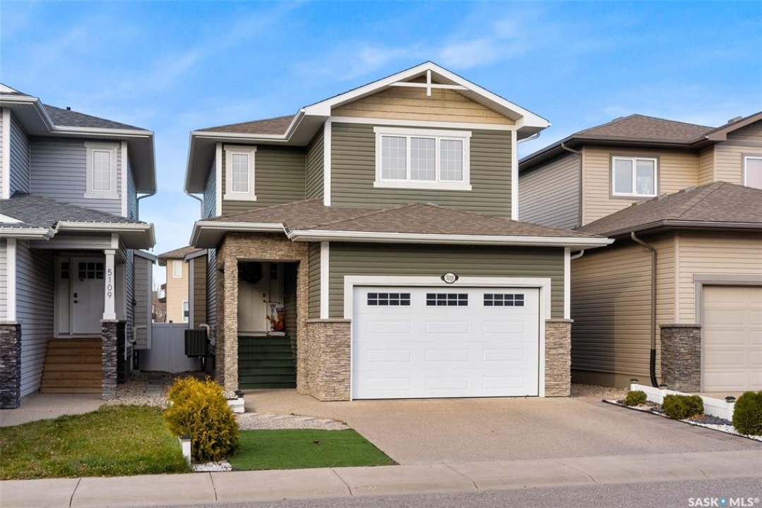 Welcome to 5113 Aerial Crescent. This 3 bedroom 3 bathroom family home in Harbour Landing combines modern comfort and thoughtful design. With attractive curb appeal, stack stone accents, and a covered front entry, the home welcomes you into an open-concept main floor. The kitchen offers plenty of space with soft-close cabinetry an island, and a great view of the living room, which is centred around a cozy gas fireplace. A convenient laundry area and 2-piece bath complete the main level. Upstairs, you'll find three spacious bedrooms and two bathrooms, including the primary suite with a 5-piece ensuite with two sinks, and a huge walk-in closet. The insulated basement is open for development, with a rough-in for a future bathroom and space for a 4th bedroom. Step outside to enjoy a fully finished backyard featuring a 10'x12' composite deck with pergola, PVC fencing, and a lush grass area, ideal for relaxing or hosting friends. Additional highlights include an 18' x 24' attached garage with direct entry, central A/C, and a prime location near walking trails, multiple neighbourhood parks and the Grassland shopping area.