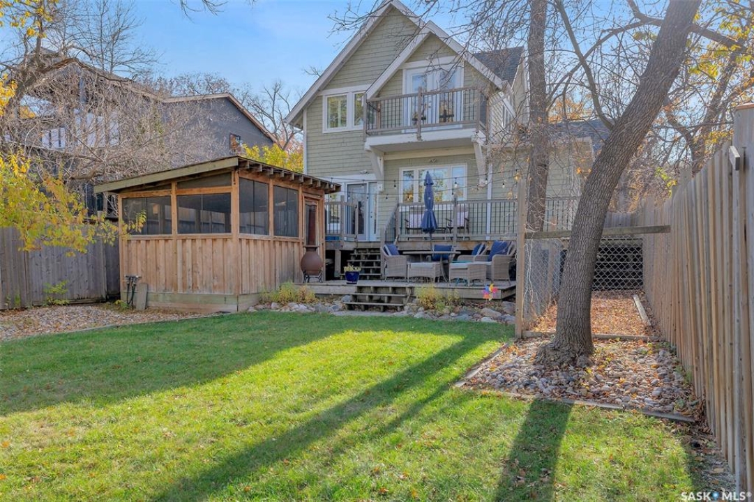 Welcome to 2736 Regina Ave. located in the heart of the desirable Lakeview neighbourhood. This lovely 3 bed, 3 bath home offers a unique combination of original character and modern charm. Timeless, warm, cozy and charming all wrapped into one! This property backs onto Rotary Park and Wascana Creek. Steps away from Wascana Park, and a short walk to Kiwanis Park make this location hard to beat! The upgrades and improvements that have been done to this home over the years are evident throughout. Spacious front foyer welcomes you as you enter the home. Beautiful living room offers an abundance of large windows and hardwood flooring making this the perfect cozy spot to relax and spend time with family and friends. Gorgeous kitchen features cathedral ceilings, heated tile floor, cappuccino maple cabinets, pantry and an eating bar. Dining area off the kitchen is perfect for Sunday dinners. Family room off kitchen and dining area features a gas stove, and garden doors that lead to the outdoor two tiered deck space overlooking the park. Mudroom off of side entrance offers a custom storage bench. Two piece powder room and spacious laundry room complete the main level. Upstairs is the primary retreat that is an actual retreat! Very unique space that includes vaulted ceilings, dual closets, a balcony overlooking the park, a lovely 5 piece ensuite and sitting area. Two additional bedrooms that show off the original character of the home featuring original hardwood flooring, and an additional 4 piece bath complete the second level. Park like backyard offers a lovely deck space and gazebo. Lots of side street parking on the west side of the house is an added bonus! This home is a pleasure to show.