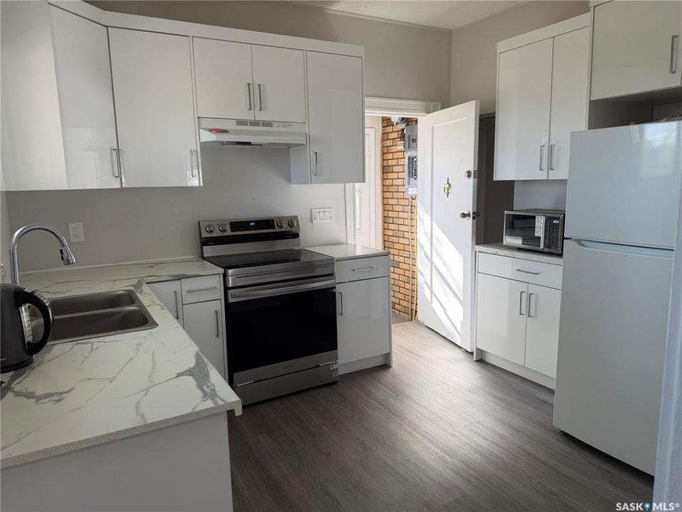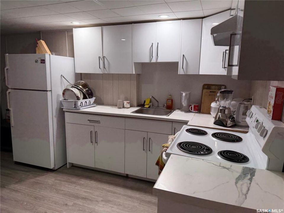 Located directly off Idylwyld Drive with immediate access to downtown, Saskatchewan Polytechnic, transit routes, and 33rd Street amenities, this 6-bedroom, 2-bathroom character home in Caswell Hill presents a solid revenue property or value-add opportunity. Currently tenanted month-to-month and tenants are interested in staying. Enter through the front foyer into a spacious living room with vinyl plank flooring throughout. The three main floor bedrooms are adjacent to the living room, along with a three-piece bath. Continue through to the updated kitchen and dining area featuring newer cabinetry and brand-new appliances, where you'll find the separate entry leading to the back garage and parking area. Head downstairs to discover the shared laundry room, three additional bedrooms, a second full kitchen, living space, and a four-piece bathroom. The lower level walkway shows concrete flooring, offering opportunity for improvement with proper finishing. Recent updates include newer furnace, new roof, LED lighting throughout, most windows replaced, and new appliances. While cosmetic updates have been completed, this property presents significant room for enhancement and value-add potential. Whether you're capitalizing on strong student rental demand near Sask Poly, or developing a mortgage helper with proper finishing touches, the bones are solid. Single detached garage plus concrete driveway parking.Buyer and Buyer Rep to verify all measurements.