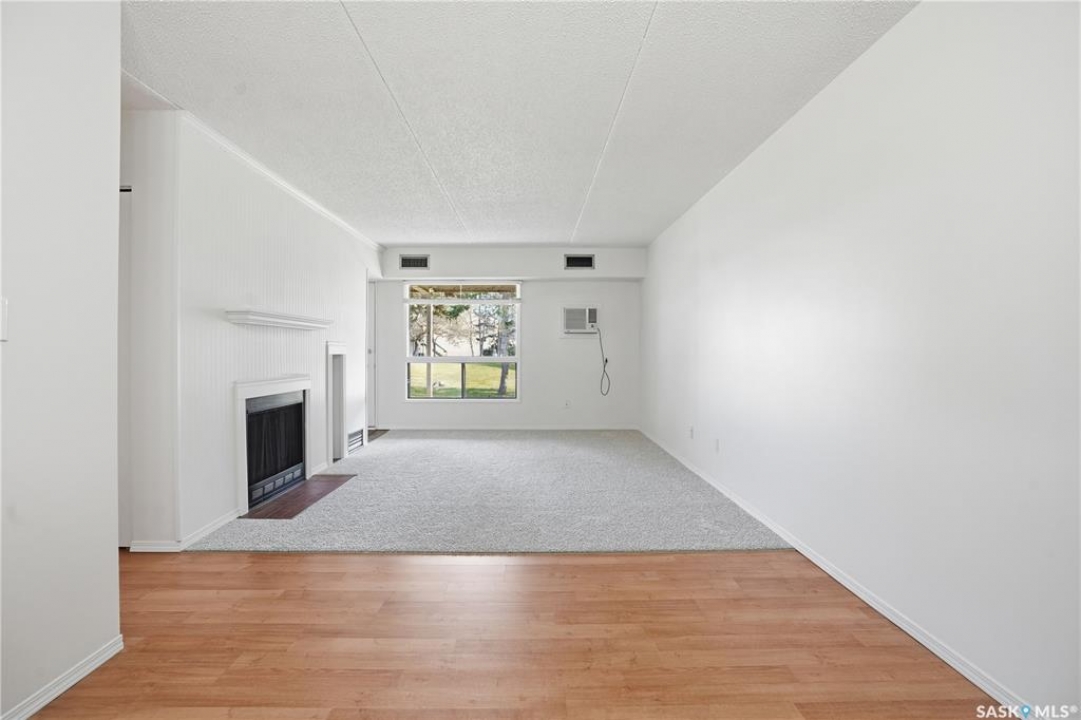 Welcome to easy living in this move-in ready 1 bedroom, 1 bathroom ground-floor condo. Freshly painted and featuring brand-new carpet, this inviting home includes a cozy wood-burning fireplace—perfect for relaxing evenings in. The layout offers a spacious dining area, a kitchen with plenty of cabinetry, and a large in-unit laundry and storage room for added convenience. The 4-piece bathroom is clean and functional, and the east-facing patio overlooks peaceful green space with an outdoor storage room for extra space. Enjoy the ease of condo living, with fees that cover water, snow removal, lawn care, exterior building maintenance, a healthy reserve fund, and more. Ideally located close to north-end amenities, shopping, restaurants, and public transportation, this condo offers both comfort and convenience. Quick possession available—move in and enjoy!