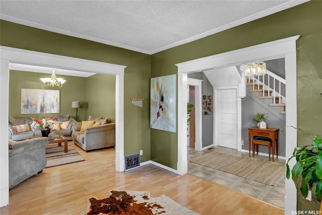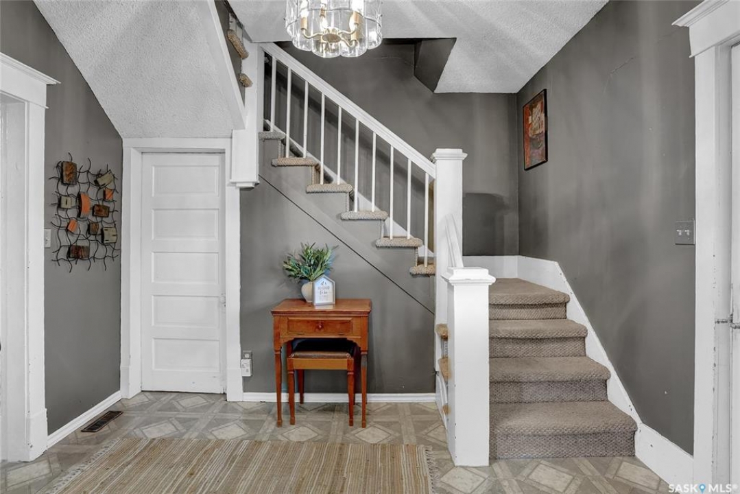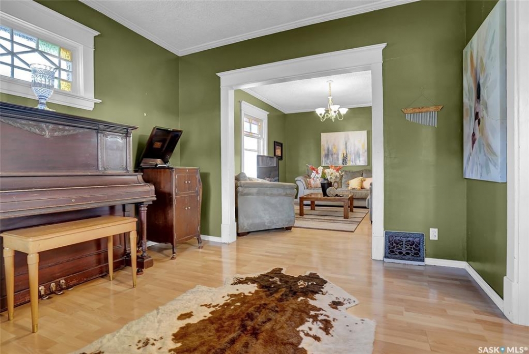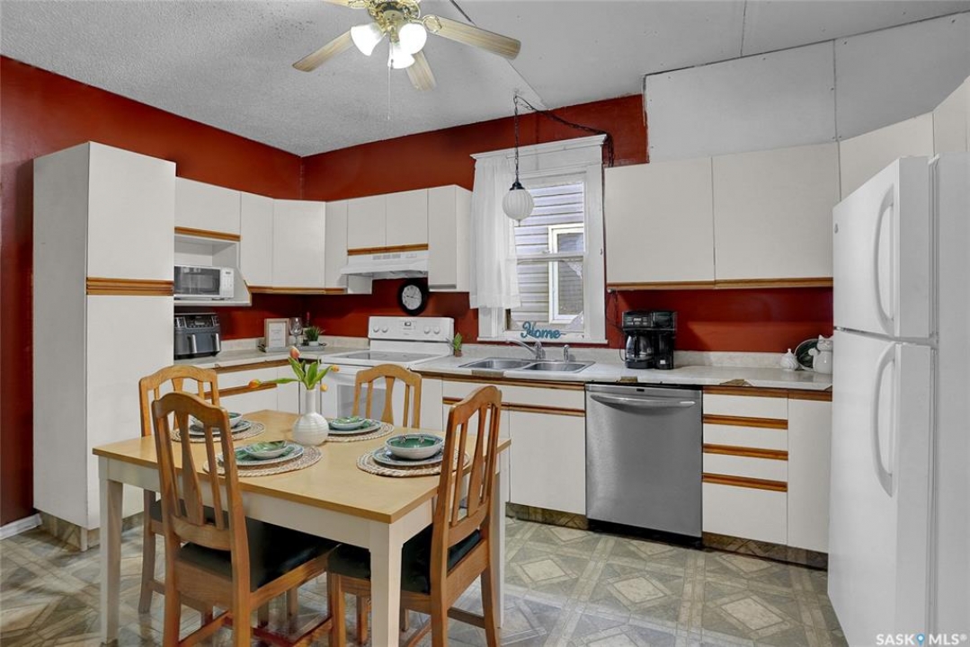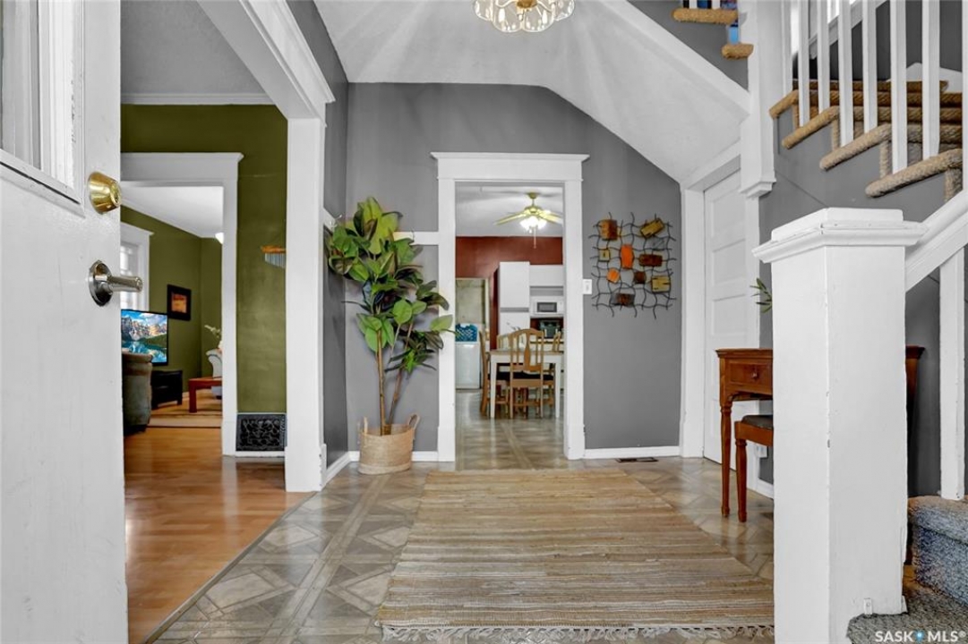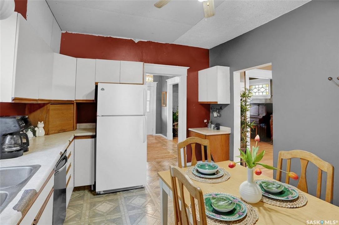 Nestled on a tree-lined street in the “Avenues of Moose Jaw” this home has been owned by the current over 20 years where they cherished creating family memories. It is being sold as is, where is...and price to sell. Perfect for anyone wanting a project. It is ready for new owners to add their personal touches to create their own memories. This 1.5 Storey home invites you by the front open veranda that is the starting point to welcome you & guests into the foyer. This opens into the Living Room with laminate flooring running into the Dining Room, great spaces to entertain and relax with the family. The kitchen with European style cabinetry has great cabinetry storage, and note where there is new drywall placed, the stack to the home has been recently replaced. Off the kitchen is a mudroom which also houses main floor laundry, and the seller has started to install/renovate a bath (not completed), toilet is included (not completed). The 2nd floor enjoys not only the primary bedroom which is sized for a king size suite but 3 additional bedrooms making it a 4-bedroom home. This floor is complete with a 3pc. Bath that has been updated. The lower level is set for a possible family room, storage, and utility. The yard is set with nice green space and parking off alley and a Shed. This is a home priced to sell. Call today for your personal tour and CLICK on the MULTI MEDIA LINK FOR A FULL VISUAL TOUR.