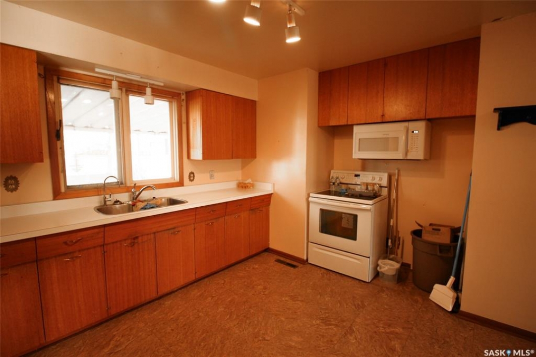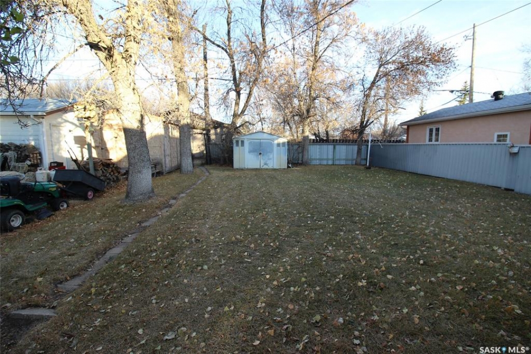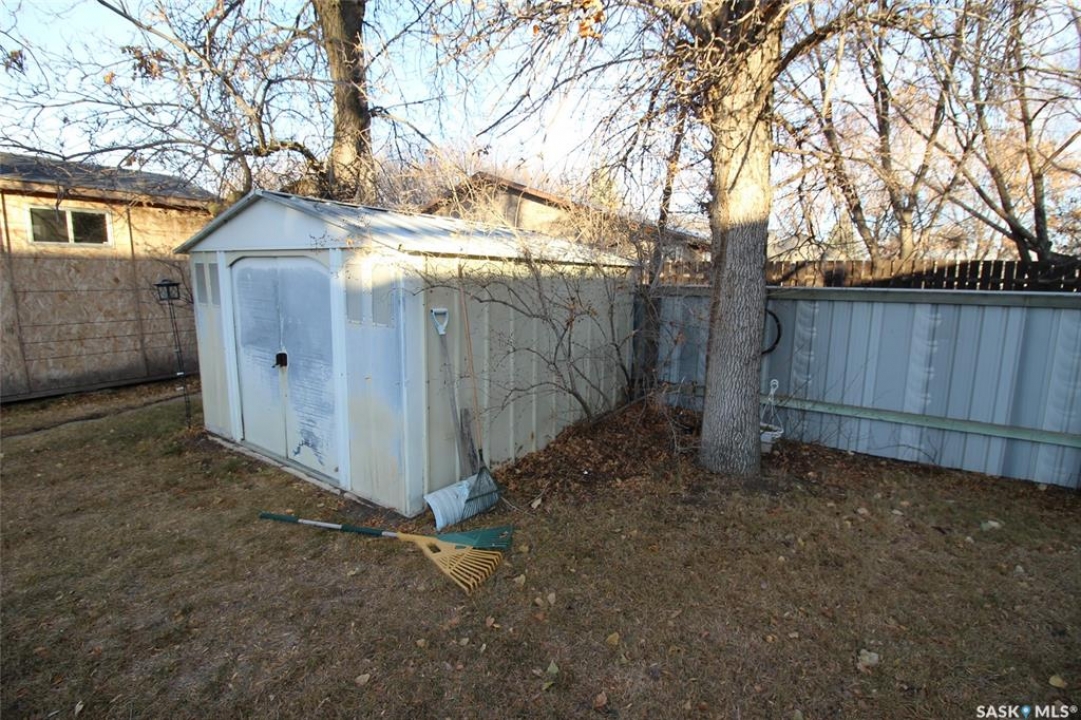 This charming little dollhouse on 6th Avenue West in Shaunavon is the perfect place to begin your homeownership journey. Ideally located on the north side of the Public School yard, your everyday view is filled with the sound of laughter and the sight of children at play — a truly heartwarming backdrop. Step inside to a welcoming entryway that opens into a bright, spacious living room. Between the living room and kitchen sits a cozy dining area, perfect for family meals or morning coffee. The kitchen overlooks the backyard and offers an impressive bank of cabinets, ample workspace, and room for a breakfast table. Both main-floor bedrooms are generously sized and filled with natural light, while the full 4-piece bath is neat and functional. Throughout the home, you'll find beautifully preserved mahogany doors, trim, and solid wood accordion-style closet doors that add character and warmth. Downstairs, the fully developed lower level features a massive family room with a gas fireplace — an ideal spot for movie nights, games, and gatherings. A spacious guest bedroom and a second 3-piece bath offer great flexibility, while the laundry area provides extra storage space. Notable updates include a high-efficiency furnace (2011) and a new hot water heater (2015). Outside, the backyard is ready for relaxation, featuring a covered patio, a large lawn, and fencing on two sides. A garden shed is also included to keep your tools organized. This is a well-loved, move-in-ready home with timeless charm and thoughtful updates — an incredible value in a great location!