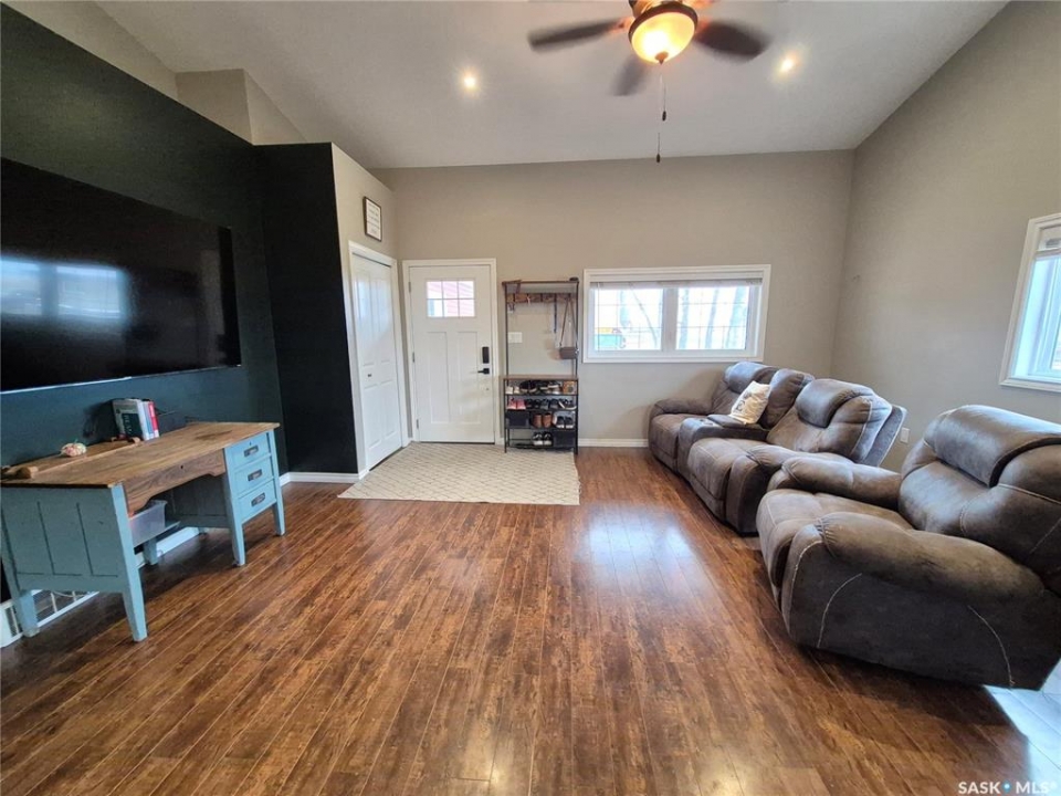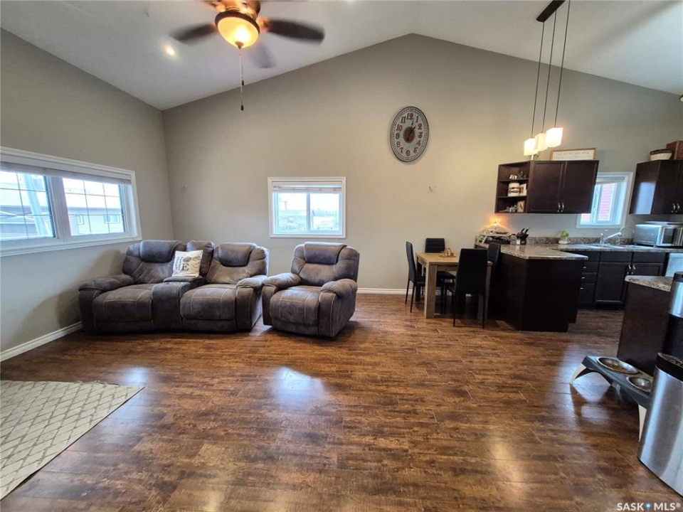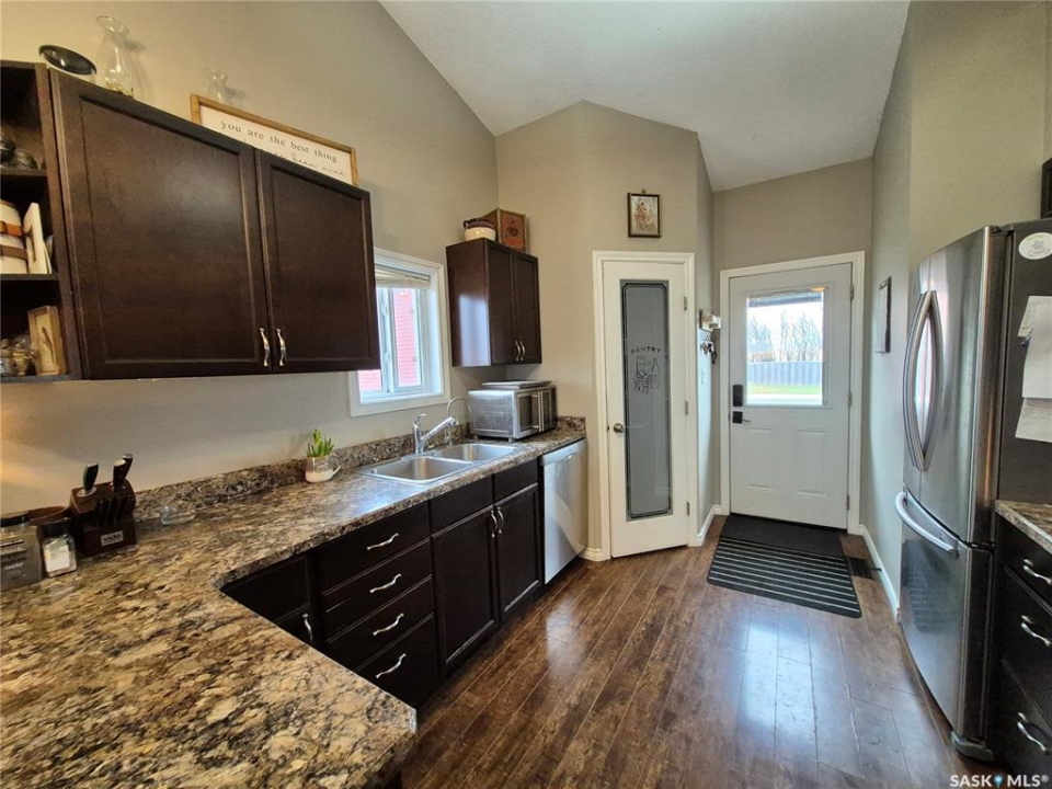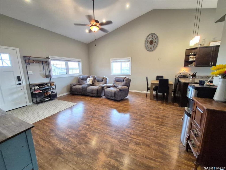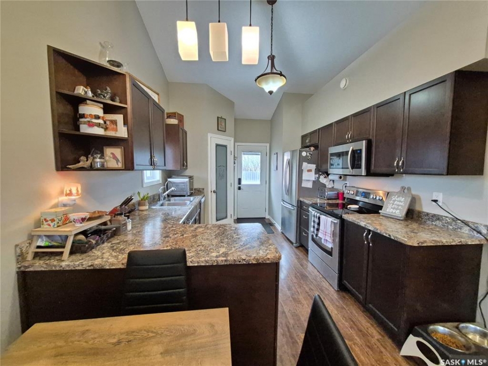 Welcome to 712 Railway Ave in the bustling country town of Pangman! This 1248 square foot, 2014 built home features vaulted ceilings, large living spaces, and beautiful kitchen with stainless steel appliance package. The bedrooms are very nicely sized, with the Master boasting a huge walk in closet, and full 4 piece bath. The mudroom/laundry room could also double as an office area, play room or a great storage area. The double car attached garage includes a ton of storage space with built in racks above the doors, and a mezzanine next to the door. The 30 x 40 shop at the rear of the property is fully insulated, and heated and boasts 2 roll up doors, 220 volt plugs, and 12' ceilings. It is an ideal place to work on projects, park vehicles, and has lots of storage space. Set back on the lot, this location offers a ton of privacy, and lots of space for parking. The fully fenced backyard offers a deck, firepit area and plenty of room for the kids to run and play! A/C installed just a couple of years ago, the shop has spray foam insulation throughout, as well as the ceiling in the house is spray foam insulation. Pangman offers a grocery store, gas station and hardware, library, insurance, cafe, unique museum and ice cream shoppe, as well as a K-12 School and daycare. This property is at the very edge of town, with prairie views, but all of the amenities of town living.
