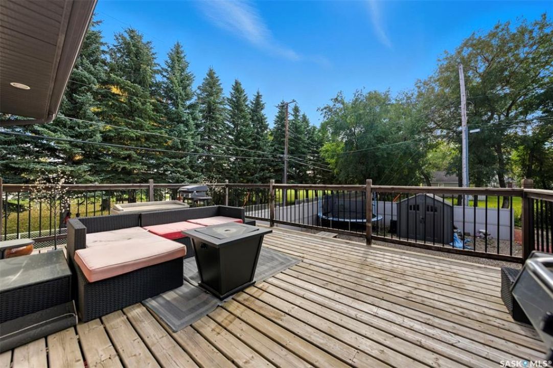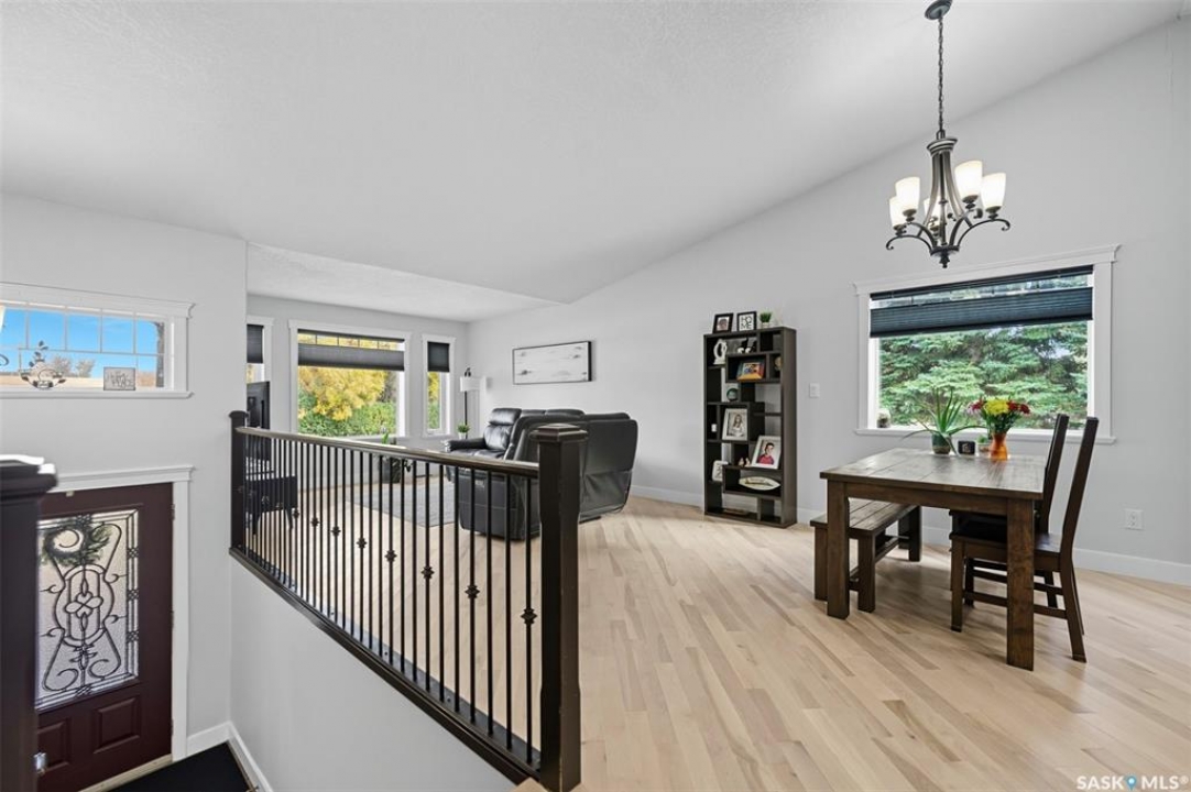 Prepare to be impressed by this stunning modified bilevel in the busy town of Watrous! Step into the roomy entrance with porcelain tile floors and a huge closet. Main level has an inviting open concept living room, dining area and kitchen - perfect for family living and entertaining! The huge kitchen is a chef's dream, offering an incredible amount of maple cabinetry with ample counter space, corner pantry and updated stainless appliances. Beautiful hardwood floors extend throught the main living areas ind into the bedrooms, enhancing the warm and welcoming atmosphere. The deck overlooking the backyard is easily accessed from the kitchen, offering ideal space for outdoor enjoyment. The spacious primary suite is a true retreat, complete with double sinks and a separate tub and shower in the ensuite. A huge walk in closet completes the suite. A full bath with custom tile work, and laundry with storage and folding counter are easily accessed from the main living area or the 3 bedrooms on the 2nd level. Custom blinds throughout provide privacy and light control. Downstairs, you''ll find a sprawling family room, a den and bonus room (currently set up as home gym), 2 more bedrooms, a 3 pc bath with tiled shower and the utility room. Foyer also accesses the double attached heated garage. Concrete driveway and stamped concrete sidewalks are the icing on the cake. Back yard is mostly fenced and xeriscaped - easily customizable for your best use. There is an alarm system hardwired but not currently active.Located just off Main Street behind the cenotaph park, this home is footsteps to the elementary school and all the amenities of down town. Watrous is a thriving community within 30 minutes of 3 mines and 45 minutes from BHP Jansen. Saskatoon is just over an hour away, and Regina is under 2 hours. Resort Village of Manitou Beach is 5 minutes away. Call today for your viewing appointment!