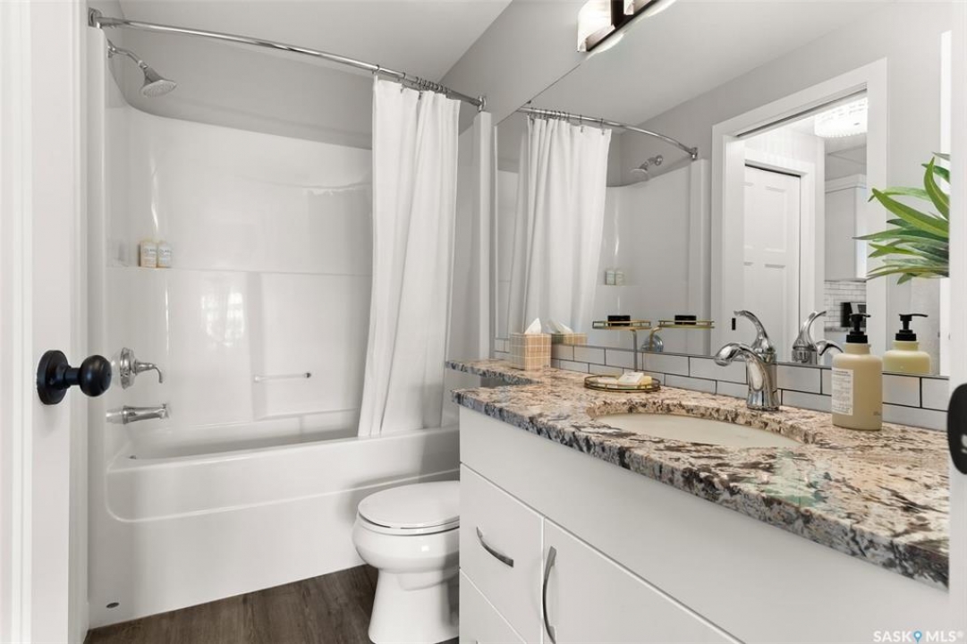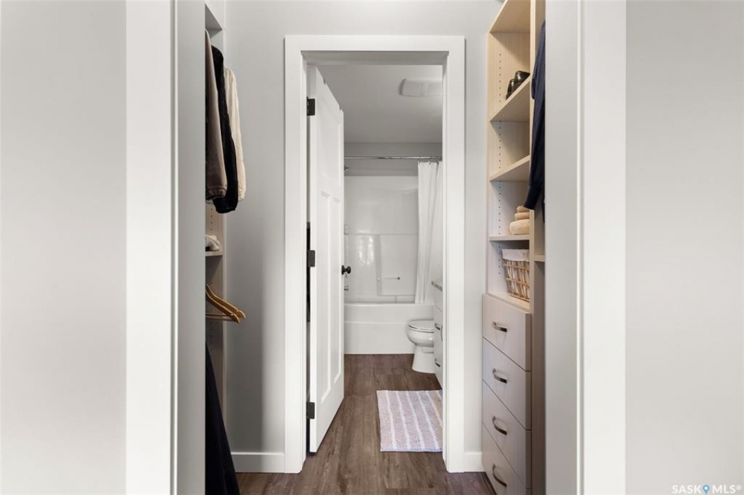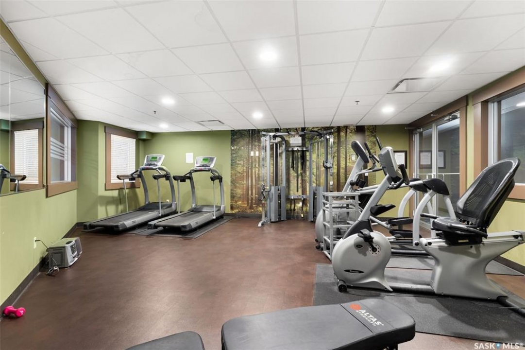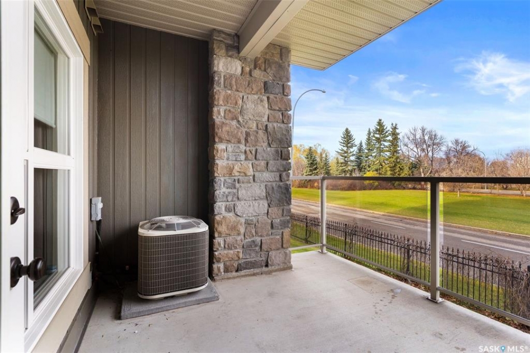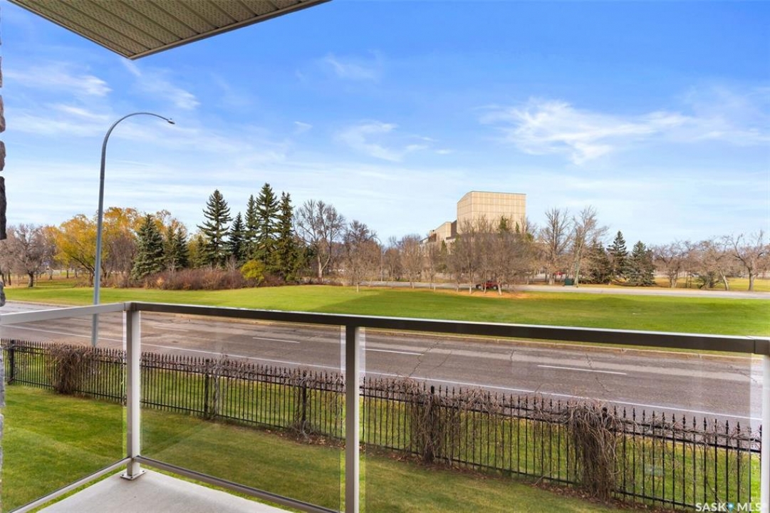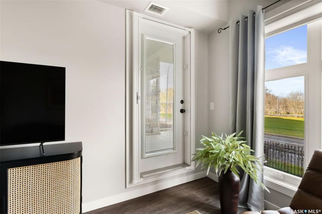 Located in Hillsdale across from Wascana Lake with great access to the U of R, Downtown and all of Regina's South amenities is this modern, upscale one bedroom condo in the Bellagio. Enjoy the sunlit mornings from the comfy living room that overlooks the manicured landscaping surrounding the Bellagio. The dining area has built in cabinetry with quartz counter tops that seamlessly integrates elegant dining area cabinetry for your dinnerware and multipurpose as a workspace desk. The dining room design maximizes space with a luxurious functionality. Opposite is the custom designed wine rack with extra space to display your stemware. The chic, inviting white kitchen will inspire your culinary skills offering pull out drawers, subway tiled backsplash, quartz counter tops, stainless steel appliances and an eating bar for extra seating. The primary bedroom overlooks the front balcony with large east facing windows, vinyl plank flooring that seamlessly runs through the custom designed walk-through closet to the 4-piece bath. The bathroom is a modern luxury retreat. The granite countertop has unique veining patterns to add timeless elegance and a soothing touch to your bathroom. The condo unit is complete with an in suite laundry area & storage space. Capping it all off, the unit comes with a secured underground parking stall with storage cabinets, plus the Bellagio offers an amenities room and a gym.