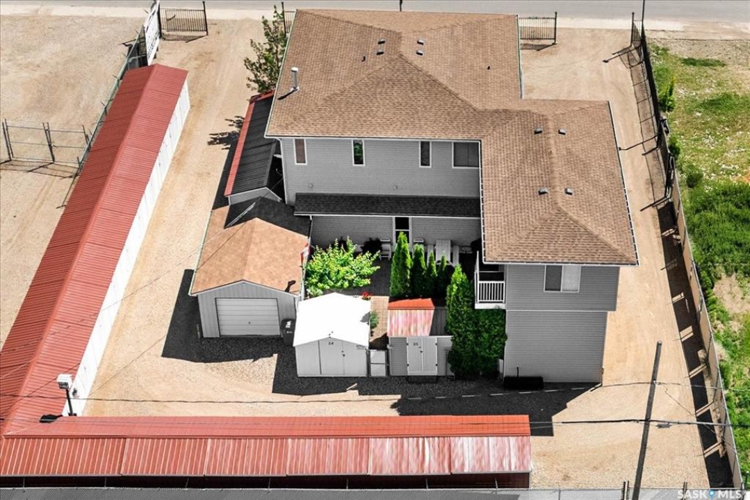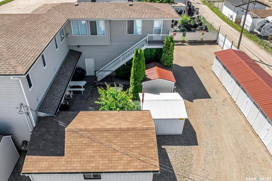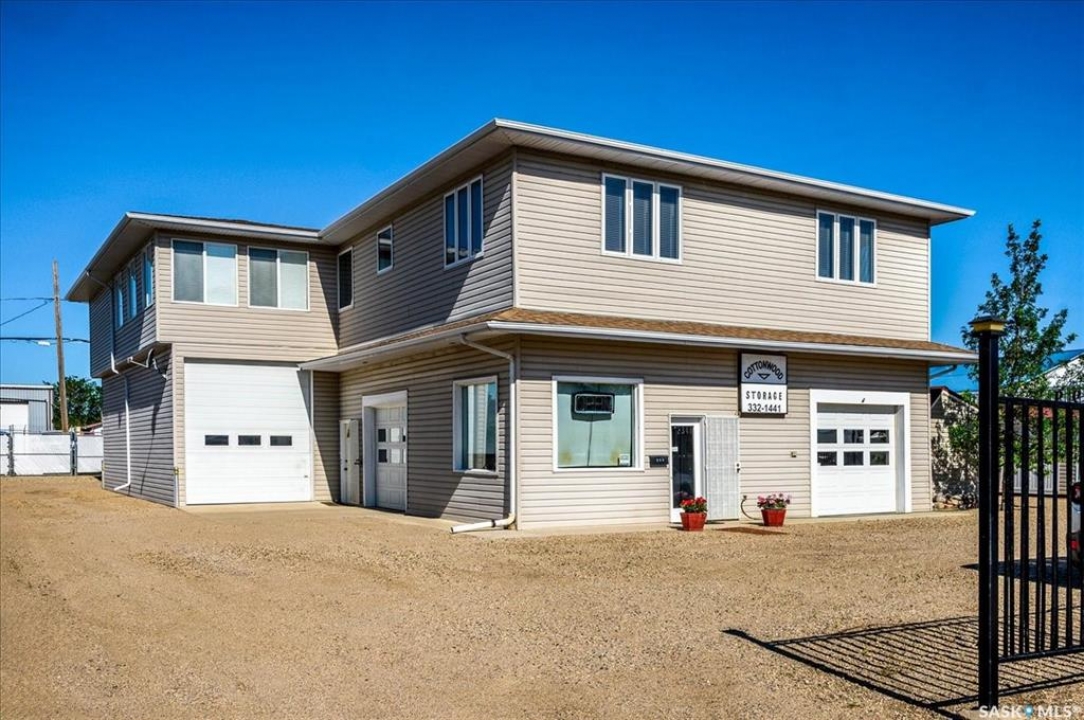 RESTORED AND RENOAVATED PROPERTY with a remarkable opportunity awaits for various businesses in this unique, ONE-OF-A-KIND commercial/residential property. This prime property spans approximately 4,000 Sqft of building area on a secured 15,000 sqft lot fully fenced. It features a beautiful 1800 sq ft residence with an addition of 280 sqft where the next owner can finish that space according to their needs. This distinctive property includes commercial shop space, a thriving mini storage shed business with 25 units and a beautiful residence with a 360 view of the Qu Appelle Valley as well as a store front and secured lot where a very successful car business operated. The main level houses a large shop. office, mechanical room, 2 heated garages with over head doors, one equipped with the luxury of a floor drain and power washer for you own car wash area. There is a 44 X 14 RV garage fully insulated and heated and has a 4-post vehicle lift. Other amenities on the first level includes a 2-piece bathroom, a guest suite with Murphy bed and 3-piece bathroom and freight elevator. The back of the building area has a private courtyard with a beautiful brick patio, natural gas barbeque hook up, trees and shrubs. There is a 20 x 16 hobby garage that has already been set up for in floor heat. The residential area on the upper level has large windows on all sides, allowing a beautiful view from all directions. This level has a large kitchen with panty, ample kitchen custom-built cabinets, large living room with office space, large family room two large bedrooms one being a luxurious master suite with 5-piece ensuite and large walk-in closet, nice size laundry room and 3-piece main bathroom. As soon as you walk through the doors this location is providing you an income with the mini storage business, and ample additional space to start your own dream business in the beautiful progressive community of Fort Quppelle.