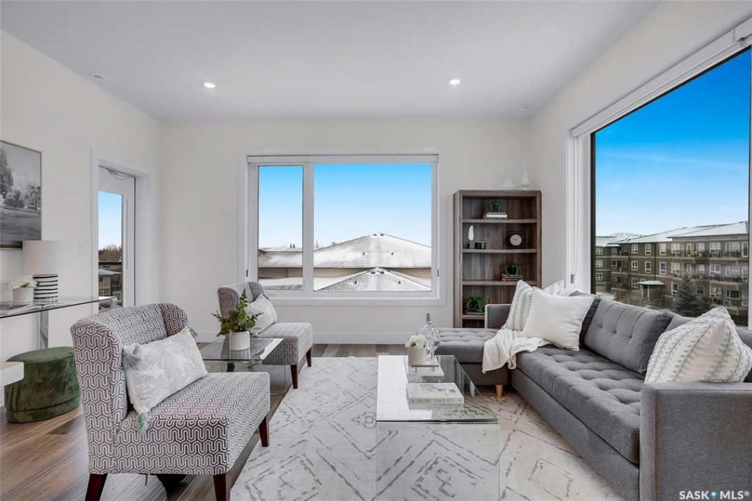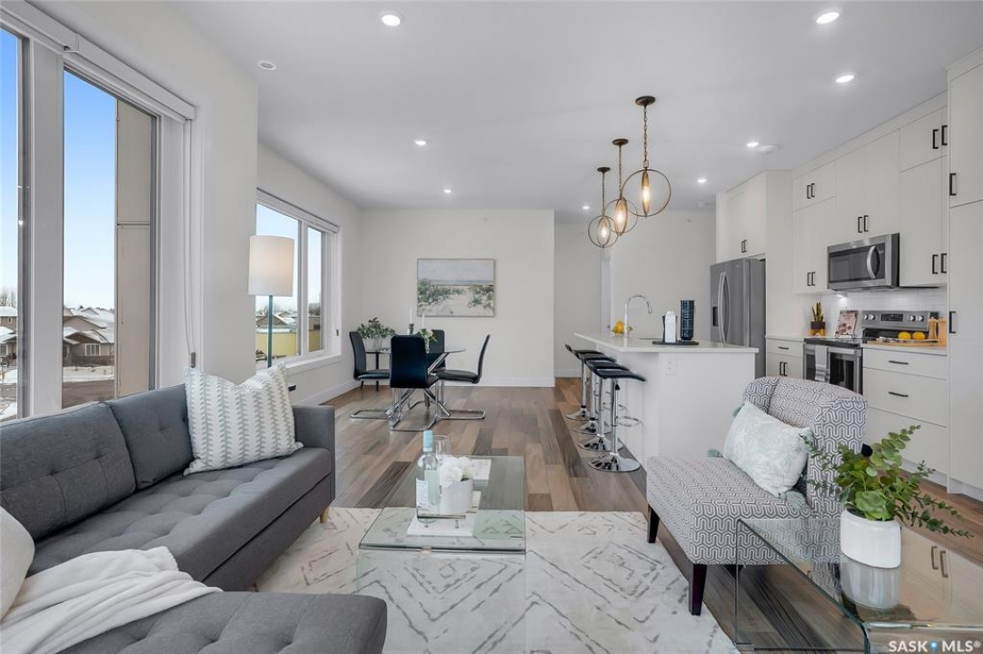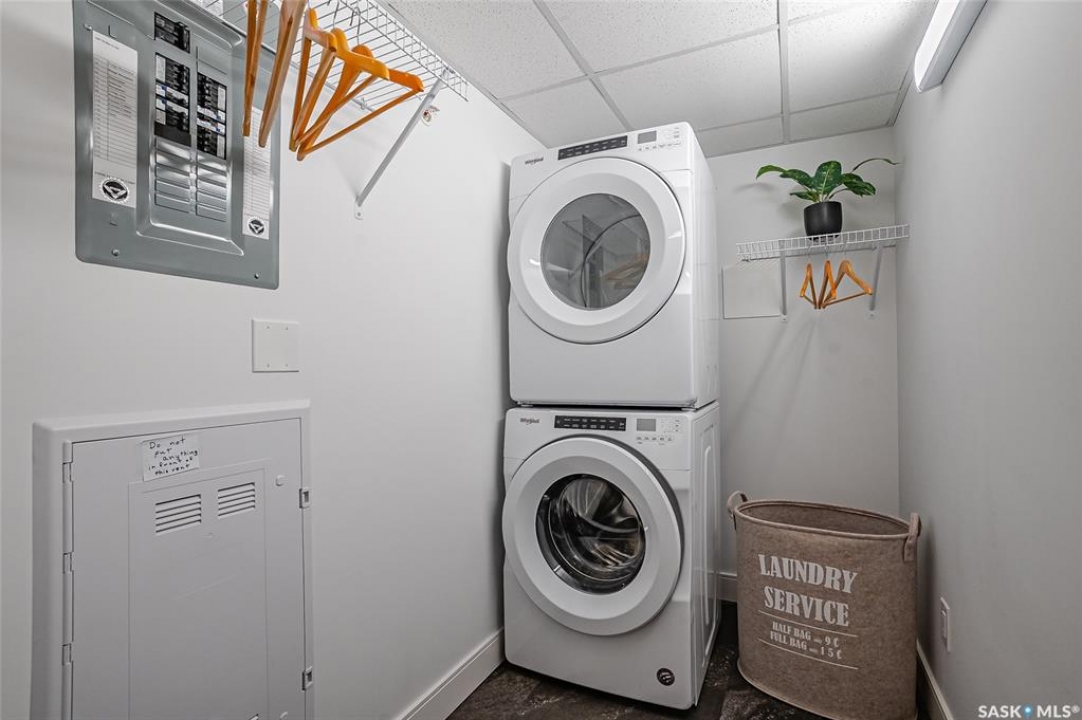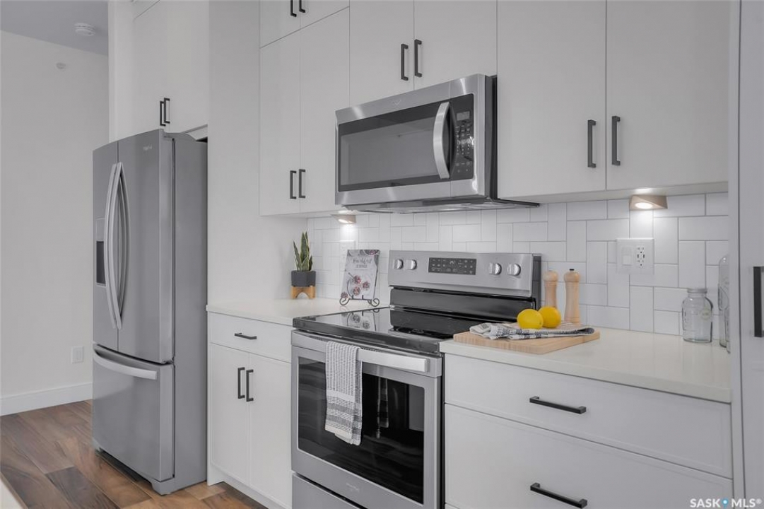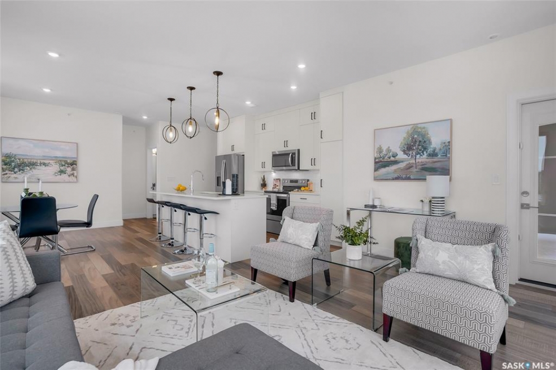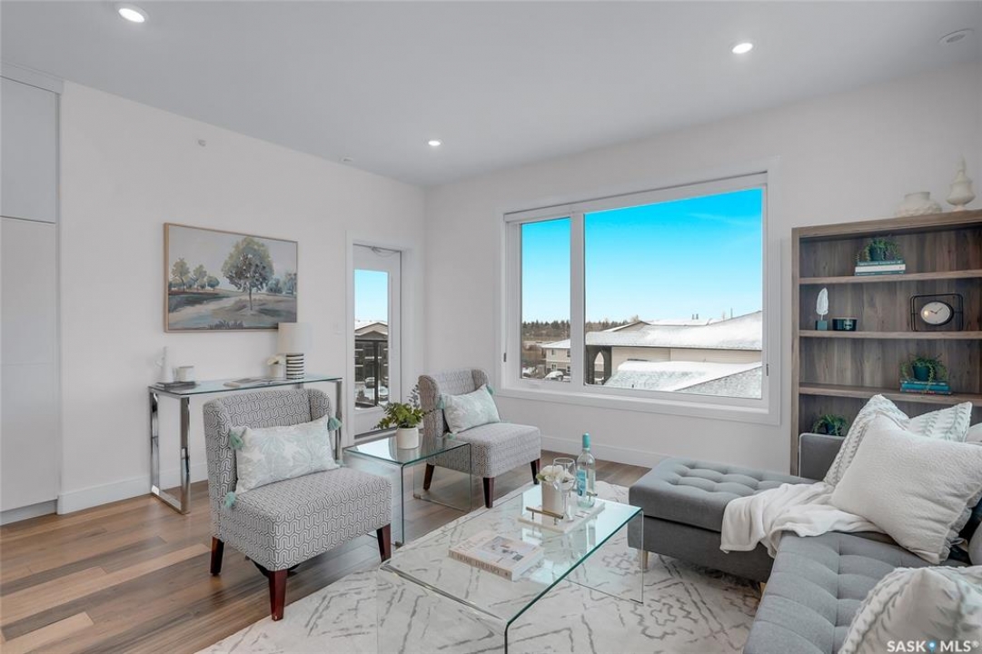 Welcome to 300-105 Willis Crescent, a bright and inviting top floor 2 bedroom, 2 bathroom corner unit offering comfort, convenience, and modern living in desirable Stonebridge. This thoughtfully designed unit faces east, providing peaceful views and beautiful natural light throughout the day. The open-concept layout features a modern kitchen with stainless steel appliances, tile backsplash, ample cabinetry, and an island perfect for entertaining. The living room opens onto a private balcony with natural gas BBQ hookup, perfect for BBQ'ing and relaxing outdoors. The spacious primary bedroom includes a 4-piece ensuite. A second bedroom, 4-piece bathroom and in-suite laundry complete this condo. Additional highlights include Hunter Douglas blinds, central air conditioning, and 2 parking stalls - 1 surface stall and 1 underground stall with a storage unit. Residents enjoy access to excellent building amenities including: Amenities/rec room with outdoor terrace, exercise room and guest suite available to rent for visitors. Located in the vibrant Stonebridge neighbourhood close to shopping, restaurants, parks, and transit. Immediate possession available. Move-in ready, book your private showing today!