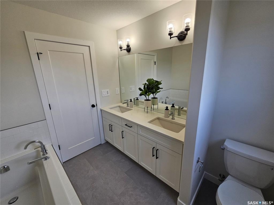 Welcome to the Havenberg, Ehrenburg Master Builders latest offering in Eastbrook. Discover this stunning 2,194 sq ft two-story brand-new build. This elegant home features a double attached garage and a separate side entrance. As you step inside, you're welcomed by an open and spacious floor plan, perfect for modern family living. The bright foyer flows effortlessly into the inviting kitchen and living area, creating a perfect space for relaxation and entertaining. The kitchen boasts an abundance of counter space, a functional island with an eat-up bar, and ample storage in the butlers panty, beautiful quartz counters and tiled backsplash. Large sunlit dining room and spacious living room with fireplace feature wall. A versatile main-floor bedroom, which can also serve as a home office or den, full bath and locker/mudroom completes the first level. Upstairs, the expansive primary suite has a large walk-in closet and a luxurious en-suite bathroom featuring dual sinks. Three additional spacious bedrooms all generous in size. The convenience of second-floor laundry, a bonus room perfect for entertaining or play area, and an additional 4-piece bathroom round out this level. Bsmt is perimeter framed and insulated, rough in plumbing and separate side entrance. Large yard with rear deck. 20x24 double attached garage. Situated in the vibrant community of Eastbrook close to parks, schools, and all essential amenities. The Havenberg home blends comfort, style, and functionality. Superior construction foundation has a 4” rebar reinforced slab and is built on piles. Exterior features front landscaping, sidewalk, and underground sprinklers. Saskatchewan new home warranty included. So many extras with an Ehrenburg Home call today for more details and a personal viewing! Interior photos from previous build.
