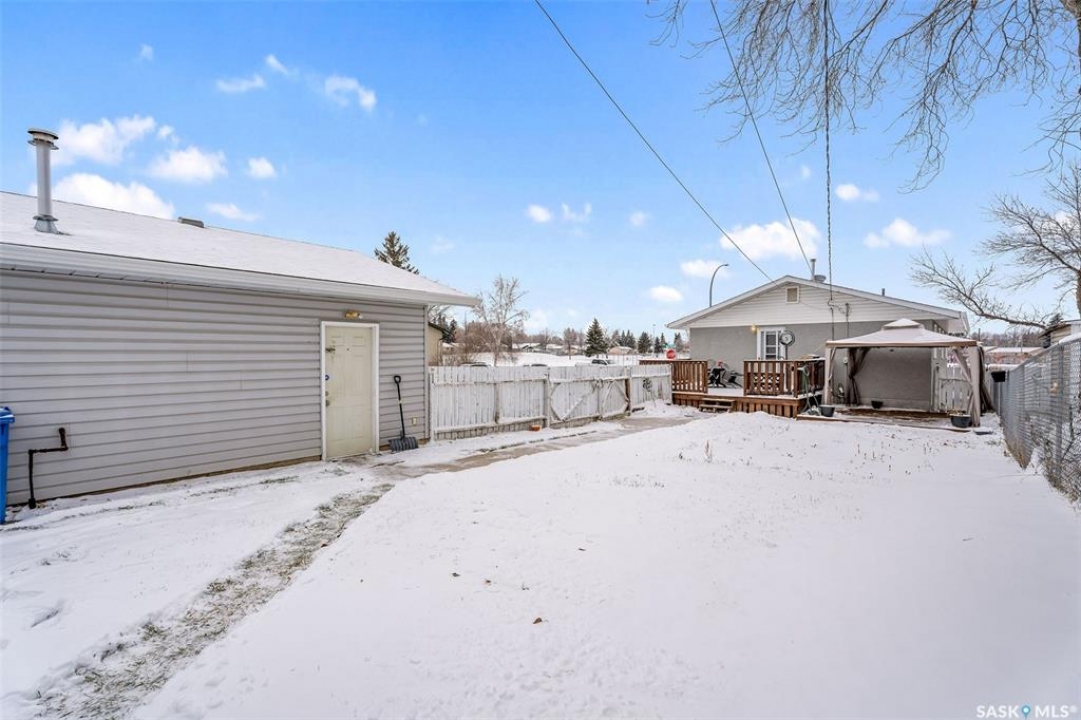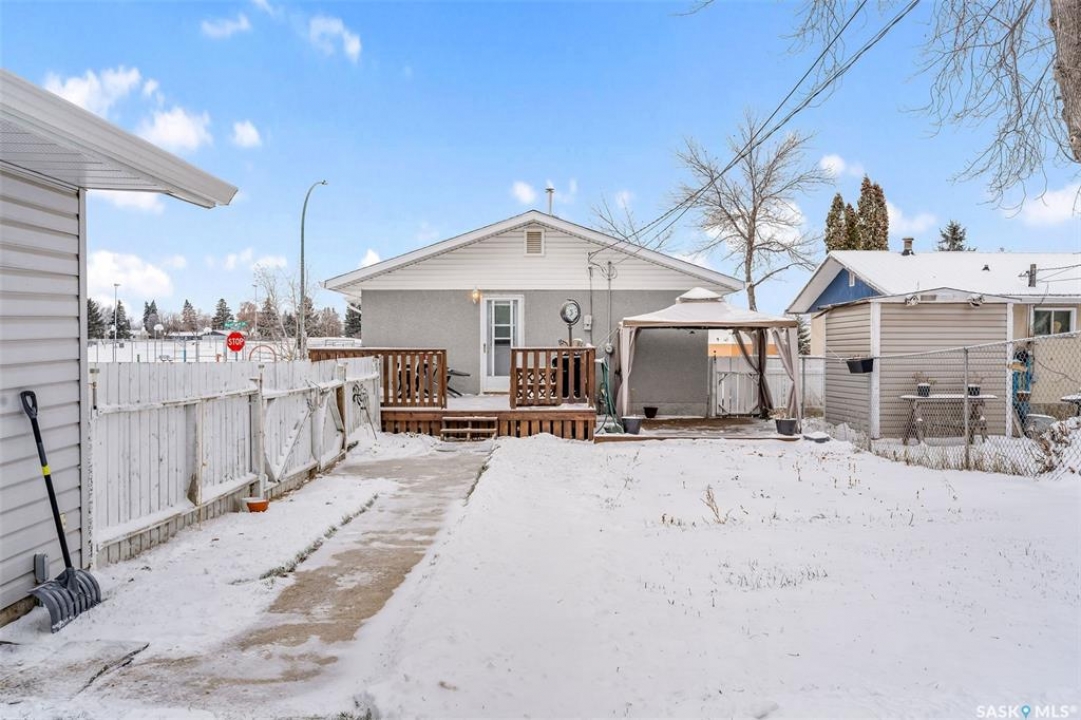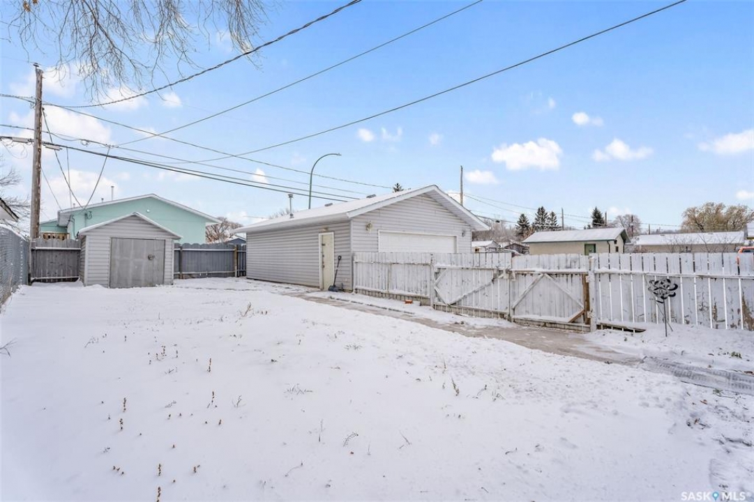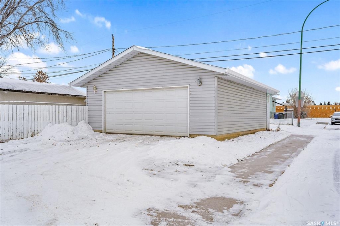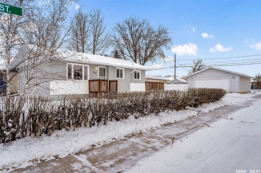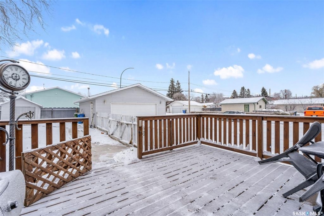 Charming 3 + 1 bedroom bungalow located directly across from Westview Public School and just steps from parks and the Rotary Trail! The main floor welcomes you with a bright eat-in kitchen that features ample cabinetry, plenty of natural light and direct access to the deck, perfect for outdoor dining or morning coffee. The cozy living room offers a large South facing window that creates a warm and inviting atmosphere. Completing the main level are 3 spacious bedrooms and a 4 piece bathroom highlighted by a beautiful tile surround. The fully developed basement provides a large family room, a 4th bedroom, a flexible den suited to your lifestyle and a laundry/utility room with plenty of storage space. Enjoy a fully fenced yard, a double detached garage and additional parking spaces for everyday convenience. Whether you are relaxing on the deck or taking advantage of nearby amenities, this home combines comfort and practicality. Immediate possession is available. Don't miss your chance to make this wonderful home yours!