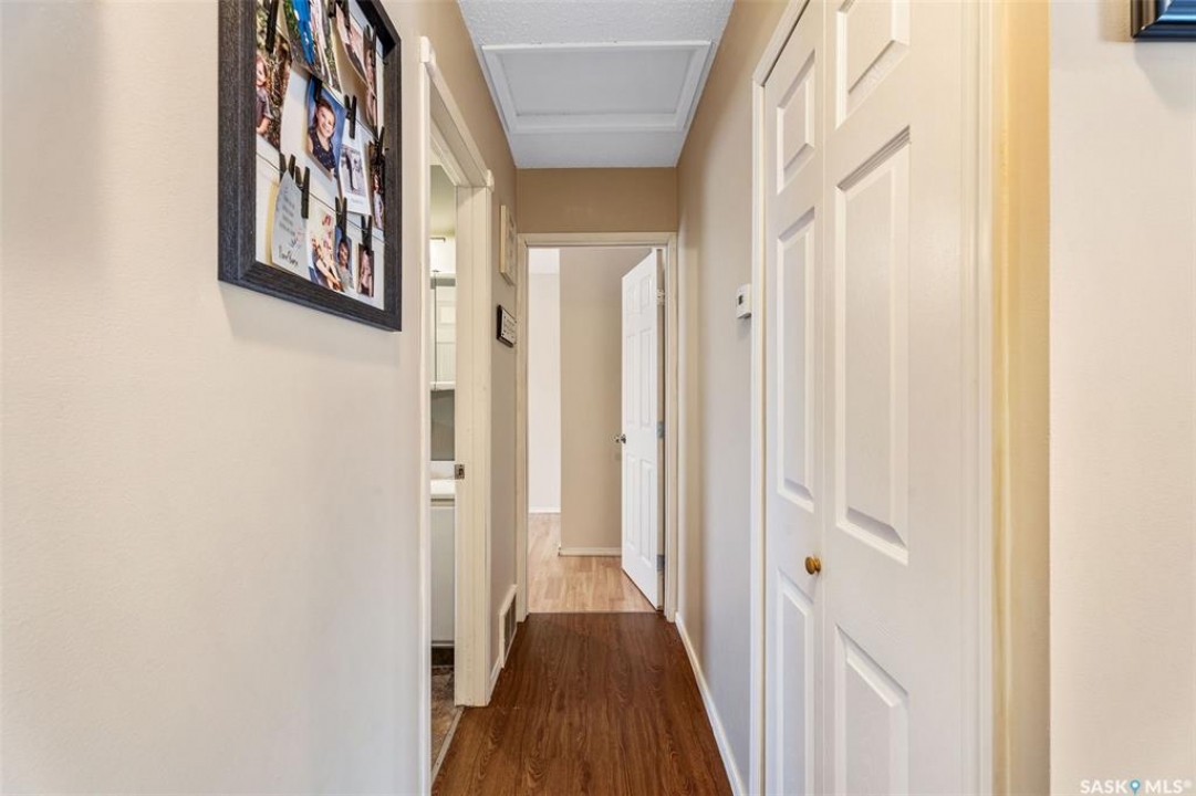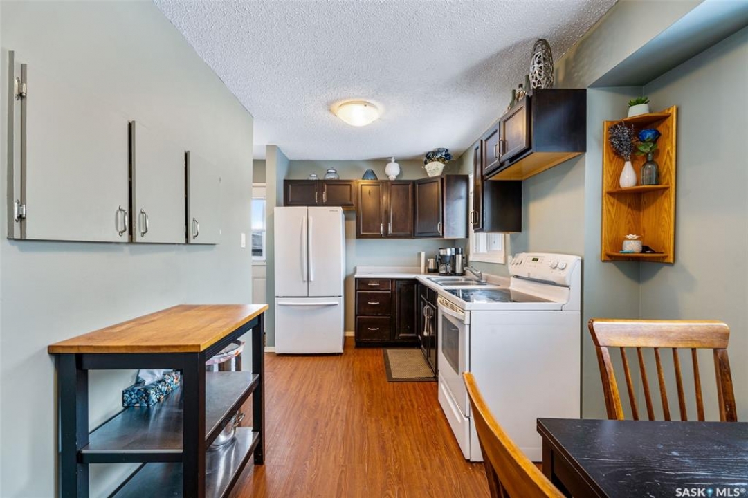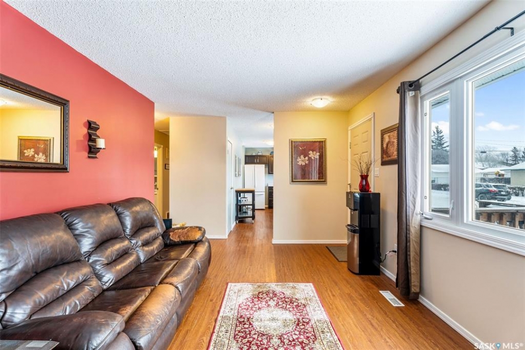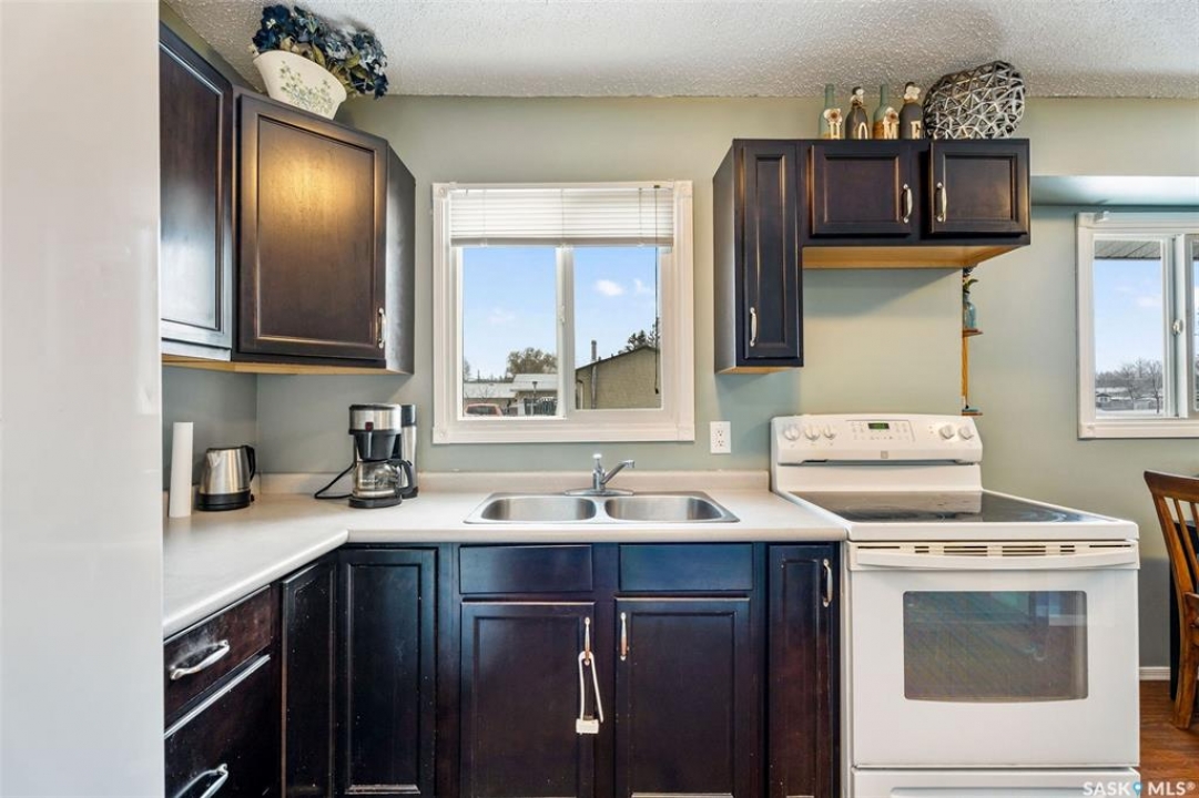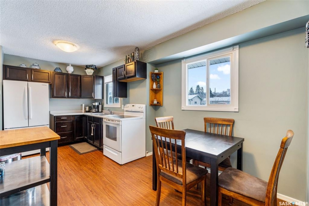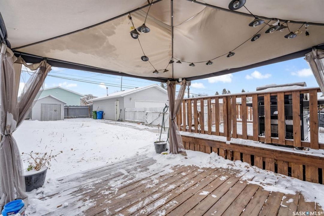 Charming 3 + 1 bedroom bungalow located directly across from Westview Public School and just steps from parks and the Rotary Trail! The main floor welcomes you with a bright eat-in kitchen that features ample cabinetry, plenty of natural light and direct access to the deck, perfect for outdoor dining or morning coffee. The cozy living room offers a large South facing window that creates a warm and inviting atmosphere. Completing the main level are 3 spacious bedrooms and a 4 piece bathroom highlighted by a beautiful tile surround. The fully developed basement provides a large family room, a 4th bedroom, a flexible den suited to your lifestyle and a laundry/utility room with plenty of storage space. Enjoy a fully fenced yard, a double detached garage and additional parking spaces for everyday convenience. Whether you are relaxing on the deck or taking advantage of nearby amenities, this home combines comfort and practicality. Immediate possession is available. Don't miss your chance to make this wonderful home yours!