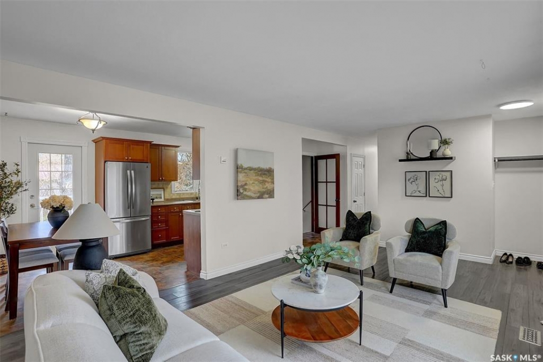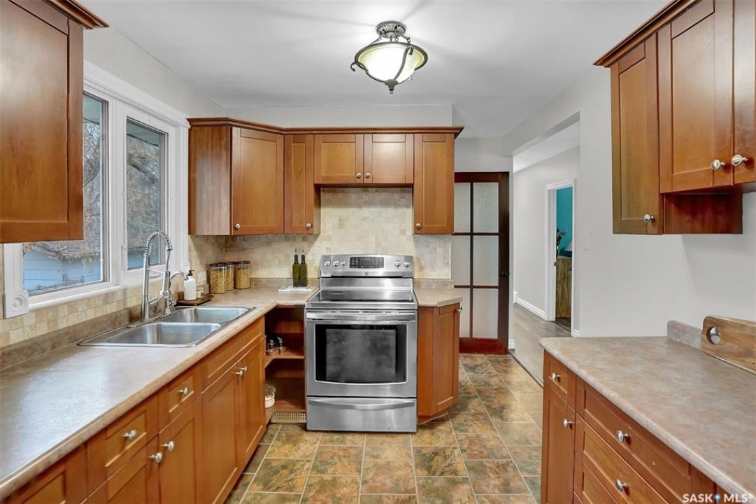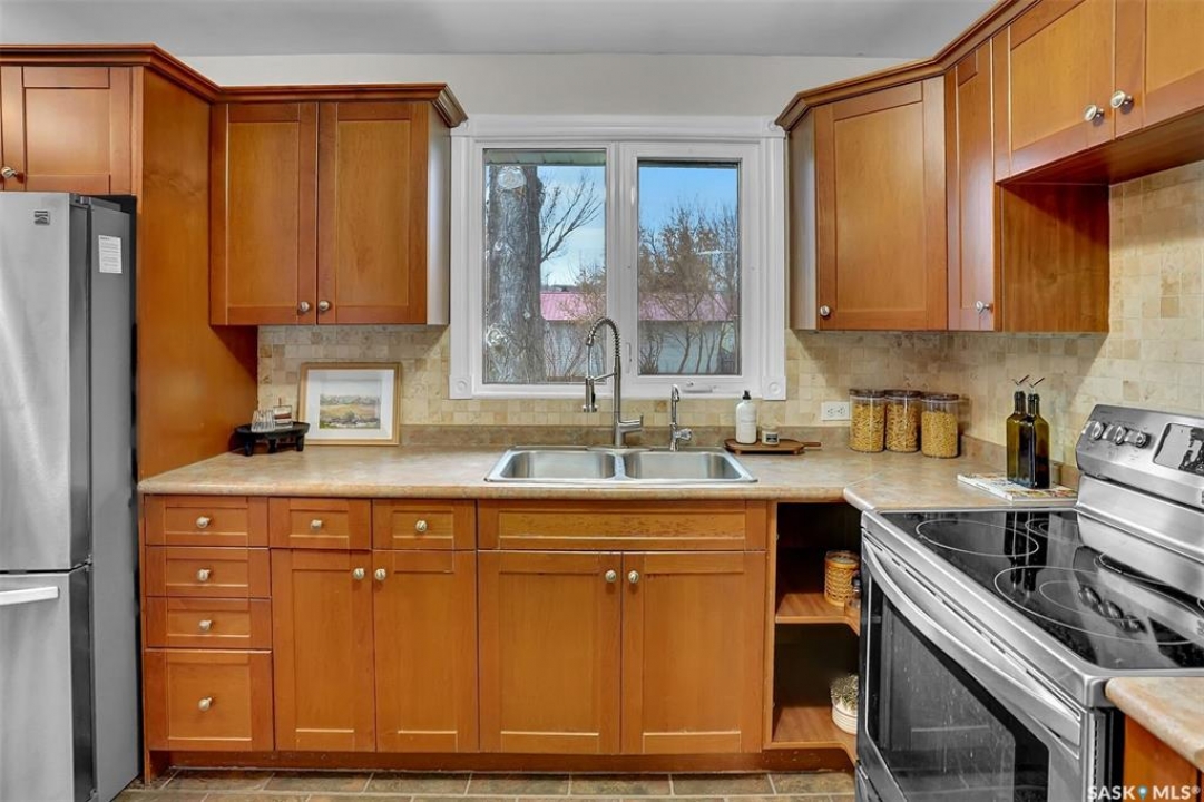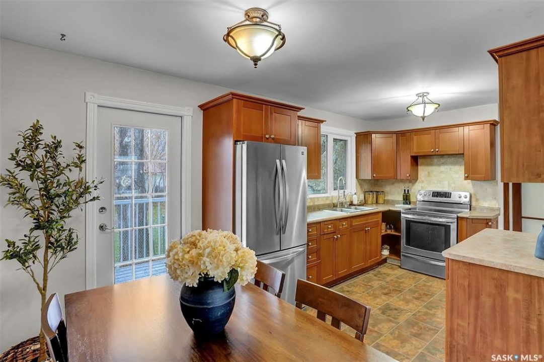 Welcome to 185 2nd Ave in the charming town of Lumsden — a 1,012 sq. ft. family home perfectly situated on a large corner lot across from the schools, making it ideal for growing families. The main floor features a spacious living room with laminate flooring that flows through much of the home. The updated kitchen offers modern cabinetry, stainless steel appliances, a tiled backsplash, and plenty of counter and storage space. Adjacent to the kitchen is a bright dining area with patio doors leading to your deck, perfect for enjoying outdoor meals or watching the kids play. Down the hall are three comfortable bedrooms and a four-piece bathroom conveniently located between them. The lower level boasts a newer foundation with tall ceilings, providing a solid and bright living space. Here you'll find a large family room, a fourth bedroom, a three-piece bathroom, and a utility/laundry room with ample storage. Outside, the generous corner lot provides plenty of yard space for kids, pets, or entertaining, along with abundant parking. This home combines comfort, updates, and an unbeatable location in one of the most sought-after communities in the valley.