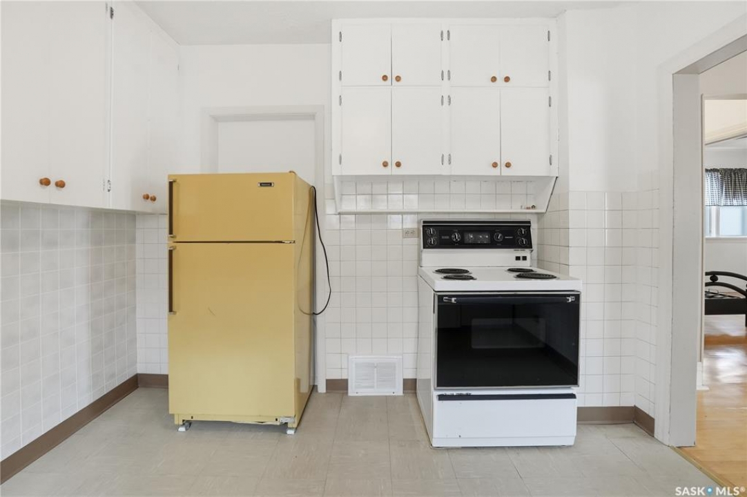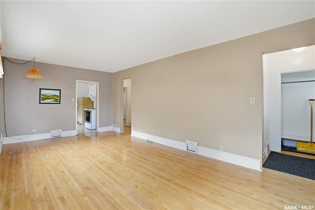 Very well cared for bungalow close to school. 2 bedroom, 1 bath with basement rec room, hardwood through main floor. Large bright living room with South and East windows. Nice kitchen with ample counter space including fridge, stove and dishwasher. Main bedroom has walk-in closet. 4 piece main bath with acrylic soaker tub. Basement offers rec room with wet bar area, Laundry area with washer and dryer and storage area. Large backyard with room for Garage off the alley.