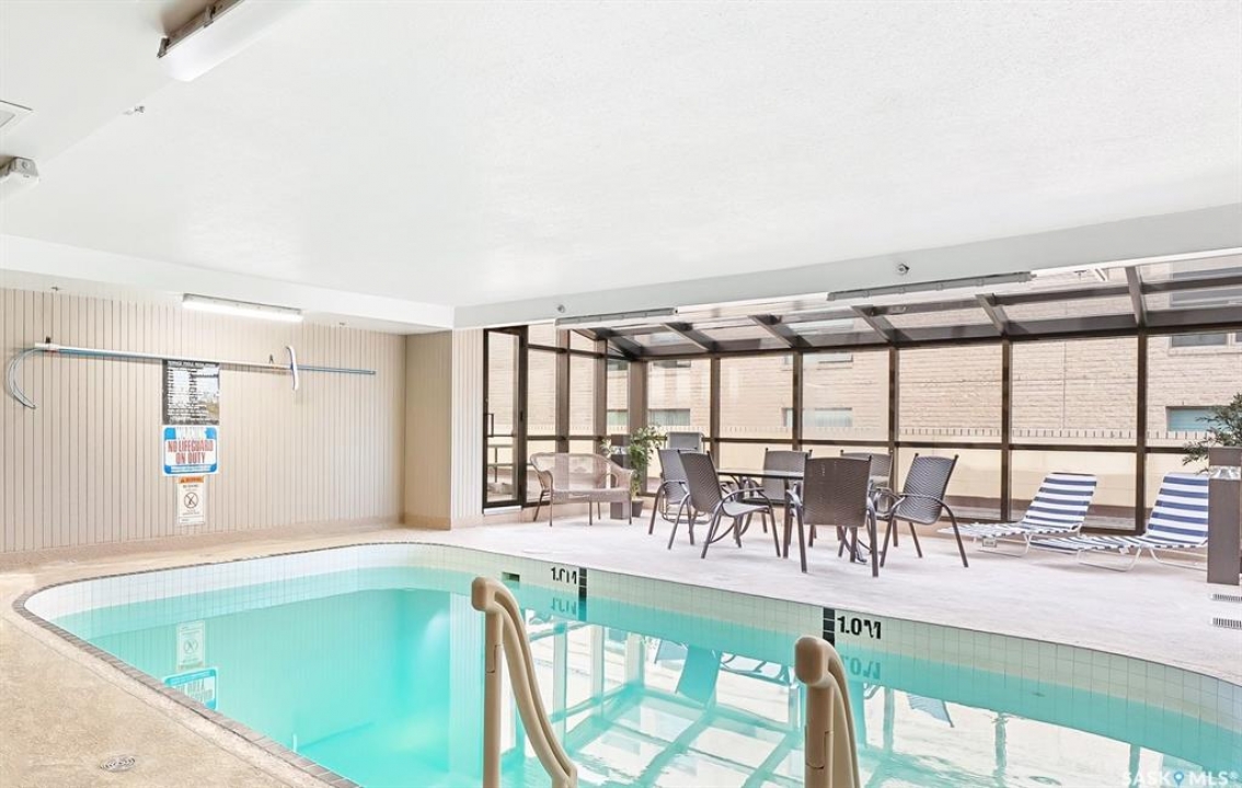 Experience Downtown Saskatoon Penthouse Living with an amazing View of the River! Indulge your desire for high-end, maintenance-free living with this breathtaking 1,528 sqft Penthouse Condominium in the vibrant core of Saskatoon. Far more than a home, this is a lifestyle defined by convenience and sophistication, boasting an enviable Walk Score of 96 and a Bike Score of 99. This professionally renovated sanctuary is a testament to modern design. The stunning kitchen is a chef's dream, featuring upgraded appliances, sleek quartz countertops, and a generous island with a sit-up bar that flows seamlessly into the main living space. The entire unit has been elevated with modern flooring, designer paint tones, and updated light fixtures, culminating in the removal & replacement of the dated ceiling for a smooth, contemporary finish. Designer touches by Fresco Interiors, including but not limited to custom drapery, add a final touch of tailored elegance. Upgraded blinds throughout give you privacy when you want it most. Step outside and immerse yourself in the city's best. You are mere steps from the 60 km of trails in the serene Meewasin Valley. Enjoy cultural gems like the Remai Modern, Persephone Theatre, and the charming seasonal Shakespeare on the Saskatchewan. Every amenity—from fine dining and popular taverns to museums and nature parks—is just a short, pleasant stroll away. The Terrace amenities redefine community living, offering a large facility with a swimming pool, hot tub, sauna, an adjacent indoor lounge, and an expansive outdoor patio with community barbecues. For an even more spectacular experience, retreat to the rooftop patio for breathtaking, panoramic city views. Your exclusive, heated covered parking spot means you can safely forget about your vehicle and embrace urban life. Don't just move... move up! Call today for a private viewing of this affordable, classy, and perfectly located penthouse on Fifth Avenue.