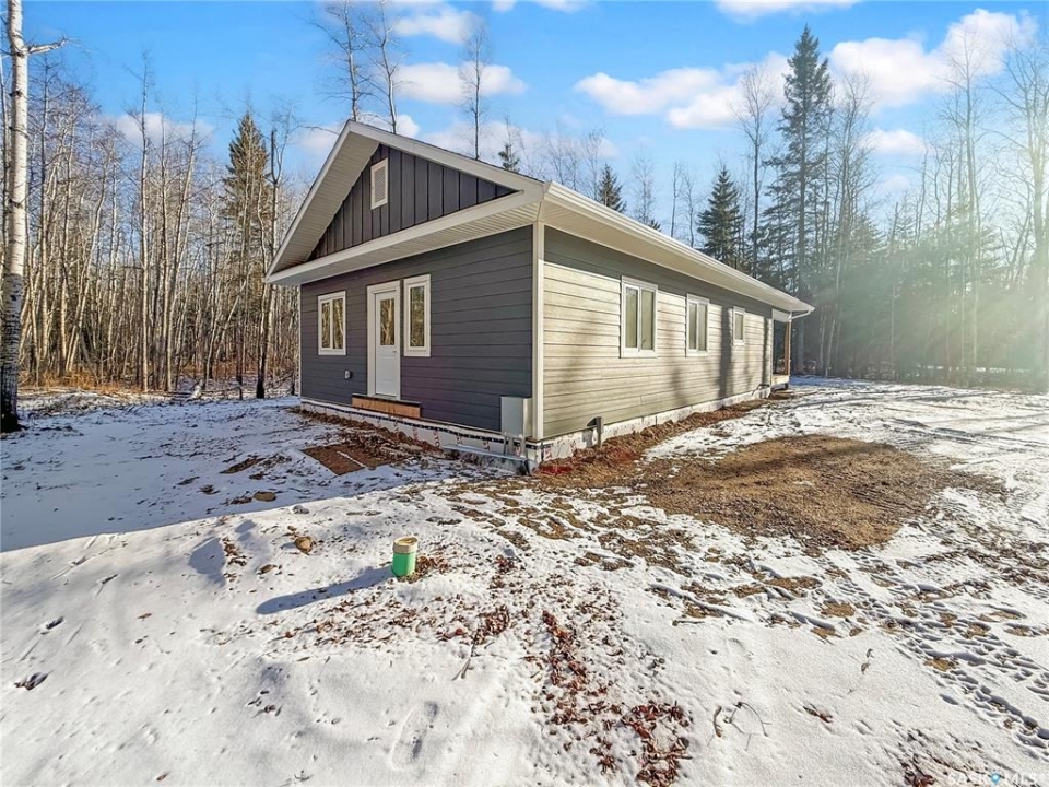 Brand-New RTM, Ready to Enjoy. All the major work and costs are already handled, giving you a smooth transition into this 1094 sqft, 3-bedroom, 2-bath home. The home offers great open layout with large front windows providing abundance of natural light with a sense of balance and warmth throughout the house. A covered front deck provides a wonderful outdoor space. Thoughtful touches include: a sit-up island, cortez counters, under-cabinet lighting, dishwasher space, pantry, vaulted pine ceiling, dedicated laundry room, and efficient LED lighting throughout. Built on a full ICF slab, the home includes a 1000-gallon water tank, 1400-gallon septic system, and a NG high-efficiency furnace. Located in the new Phase II of Aspen Ridge on a spacious 1.26-acre lot, the property offers a high, well-drained elevation with a completed driveway and culvert. Added advantages and savings include a fully prepped area with ample room for a future garage, upgraded 200-amp service already brought in, and TAXES included in the purchase price, offering meaningful upfront savings. Quick possession, 2025 value pricing, and full home warranty coverage give you confidence from day one. Blueprint and Sitemap in supplements. This could be #yourhappyplace.