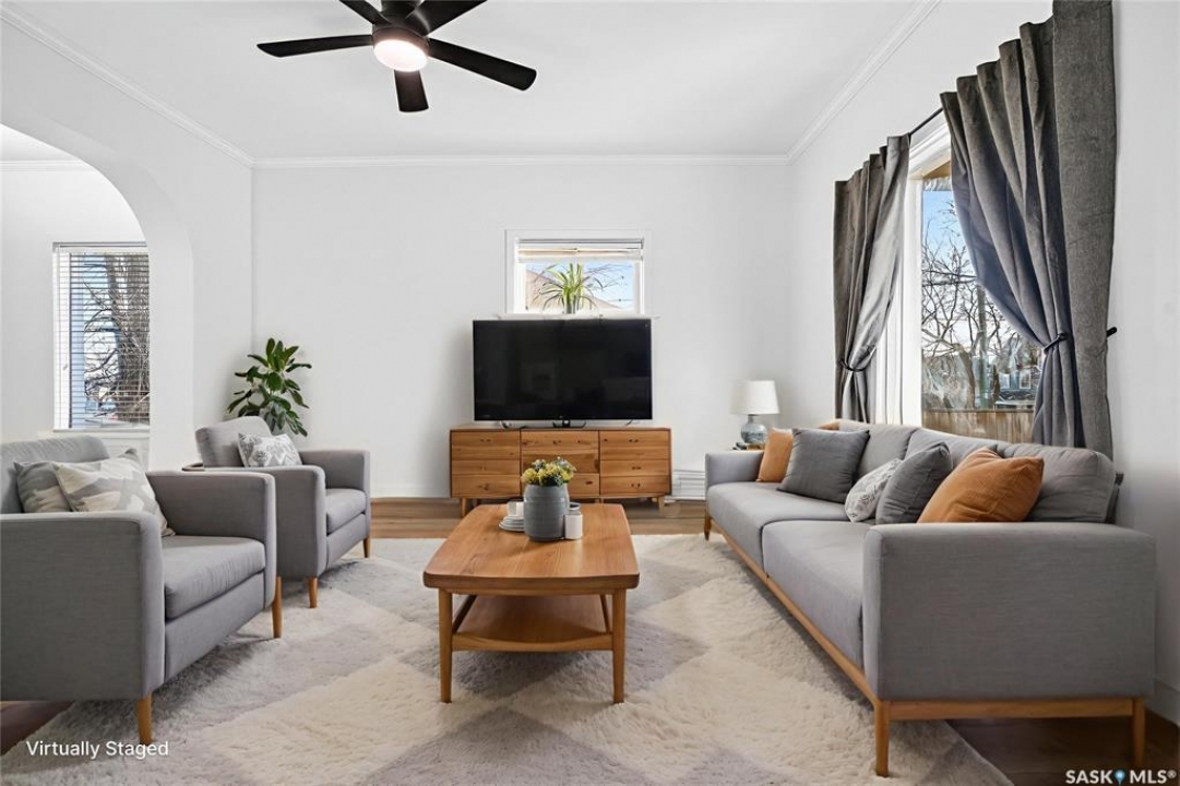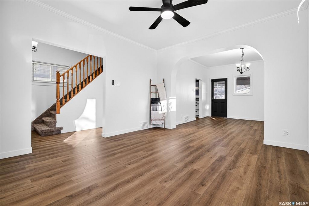 Welcome to 837 5th Ave NW — a charming, updated home close to elementary schools! This move-in-ready property blends classic character with modern upgrades including new electrical, all new flooring, trim, lighting, and ceiling fans throughout. The main floor features bright living and dining areas with laminate flooring and crown molding, plus a functional kitchen with glass tile backsplash, fridge, stove, dishwasher, and microwave range. Upstairs offers three bedrooms, each refreshed with new carpet, trim, doors, and hardware. The bathroom has been fully updated with a new vanity, toilet, and taps. Enjoy additional space in the basement with a cozy den, laundry area, and high-efficiency furnace. Exterior highlights include vinyl siding, aluminum soffit/fascia, new shingles on the front porch, covered back deck with metal roof, new sod, wood-fenced yard, Double Garage, and a Brand-New central air conditioner. Attic reinsulated to R40. A must-see home offering comfort, style, and convenience in a family-friendly location!