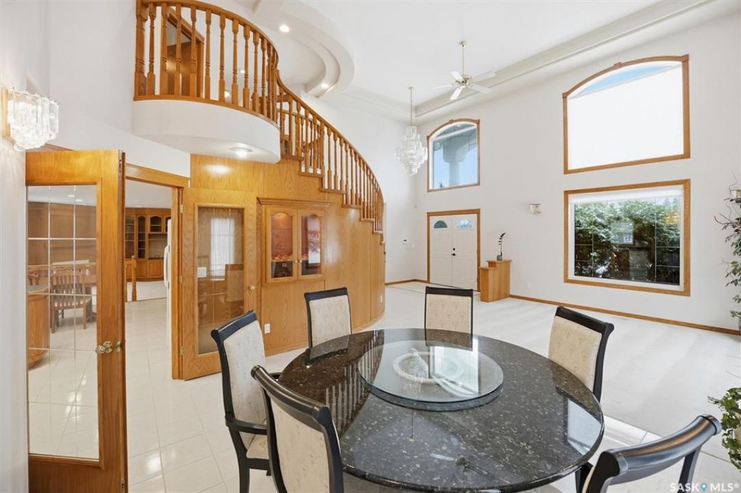 Welcome to 228 Braeshire Lane, Experience quality craftsmanship and timeless design in this stunning Valentino-built two-storey home, perfectly situated in Saskatoon's highly sought-after Briarwood neighborhood. Built in 1996 and meticulously maintained, this residence offers over 2,800 sq. ft. of elegant living space, featuring 4 bedrooms, 4 bathrooms, and multiple living areas designed for both comfort and functionality. As you enter, you're greeted by a spectacular 18-foot foyer with a grand spiral staircase and an open-concept living and dining area that exudes sophistication. From the dining room, a set of French doors leads to the bright kitchen and breakfast nook, thoughtfully designed with ceramic tile flooring, a gas range with direct exterior venting, two double sinks and dishwasher—ideal for large gatherings. The main floor also includes a spacious family room with a gas fireplace, a bright office overlooking the street, a powder room, and a mudroom with laundry hookups conveniently located by the garage entrance. Throughout the home, you'll find extensive built-in cabinetry providing exceptional storage and style. Upstairs, the primary suite offers a luxurious retreat with a 5-piece ensuite featuring a Jacuzzi tub, separate shower, and dual-sink vanity. Two additional large bedrooms and a 4-piece bathroom complete the upper level. The fully finished basement extends the living space with a large recreation and game room, an additional bedroom, a den, and a 4-piece bath—perfect for guests or family activities. Additional features include dual HE furnaces, HRV system, central A/C and central vacuum. The exterior showcases classic stucco finish, a French-style front entrance, and a durable clay tile roof. An oversized 33'x22' insulated triple garage with direct home access. This exceptional property combines quality, comfort, and practicality—a rare find ideal for a growing family. Contact your favorite REALTOR � today to schedule a private showing!