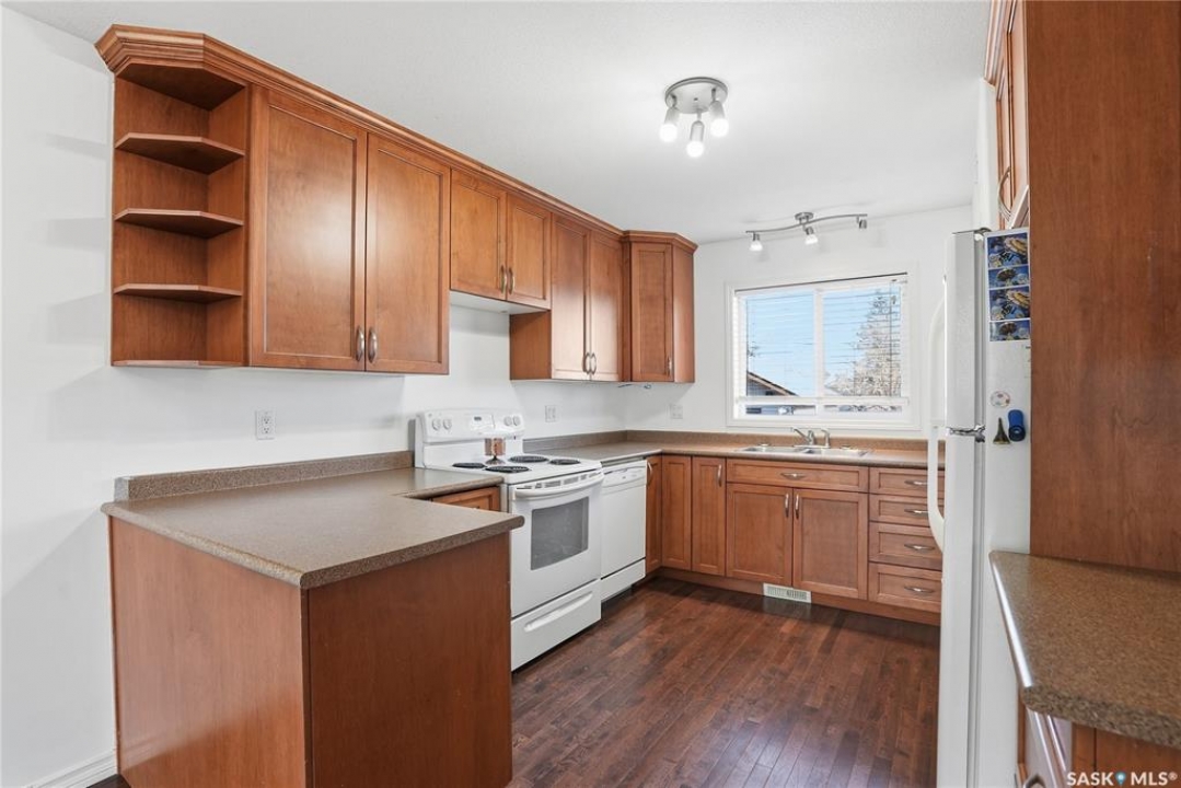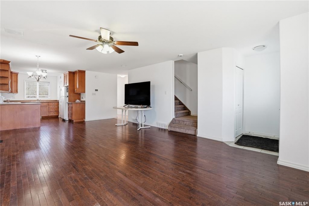 Located in the welcoming community of Aberdeen, just a short 20-minute drive from Saskatoon. This 2008 built two storey home offers three spacious bedrooms on the second level and three bathrooms, including a primary bedroom with a walk-in closet and 3-piece ensuite. The main floor features an open-concept living and kitchen area with hardwood flooring, 2 piece bathroom, a spacious kitchen with corner pantry, and back entrance to the deck and fully fenced yard. Upstairs, you'll find a second-floor laundry area for added convenience as well as a full bathroom. The stucco exterior provides a clean, low-maintenance finish and excellent curb appeal. There is potential for a future garage or additional parking at the back with lane access. Aberdeen is a family-friendly town with excellent local amenities, including a recreation complex with a rink, gym, and community rooms, as well as K–12 schooling right in town. Residents enjoy a safe, community-oriented lifestyle with local events and gatherings, while still being close to Saskatoon for shopping, dining, and services. This home is ideal for families looking for a balance of small-town living with city accessibility, offering a bright, open main floor & functional layout.