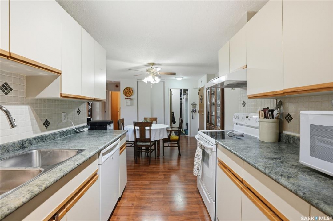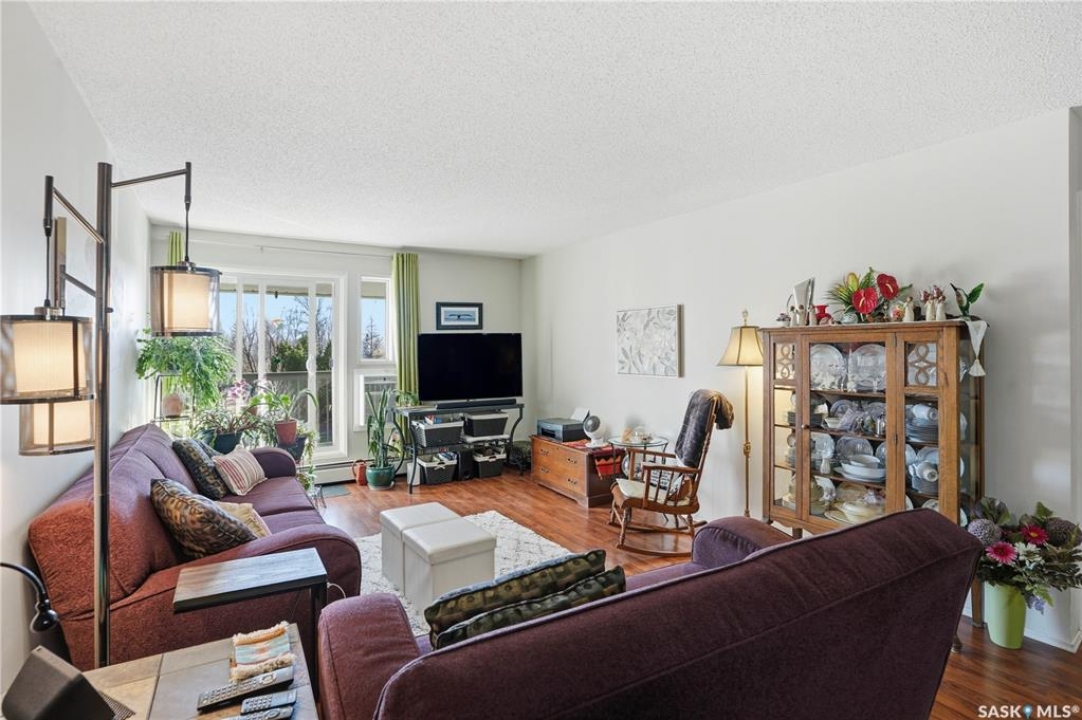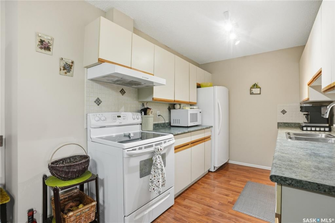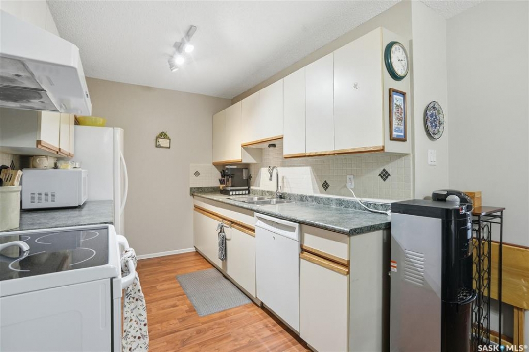 Welcome to 306 - 209A Cree Place in Saskatoon's Lawson Heights neighbourhood! This 1,007 sqft, top floor, 2 bedroom and 2 bathroom unit move in ready and offers 2 dedicated parking stalls. The bathrooms have been updated and the living area + bedrooms have laminate flooring. This unit also comes with in-suite laundry and lots of storage. The large balcony faces East overlooking the greenspace and parking lot. All appliances come included in sale. Key notables: storage on balcony, wall mount central air conditioning, and an amenities room available. Don't miss out!