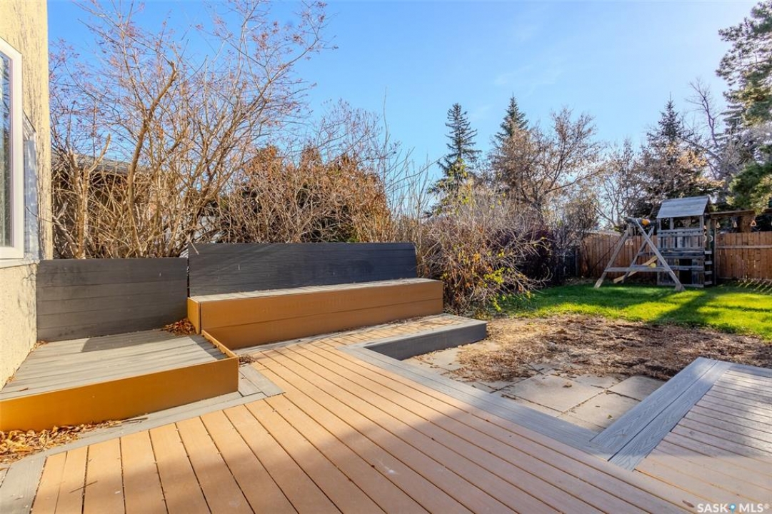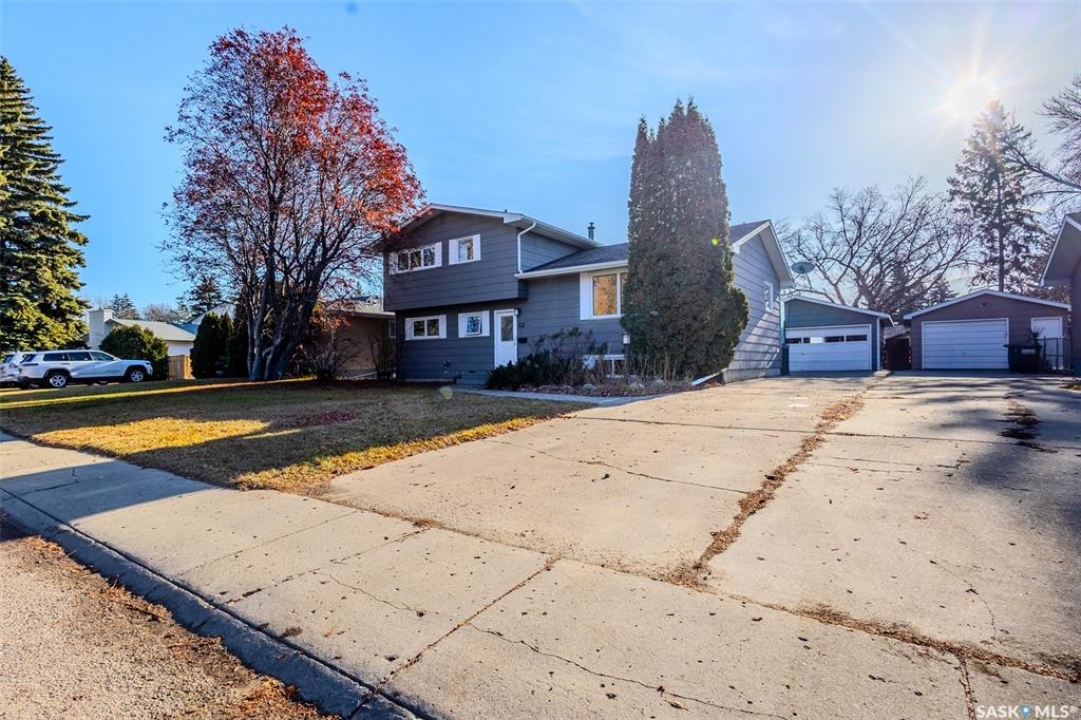 Welcome to 73 Red River Road in the highly coveted River Heights neighborhood, just steps from the Meewasin trails. This beautifully updated 4-level split offers a functional layout that's perfect for family living. Up a few stairs from the front entry, you'll find a bright living area with hardwood floors, a semi-formal dining space with a large window, and a kitchen featuring updated stainless steel appliances and direct access to the upper back deck, ideal for morning coffee or summer barbecues. Just off the kitchen, a few steps down, is a cozy family room with a gas fireplace and a south-facing window overlooking the backyard. Completing this level is a versatile bedroom/office and a convenient two-piece bath with laundry. Upstairs, you'll find two secondary bedrooms, an updated four-piece bathroom, and the primary bedroom complete with a three piece en-suite. The fully developed lower level adds even more living space with a rec room, a bedroom with en-suite, ideal for guests or a teenage retreat, and a crawlspace providing plenty of additional storage. Outside, the yard is fully finished with a two-tier composite deck with under-deck storage, a shed, U/G sprinklers, and a detached heated garage. Recent updates include garage heater and OSB/insulation (2018), shingles (2023), water heater (2022), basement reno with spray foam insulation (2018), composite deck (2022), blown-in attic insulation (2012), all windows (2021), and a new electrical panel (2018). Thoughtfully updated and situated in one of Saskatoon's most sought after locations, this home combines comfort, function, and lifestyle. River Heights is known for its mature trees, quiet streets, and unbeatable access to the Meewasin Valley, making it ideal for those who enjoy an active outdoor lifestyle. This home's rare, highly functional split-level layout offers space and flow that's hard to find, perfect for both growing families and those who love to entertain. Call your Realtor � today!