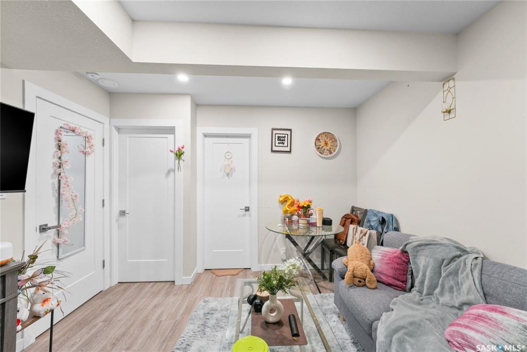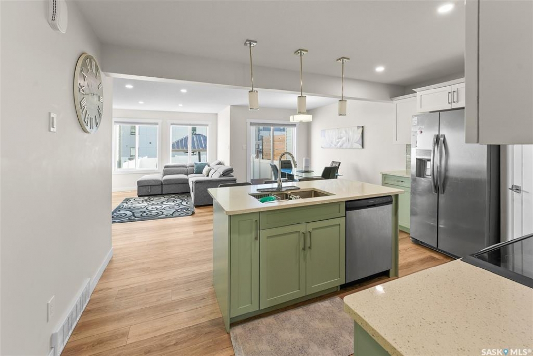 Welcome to 4793 Mutrie Cres, a beautifully designed 1,390 sq. ft. two-storey home with a single attached Insulated Heated Garage. The main floor features a bright, open-concept layout with luxury kitchen cabinetry, quartz countertops, a corner pantry, a convenient half bath, and patio door access to a pressure-treated wood deck and Xeriscape fenced backyard. Upstairs, you'll find three spacious bedrooms a 4-piece main bathroom, laundry closet, and a large flex room—ideal as an office, playroom, or TV area. The primary bedroom offers a generous walk-in closet and a private 4-piece ensuite. The basement is fully finished with a in unit laundry, Second kitchen with portable stove, dishwasher and a fridge. 4pc bath and a full bedroom completes the basement. This home is finished top to bottom and move in ready. Reach out to your realtor to book a viewing