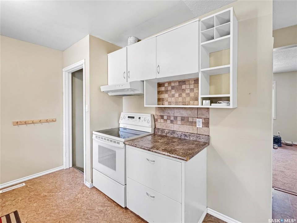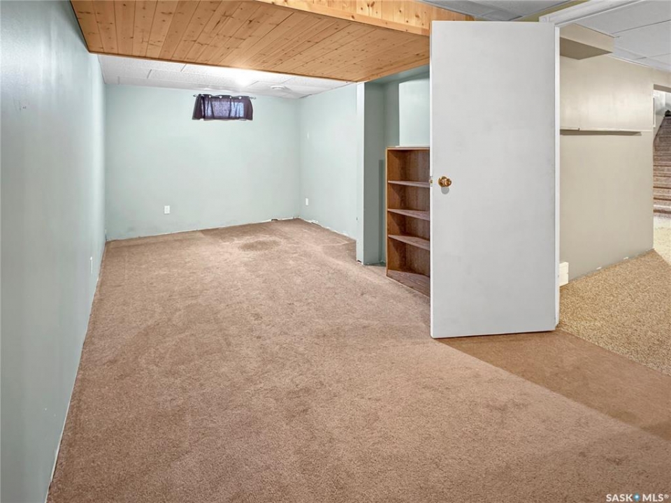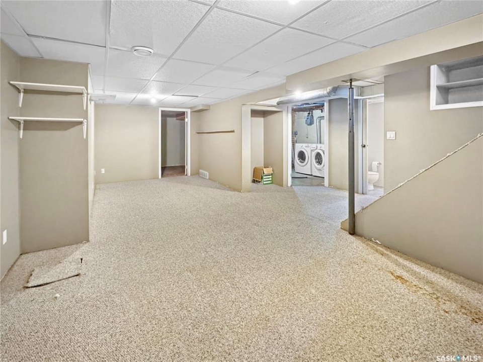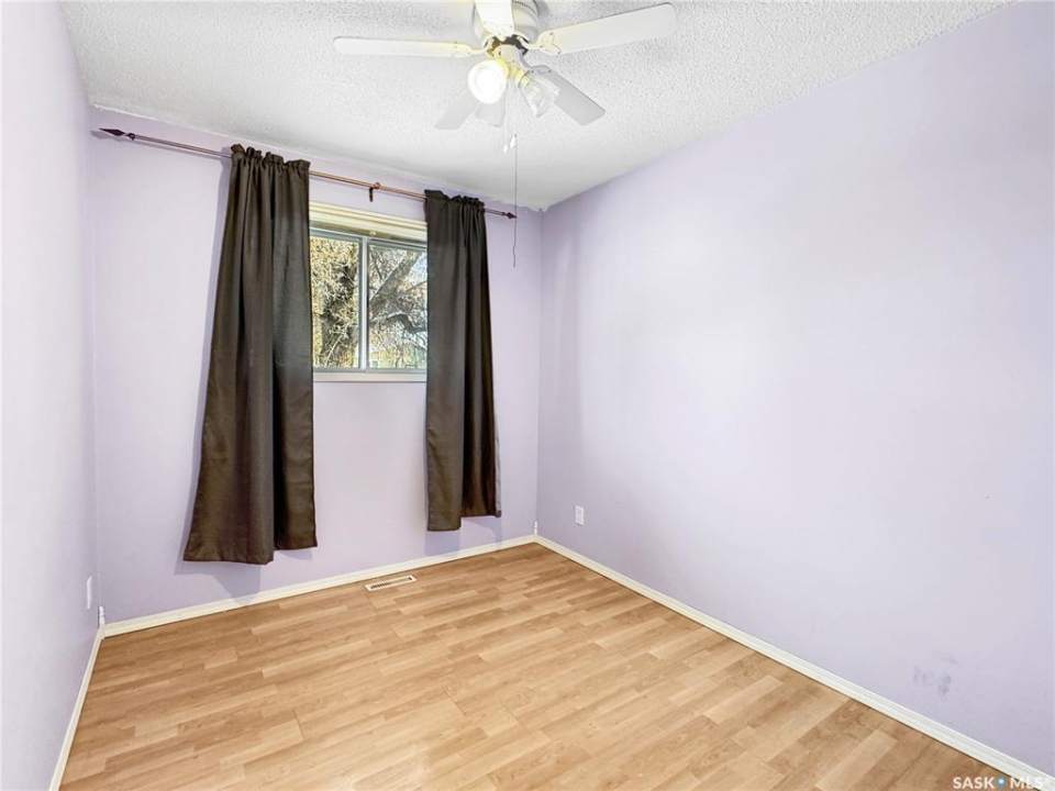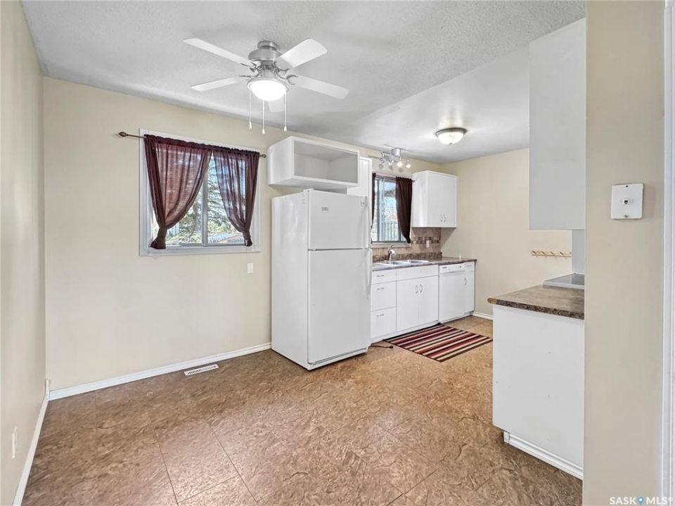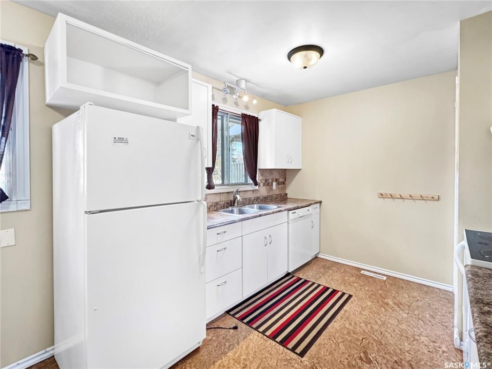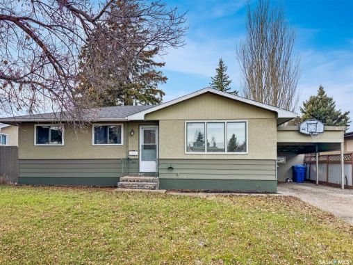 This charming 4-bedroom, 2-bathroom bungalow is perfectly situated in a desirable area of North Battleford, backing directly onto a school park—an ideal setting for families. You'll love the convenience of being close to schools, shopping, and amenities while still enjoying the quiet comfort of a mature neighborhood. The main level offers a bright and functional layout featuring an open galley-style kitchen with direct access to the dining area, great for family meals or entertaining. The spacious living room is filled with natural light from a large picture window, creating a warm and inviting atmosphere. You'll also find three comfortable bedrooms and a 4-piece family bathroom on this level. Downstairs, the fully developed basement includes a large bedroom, a spacious recreation room, a 3-piece bathroom, plus plenty of storage and a separate laundry/utility area. The fenced backyard is perfect for kids, pets, or gardening, and includes two storage sheds and extra parking off the back lane. Major updates add peace of mind, including a new furnace (2025), new washer and dryer (2025), and newer shingles. This home offers great value, a fantastic location, and plenty of space for the whole family, a must-see! Call today for a private showing!