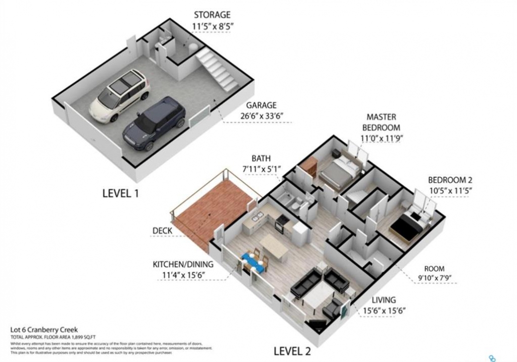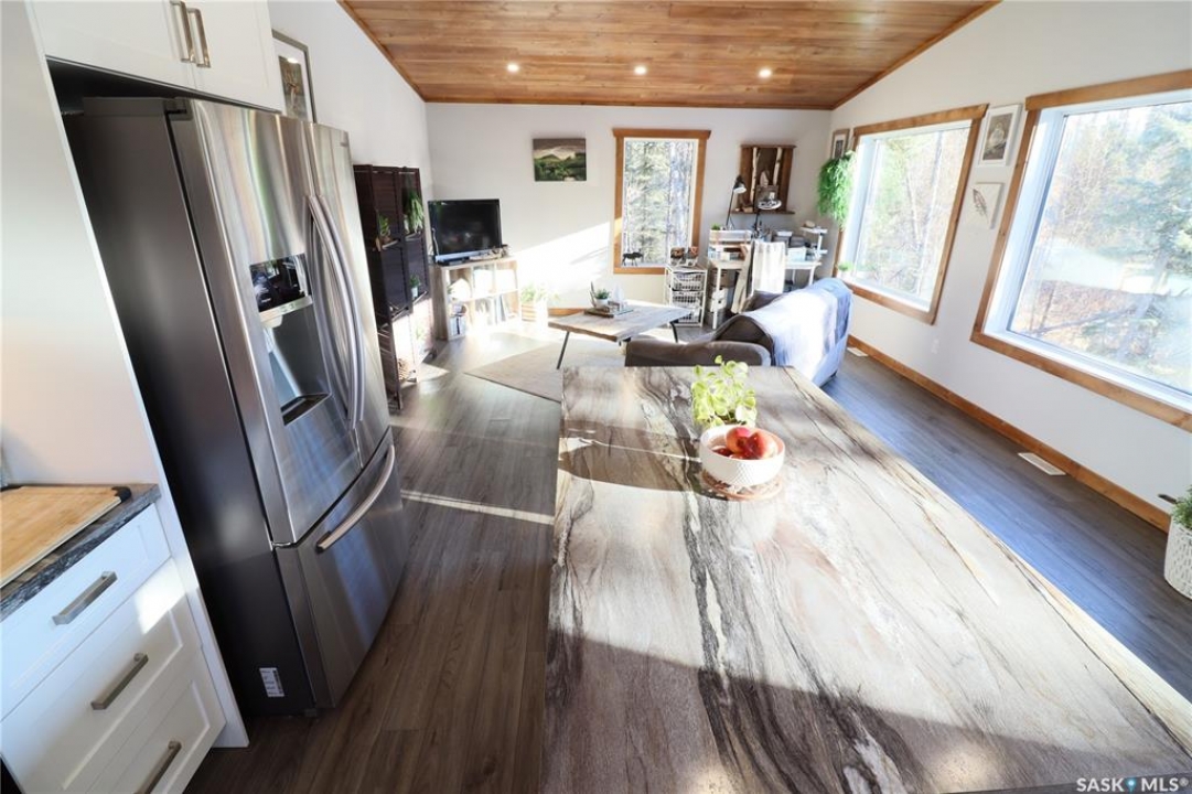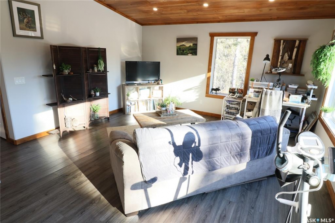 Welcome to 6 Cranberry Creek Crescent, located in the desirable Cranberry Creek development, just minutes from beautiful Candle Lake. This private, well-treed property offers 1.2 acres of peace and tranquility surrounded by nature. The oversized, heated double garage (28' x 26') includes a convenient 2-piece bathroom, mechanical room, and additional storage space - all not included in the listed garage dimensions. Above the garage, you'll find a bright and spacious living area with an open-concept kitchen, dining, and living room that is perfect for entertaining. Vaulted ceilings and an abundance of windows fill the space with natural light, creating a warm and welcoming atmosphere. The home features two comfortable bedrooms, a full bathroom, and a laundry/storage room. Step out onto the elevated deck to enjoy your morning coffee, host a BBQ, or simply take in the peaceful surroundings that Cranberry Creek is known for. Residents of Cranberry Creek enjoy access to an exclusive 3-hole golf course and a community clubhouse—ideal for family gatherings and neighbourhood get togethers. The area also offers excellent opportunities for outdoor recreation, with Torch Lake bordering the community (perfect for canoeing and kayaking) and several kilometers of scenic walking trails to explore. Experience the calm, privacy, and natural beauty of Cranberry Creek. Call today to schedule your private showing!