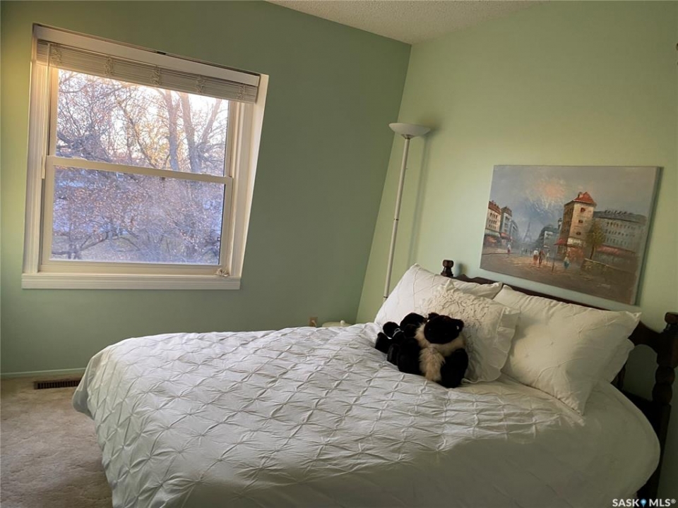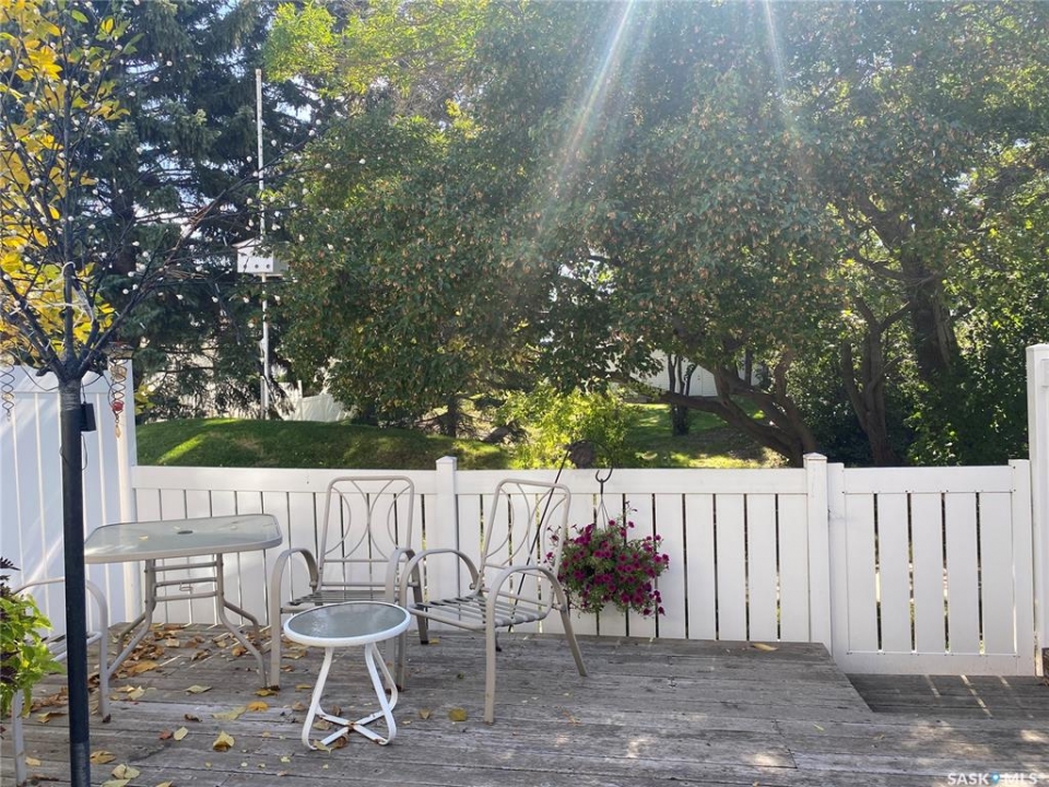 This is a terrific 2-bedroom, 2 bathroom, townhouse style condo in the sought after Shaughnessy Square complex. It is in a great location close to all south end amenities. This unit offers the convenience and security of a single detached garage just a few steps from the front door of the unit. This spacious condo offers great living space over both floors, as well as a full basement ready for your development ideas. The eat-in kitchen features plenty of cabinetry and counterspace and very nice laminate flooring. The spacious dining room, also with beautiful laminate floors, overlooks the large bright living room. The living room features a garden door directly onto the private deck with gate access to a beautiful greenspace. The deck is ideal for entertaining friends and family. The main floor also provides a convenient 2-piece bathroom. On the upper floor you will find a huge primary bedroom with double closets and plenty of room for a sitting area. The primary bedroom has direct access to the very nicely finished main bathroom. There are two other nice sized bedrooms on the upper level as well. Once bedroom is currently set up as a TV room and could also be a terrific home office. Storage should not be a problem as besides the laundry and utility areas the basement offers tons of shelving/storage space. In the summer months you can take the short walk to the complex outdoor swimming pool.