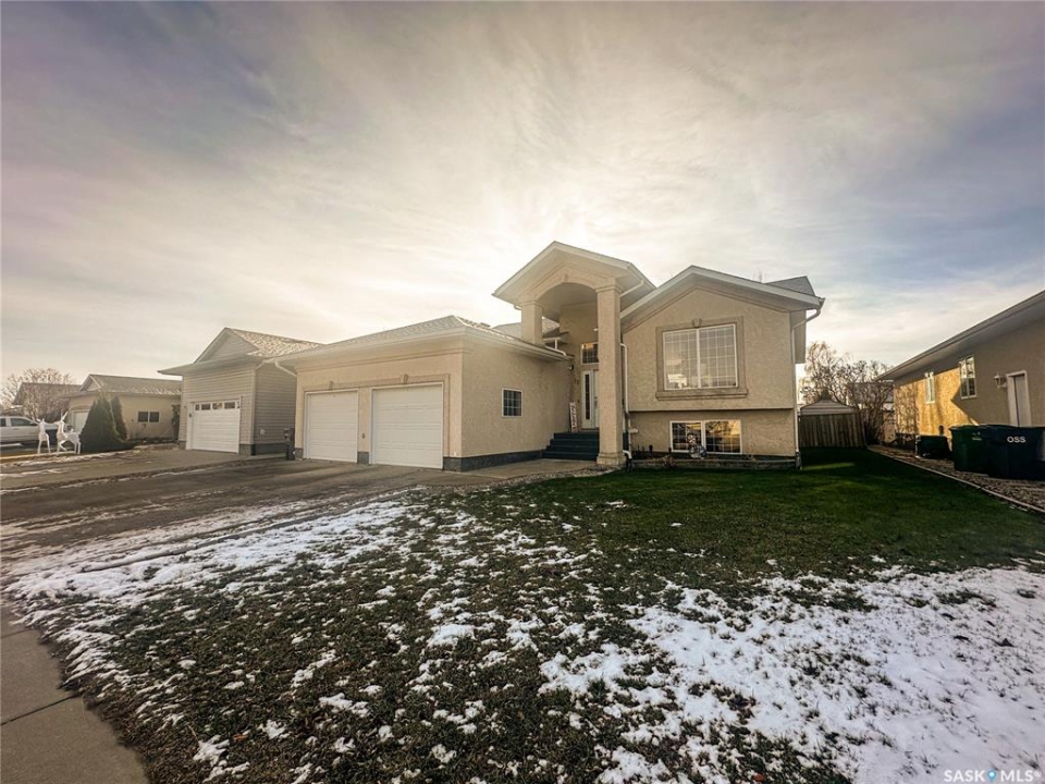 Welcome to your beautiful home in the Yorkton Weinmaster Neighborhood! Close to the school and the amazing park which has everything from a splash park, skating, tobogganing, play structure and more! This updated home will not disappoint! Built in 1999, this home has had many updates prior to coming on the market so that it is move in ready from the main floor to the lower level. The main features of the home are 5 bedrooms, 3 bathrooms including an ensuite bath, double car fully insulated and heated garage, great BBQ deck with an additional patio which has the hot tub and the backyard is fully fenced. There is a door at the back of the house to access the basement as well as there is a door in the garage that leads to the basement as well for those that may have additional people living with them. When you enter this beautiful you will immediately notice the updates, the tall ceilings and the large space throughout each room. Walk a few steps up and you will find your nice size family room as well as the open concept beautiful kitchen and dining room. The custom design features are very nice and sets it apart from the rest of the homes. Down the hall from the kitchen you will find 3 large bedrooms, a gorgeous new main bathroom and an ensuite bathroom in the main bedroom as well. Off the kitchen/dining room is a beautiful stairway which leads down to the basement area which is only 4 feet in the ground and this home has never seen water! The bottom floor has all full size windows which makes it feel like the main floor. Fully renovated as well, you will find 2 more bedrooms, another bathroom, laundry room, utility room and storage space. The layout of this home was well thought out and is ready for its next owners. A quick possession is possible! What's not to love about this home! It has a great location and neighborhood! Many updates! Close to school! Close to park and walking trails! Don't wait for this one and book your tour!