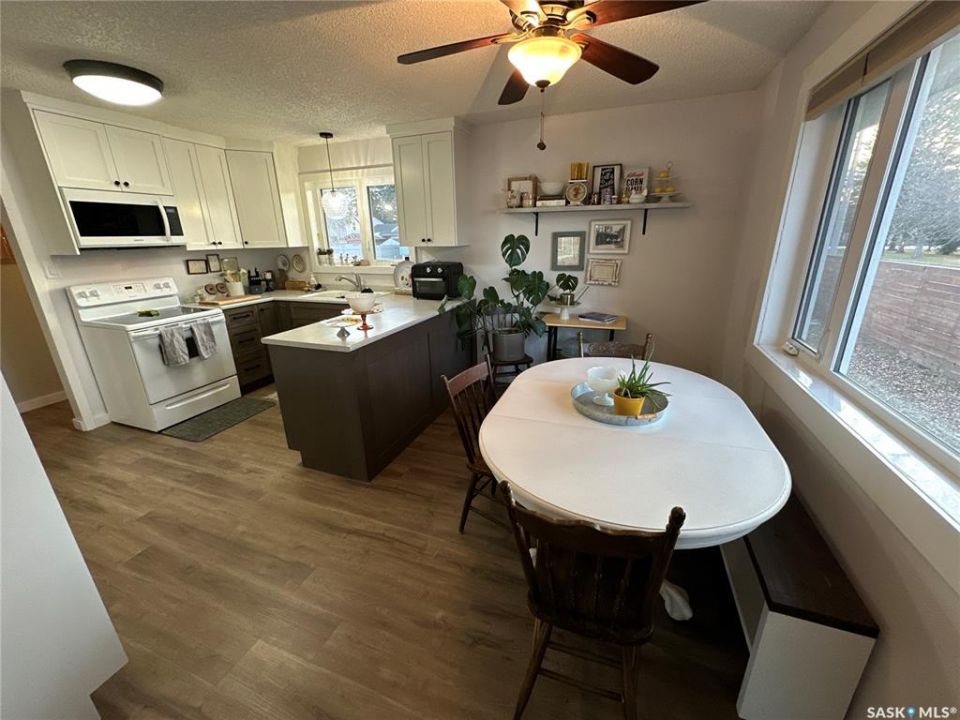 A baker's dream is how you describe this kitchen. Welcome to this 3 bedroom and 1 bath up and 1 bedroom & 1 bath down at 1019 8th Street in Rosthern. The basement also has a spacious family room, a storage room with room for your office, and a cold storage for your garden preserves. This cozy home sits on a 100' wide by 120' deep lot with lots of room to add a new garage. Treed and partially fenced yard with mature trees and shrubs with a two minute walk to downtown or the rink. In summer you are close to the park and the outdoor pool, the ice cream shop and groceries. New kitchen with dishwasher & microwave in 2021, new eavestrough in 2022, fresh exterior paint in 2023. New vinyl plank flooring in the main living area also in 2021! Lots of things to mention and even more to see! This spacious home would also make a great rental property.