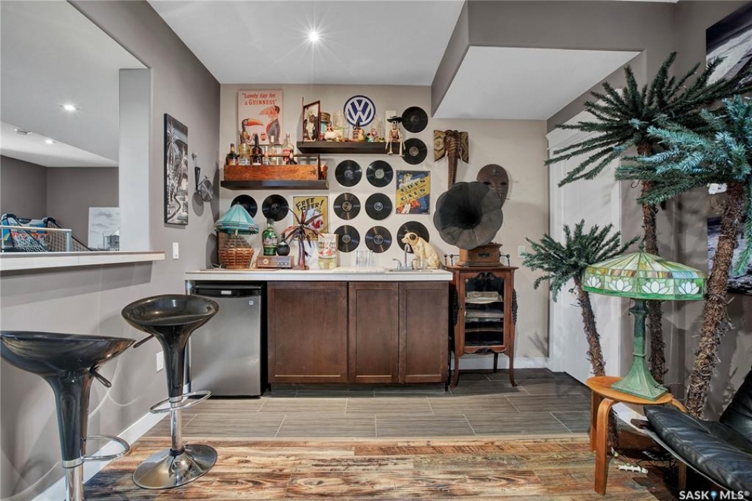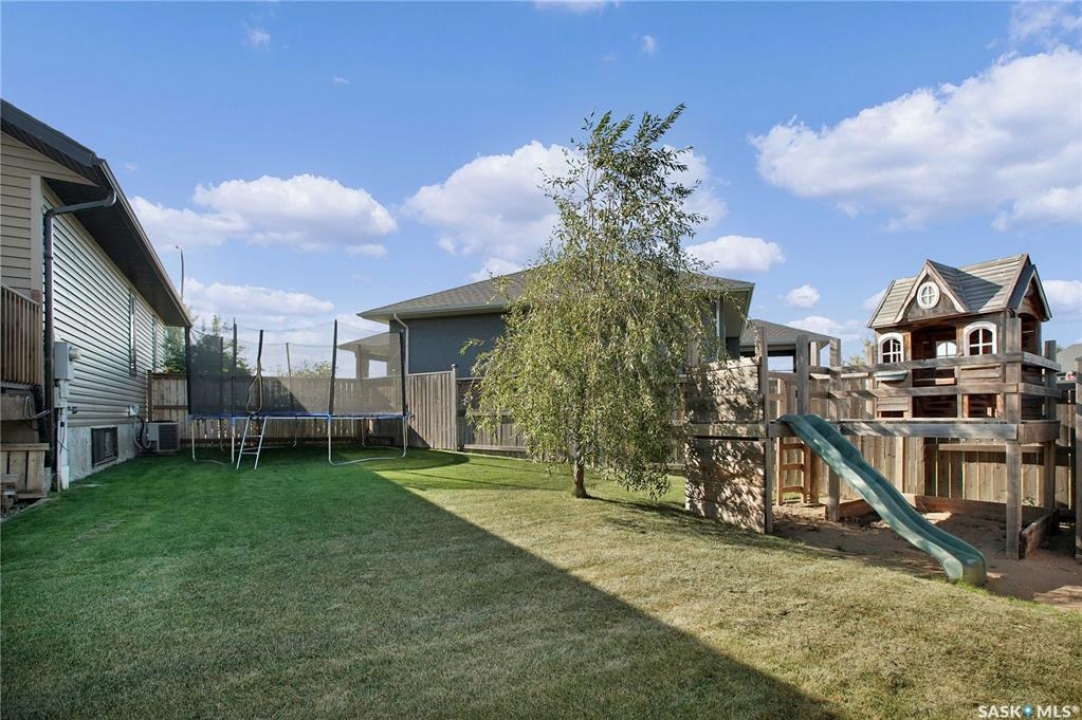 Welcome home to this immaculate 1,316 sq. ft. 4-bedroom, 3-bathroom bungalow—fully finished top to bottom and beautifully maintained throughout. The main floor offers a bright, open layout with a spacious living room featuring rich laminate floors and maple railings with metal spindles. The timeless two-tone kitchen includes granite countertops, tile backsplash, a large eat-up island, walk-in corner pantry, and under-cabinet lighting. The dining area easily accommodates large gatherings and includes a glass patio door to the back deck, plus transom windows that fill the space with natural light. Down the hall, the primary suite awaits with an upgraded drop-soffit ceiling, walk-in closet, and a 3-piece ensuite with custom tiled shower. Two additional bedrooms and a full 4-piece bathroom with tile floors and granite countertops complete the main level. The basement was designed for entertaining. A fantastic wet bar area features built-in cabinetry, bar fridge, and a raised seating peninsula. The massive family room is perfect for hosting game nights, movie nights, or setting up your home theater, and the adjoining games area offers plenty of room for a pool table or poker table. You'll also find a large bedroom, another full 4-piece bathroom, and a spacious laundry/storage/utility room—plus extra storage under the stairs. Outside, this property sits on a huge inside-corner, irregular lot with ample room for a trampoline, play structure, firepit, and more. Enjoy relaxing on the back deck with plenty of open views behind you looking out towards the golf course. Additional highlights include central A/C, HRV, an extra-wide concrete driveway, and an oversized 26'x26' attached garage that is fully insulated and drywalled. Upgraded bungalows like this are a rare find in Warman—this one shows 10/10 and is ready for its next owners. Contact your favourite Realtor today to book a private viewing!