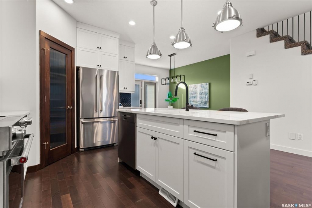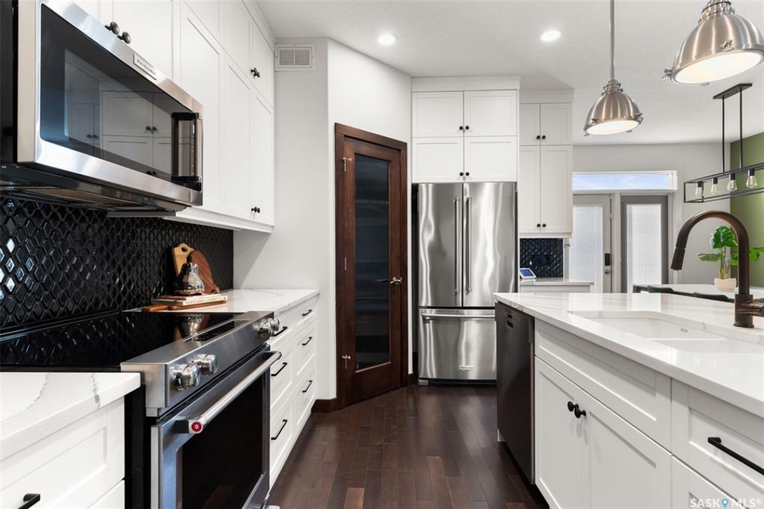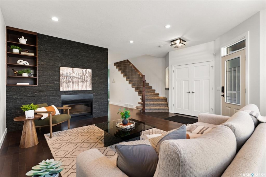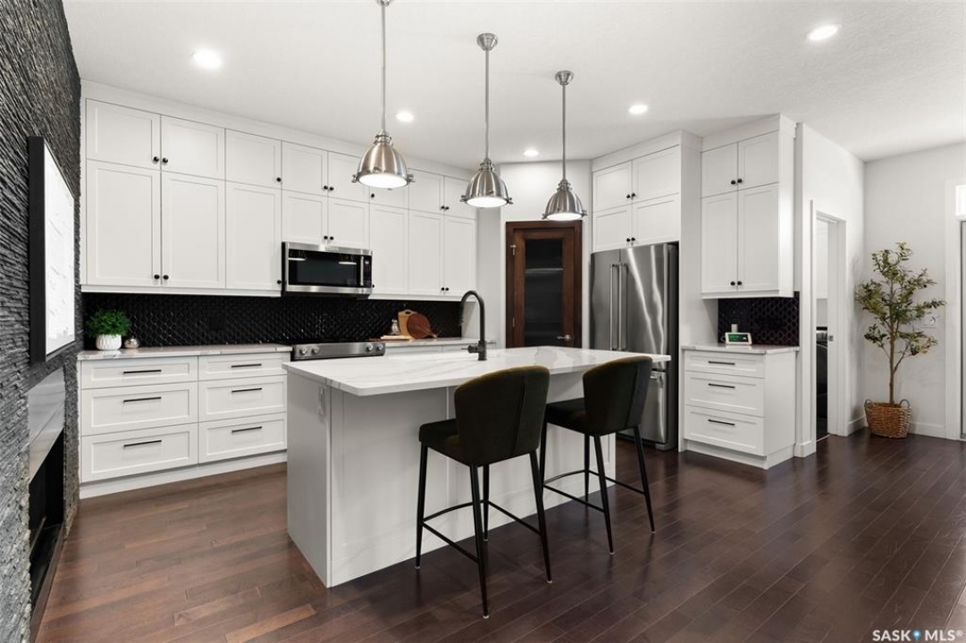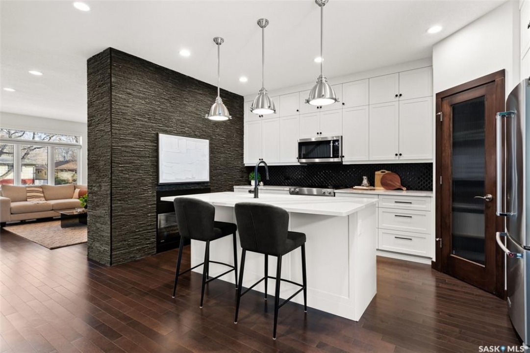 Welcome to 2508 McAra Street, a beautifully maintained infill two-storey home located in the heart of the highly sought-after Arnhem Place neighbourhood. Built in 2011, this 1,669 sq. ft. property offers a perfect blend of modern design, functionality, and timeless style, just steps from parks, schools, and downtown. From the moment you arrive, you'll notice the exceptional curb appeal and pride of ownership. Inside, the main floor features 9 ft. ceilings and a bright, open layout. The spacious living room at the front of the home is filled with natural light and centers around a cozy gas fireplace with a stunning double-sided stone feature wall shared with the kitchen. The kitchen is both beautiful and functional, showcasing white cabinetry that extends to the ceiling, quartz countertops, stainless steel appliances, modern black tile backsplash, under-cabinet lighting, a corner pantry, and a large eat-up island, perfect for family gatherings or entertaining friends. The dining area just off the kitchen provides direct access to the back deck, making indoor-outdoor living effortless. A convenient laundry room and tucked-away powder room complete the main level. Upstairs, you'll find a spacious primary suite with a walk-in closet featuring built-in shelving and a luxurious ensuite with a separate jetted tub and stand-alone tiled shower. Two additional generous-sized bedrooms and a full main bathroom round out the upper floor. The basement is framed, insulated, and ready for development, with roughed-in plumbing for a future bathroom. Built with a truss system, the basement design allows for higher ceiling heights and maximized usable space. Outside, the backyard is beautifully landscaped for low-maintenance living complete with turf, full fencing, and an oversized double detached garage (26x21) that's insulated and long enough to accommodate a large truck.