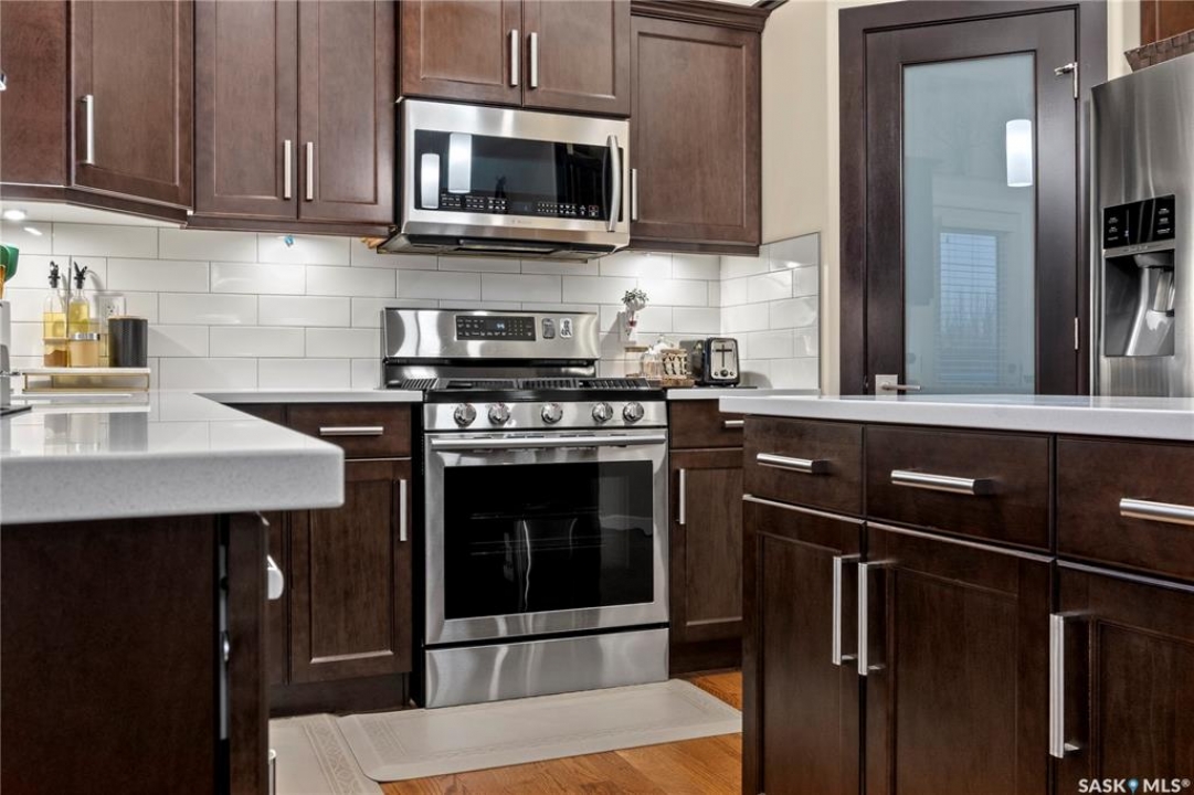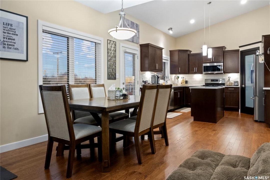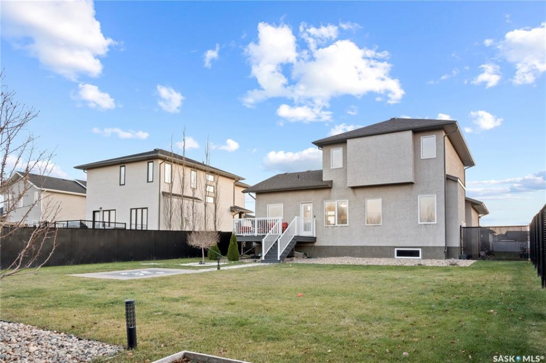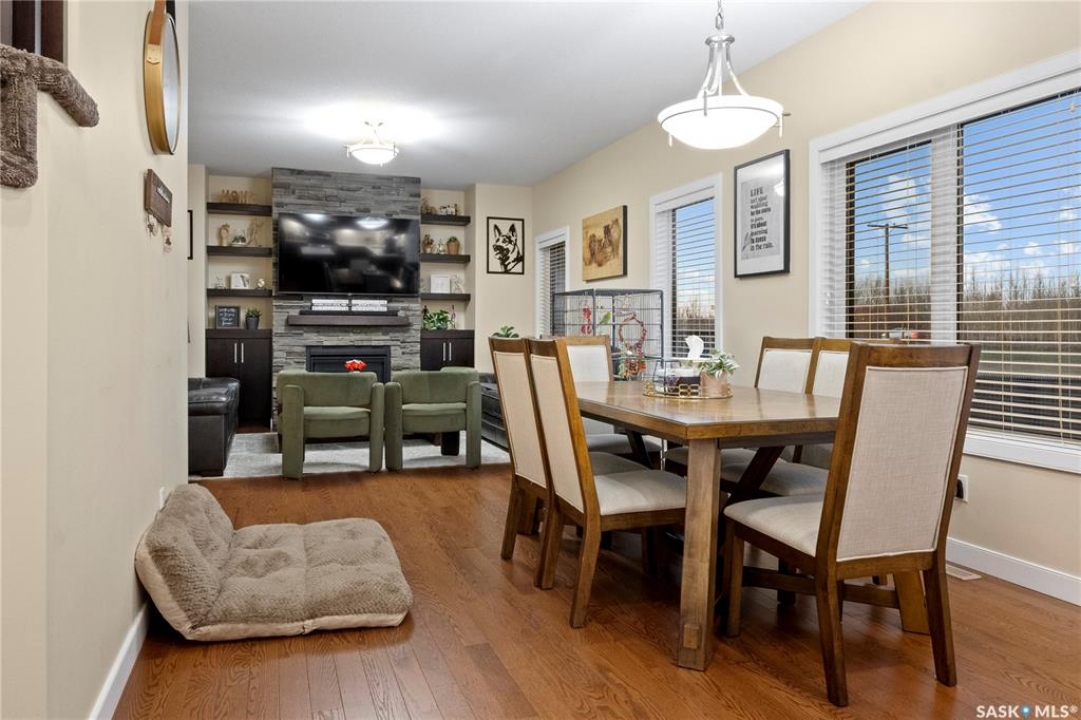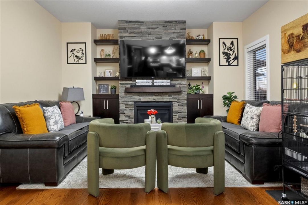 Welcome to 9 Stanford Road, located in the family friendly subdivision of Bower West in White City. This 1716 sq ft two storey home offers a bright, open layout designed for comfortable family living. The front living room provides a warm and welcoming space as you enter the home. The kitchen overlooks the backyard and features stainless steel appliances, a gas range, microwave with exterior venting, and quartz countertops. Adjacent to the kitchen is a dining area with access to the large, landscaped, and fenced backyard, complete with a deck and natural gas line for your barbecue. The family room is cozy and inviting with a natural gas fireplace framed by custom cabinets and open shelving on both sides. Beautiful hardwood flooring runs throughout the main living areas. A main floor den makes an ideal home office, and the main level is completed by a two piece bathroom and convenient laundry closet. The second floor offers three bedrooms, including a spacious primary suite with a walk in closet and a four piece ensuite featuring a corner tub. Two additional bedrooms and another four piece bathroom complete the upper level. The basement is large, open, and ready for future development to suit your needs. Located in a quiet and desirable neighbourhood close to parks, schools, and local amenities, 9 Stanford Road is an excellent opportunity for families seeking space, comfort, and community. Contact your real estate professional to book a viewing today.