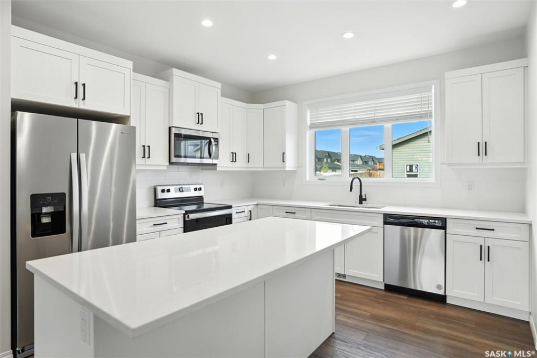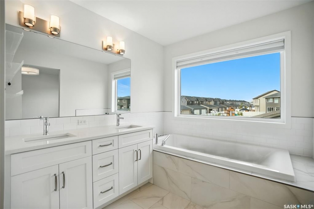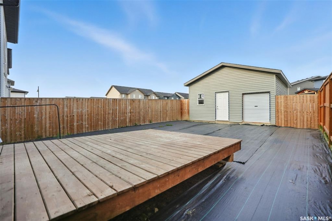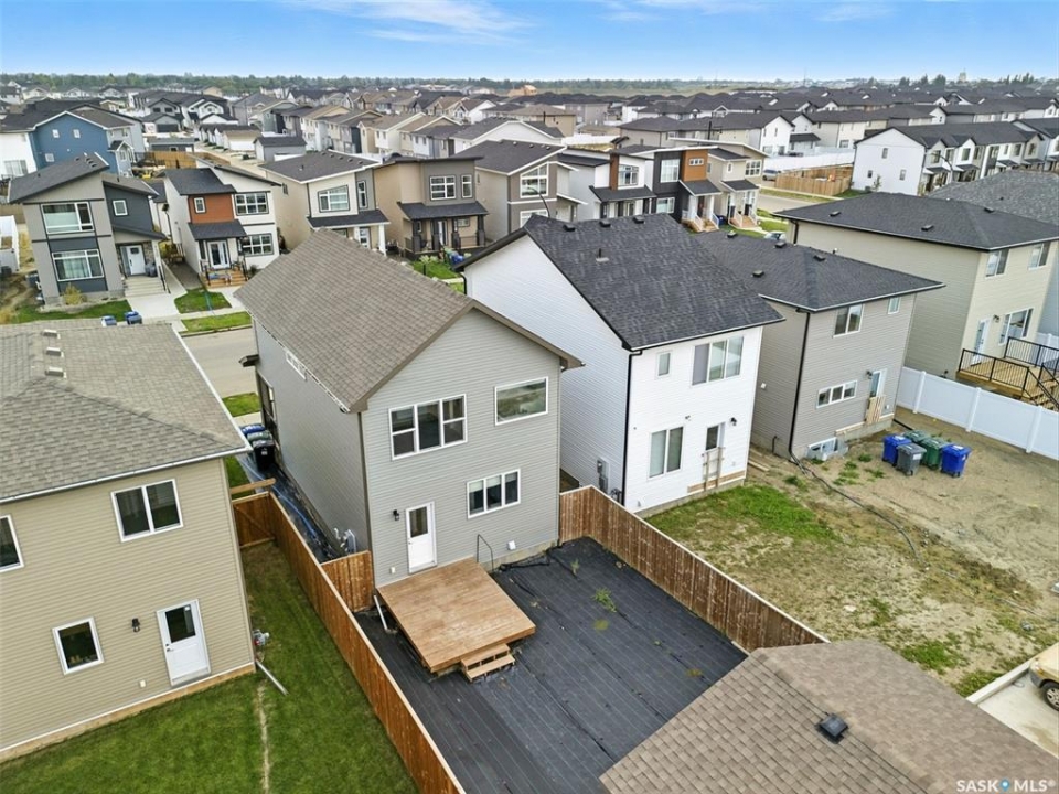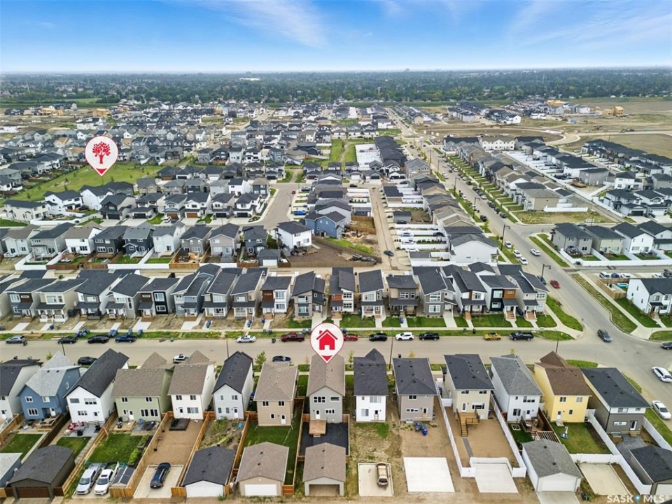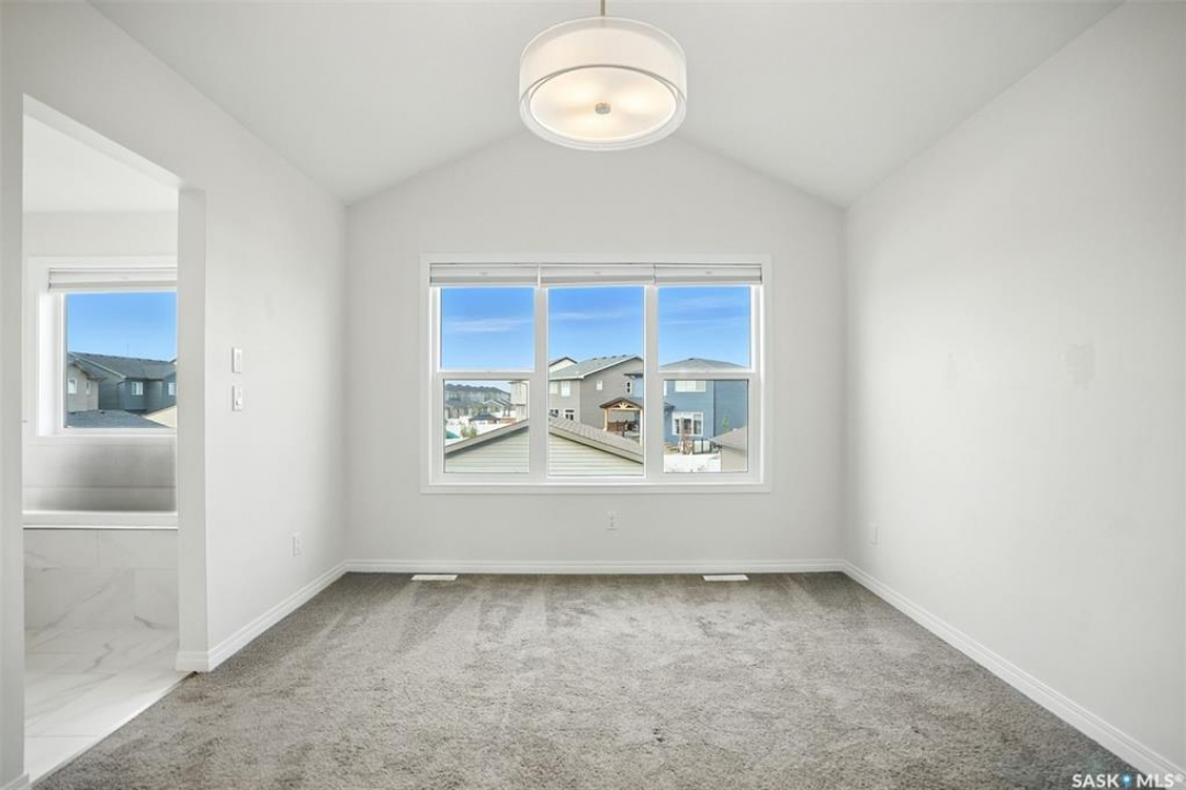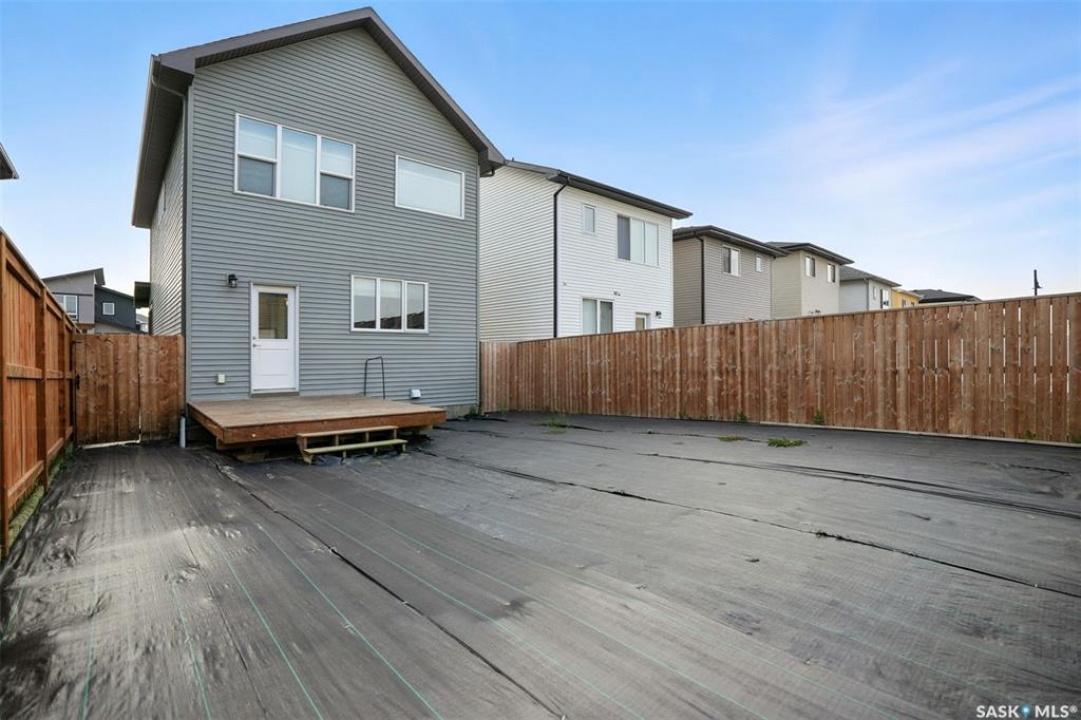 This 1,519 sq. ft. Dream home offers immediate possession, meaning you can be settled into your new home just in time for the holidays. Thoughtfully upgraded beyond standard new construction, it includes custom cabinetry, oversized windows, a finished deck, full fencing, patio, front landscaping, window treatments and upgraded laundry room. Set in one of Brighton's most coveted locations, you're less than a block from Brighton's Core Park and the future elementary school! Step inside to 9-foot ceilings and sun-filled spaces that make the main floor feel bright, open, and inviting. The large kitchen has a massive island with great storage, quartz countertops, custom cabinetry, black metal hardware, and upgraded lighting, is a perfect gathering space for everyday living and holiday hosting. Upstairs, the primary suite is a true retreat with oversized windows, vaulted ceilings and a spa-like ensuite featuring double sinks, an oversized soaker tub, and a glass-enclosed shower. Upstairs, there are two additional spacious bedrooms, a beautifully upgraded four-piece bathroom, and a full laundry room with cabinetry and a folding counter. Outside, the backyard is fully fenced yard with deck are ready for your finishing touches, the garage offers a drive through overhead door for small equipment making landscaping a breeze. And when it comes to convenience, Brighton has it all - shops, restaurants, a movie theatre, and everyday amenities just minutes away. With nearby bus stops, schools, daycares, and quick access to the U of S and downtown, this is a home built for comfort, community, and making memories.