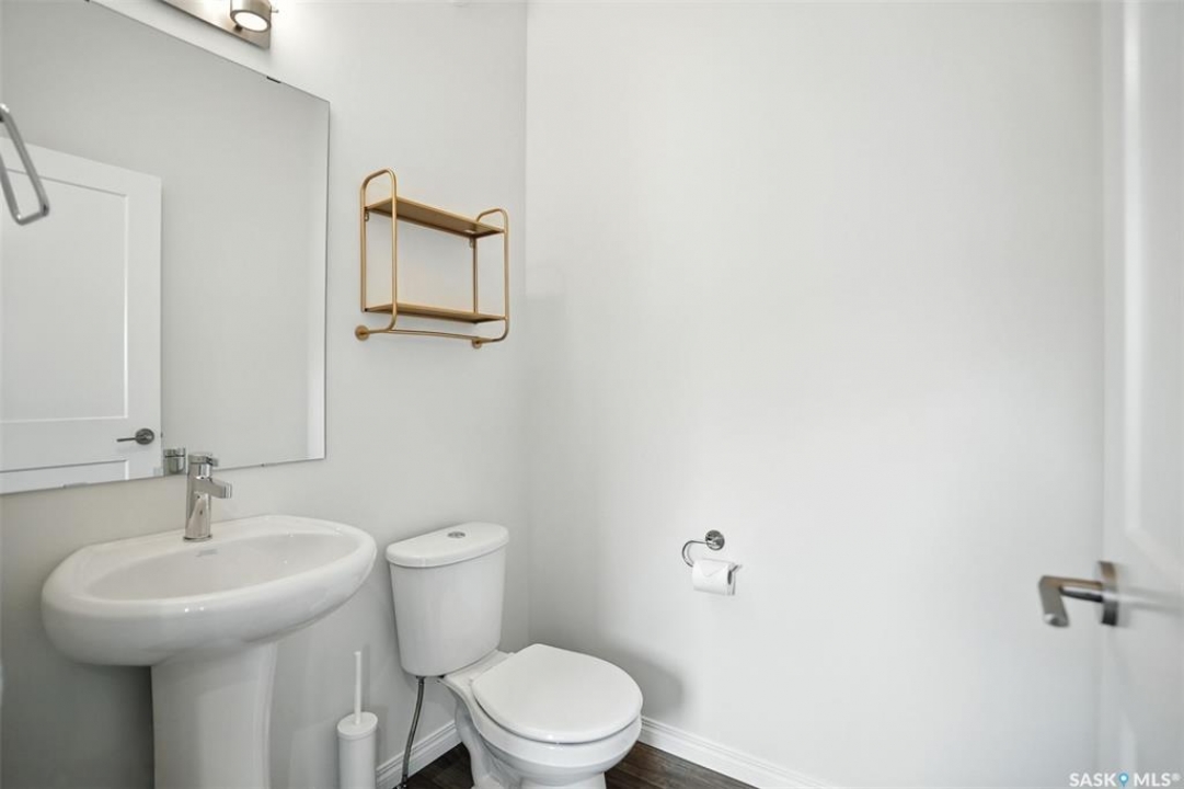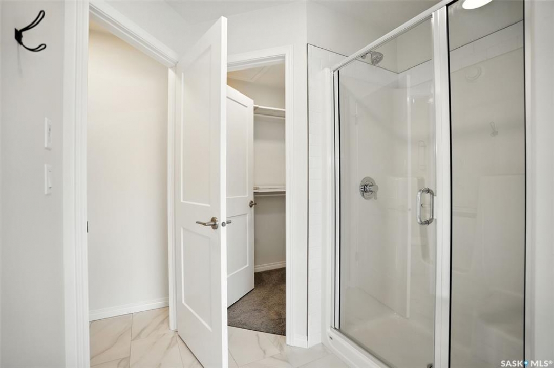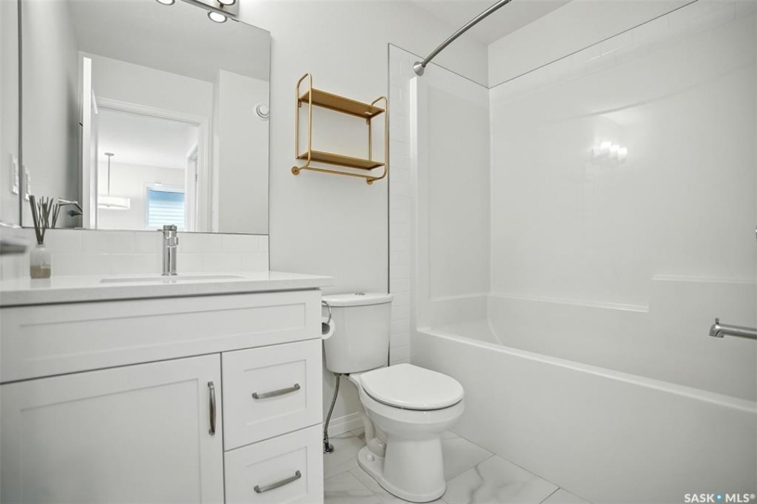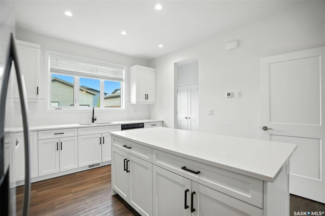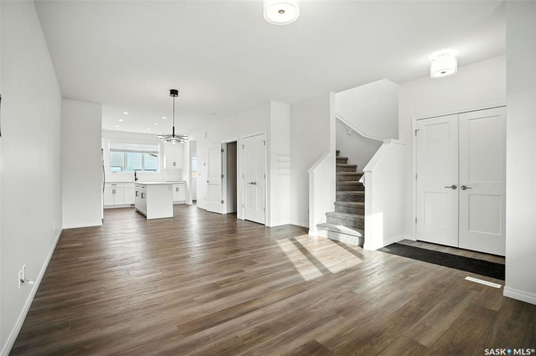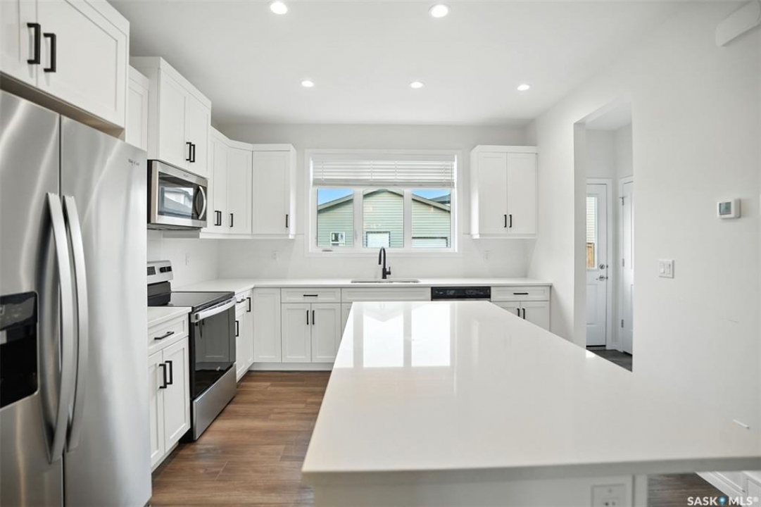 This 1,519 sq. ft. Dream home offers immediate possession, meaning you can be settled into your new home just in time for the holidays. Thoughtfully upgraded beyond standard new construction, it includes custom cabinetry, oversized windows, a finished deck, full fencing, patio, front landscaping, window treatments and upgraded laundry room. Set in one of Brighton's most coveted locations, you're less than a block from Brighton's Core Park and the future elementary school! Step inside to 9-foot ceilings and sun-filled spaces that make the main floor feel bright, open, and inviting. The large kitchen has a massive island with great storage, quartz countertops, custom cabinetry, black metal hardware, and upgraded lighting, is a perfect gathering space for everyday living and holiday hosting. Upstairs, the primary suite is a true retreat with oversized windows, vaulted ceilings and a spa-like ensuite featuring double sinks, an oversized soaker tub, and a glass-enclosed shower. Upstairs, there are two additional spacious bedrooms, a beautifully upgraded four-piece bathroom, and a full laundry room with cabinetry and a folding counter. Outside, the backyard is fully fenced yard with deck are ready for your finishing touches, the garage offers a drive through overhead door for small equipment making landscaping a breeze. And when it comes to convenience, Brighton has it all - shops, restaurants, a movie theatre, and everyday amenities just minutes away. With nearby bus stops, schools, daycares, and quick access to the U of S and downtown, this is a home built for comfort, community, and making memories.