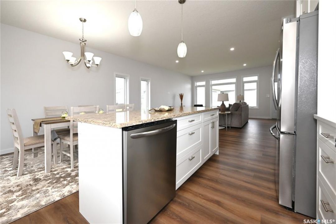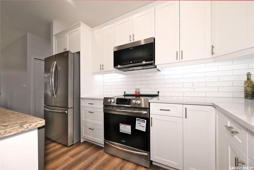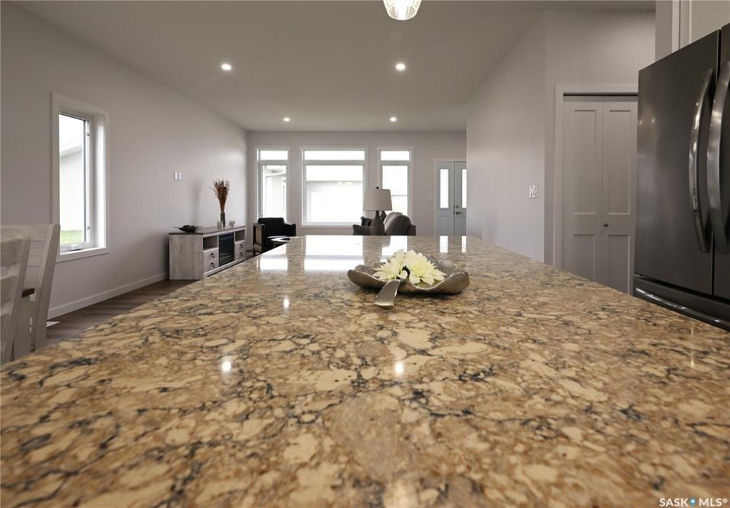 Enjoy the freedom of Northview Estates, built by Hirsch Construction! Upon entering this 2023 development you will notice the street appeal of the low maintenance stucco condos. Bungalow #3 is a stunning 1,304 sq foot condo that perfectly epitomizes modern living, all on one level. The interior offers high end designer finishes, lighting package, quartz counter tops in the kitchen, quality cabinets and flooring, all completed with care and craftsmanship. The 9 ft ceiling and large windows throughout the main floor give the desired bright open feeling one is looking for in a home. The kitchen, dining area, and living room areas are sunny, airy, yet comfortable and cozy with ample space for entertaining. The primary bedroom retreat is large enough for a king bed & includes a walk in closet and an ensuite with double sinks and a walk-in shower. The 2nd bedroom could easily be used as an office. The 4 piece bathroom & main floor laundry complete this floor. This home has a low maintenance deck, with no hassle natural gas bbq hookup, perfect for relaxing with family and friends. Come home and park your vehicles in an insulated, heated, and drywalled, 24' x 26' car garage, safe from all the elements. No more mowing or snow shoveling for you. Enjoy all that Northview Estates has to offer in one Estevan's newest neighbourhoods. Once condo fees are assessed, they will include all City of Estevan utilities, common area maintenance, snow removal, lawn care, and reserve fund. Items to note: HRV system, central vac plus attachments, Dual Low E Argon windows, central air conditioning, water softener, built in microwave, soundproof furnace room, soundproof interior doors, heated crawl space, underground sprinklers, visitor parking. New owner can build fence for a private backyard.