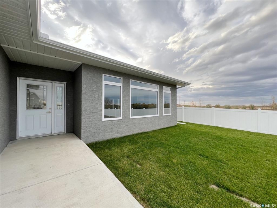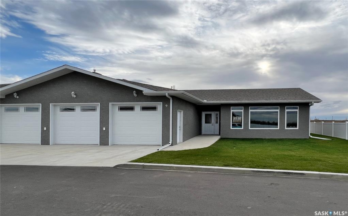 Enjoy the freedom of Northview Estates, built by Hirsch Construction! Upon entering this 2023 development you will notice the street appeal of the low maintenance stucco condos. Bungalow #9 is a stunning 1,846 sq foot condo that perfectly epitomizes modern living, all on one level. The interior offers high end designer finishes, lighting package, quartz counter tops, quality cabinets and flooring, all completed with care and craftsmanship. The 9 ft ceiling and large windows throughout the main floor give the desired bright open feeling one is looking for in a home. The kitchen, dining area, and living room areas are sunny, airy, yet comfortable and cozy with ample space for entertaining. A beautiful gas fireplace, framed with faux rock is situated in the living room, which is wonderful for those chilly winter days. The primary bedroom retreat is large enough for a king bed & includes a walk in closet & the ensuite has a quartz top vanity and walk in shower. The 2nd bedroom could easily be used as an office. An added feature is a bonus room which could be used as a walk in pantry, office, or general storage. The 4 piece bathroom & main floor laundry complete this floor. This home has a low maintenance deck, with no hassle natural gas bbq hookup, perfect for enjoying the view with family and friends. Come home and park your vehicles in an insulated, heated, and drywalled, 36' x 26' TRIPLE car garage, safe from all the elements. Enjoy all that Northview Estates has to offer in one Estevan's newest neighbourhoods. Once condo fees are assessed, they will include all City of Estevan utilities, common area maintenance, snow removal, lawn care, and reserve fund. Items to note: HRV system, central vac plus attachments, Dual Low E Argon windows, central air conditioning, water softener, garburator, soundproof furnace room and interior doors, heated crawl space, underground sprinklers, and visitor parking. New owner can build fence for a private backyard.