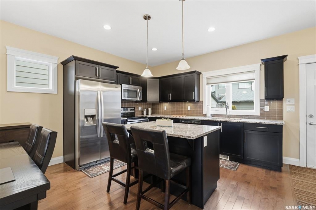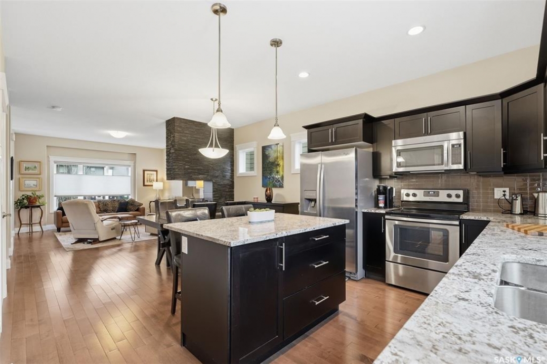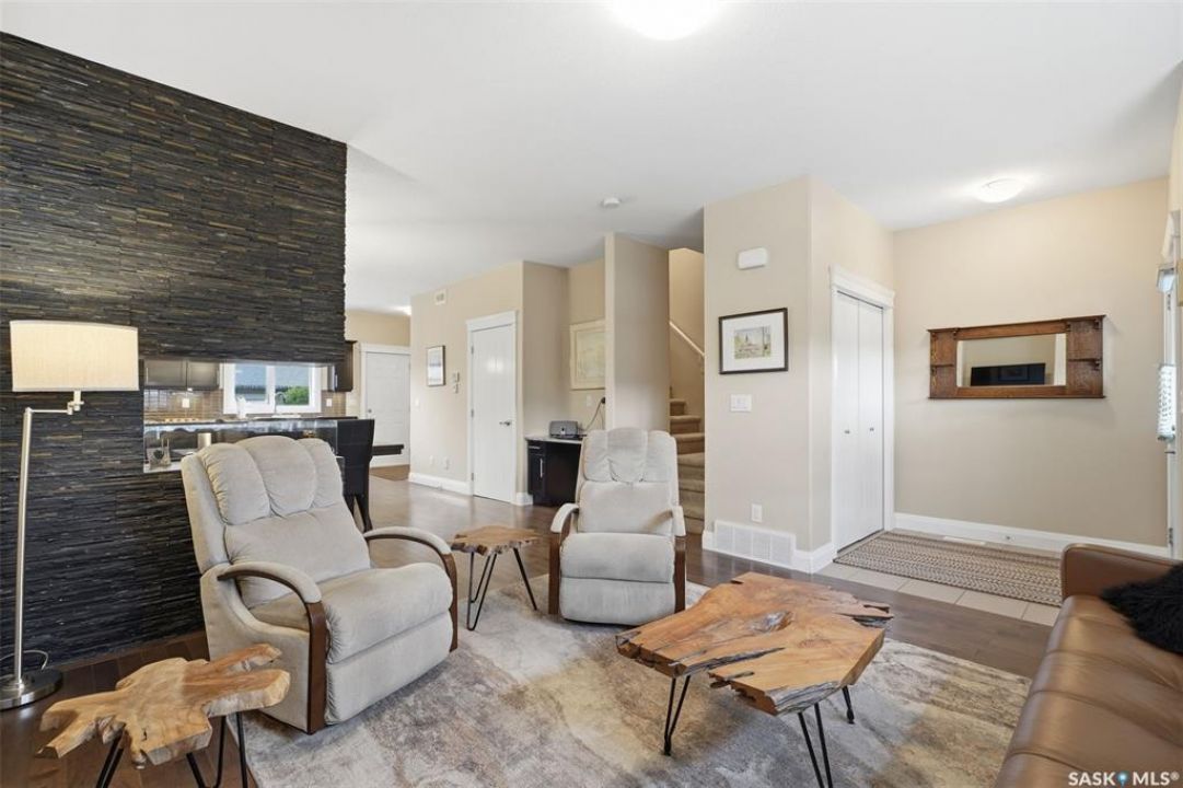 Step inside 29-111 Rosewood Gate N, a corner-unit townhome that blends modern finishes, thoughtful design, and exceptional natural light in one of Rosewood's most sought-after townhome developments- the Centurion. The main floor immediately delivers with 9' ceilings, expansive and additional windows which can only be found in an end unit, and an open concept layout that balances flow with subtle definition between the living, dining, and kitchen areas. A striking bio ethanol burning fireplace anchors the living space, creating a warm focal point, while the kitchen elevates everyday functionality with quartz countertops, a large island with seating, sink overlooking the backyard, ample cabinetry, stainless steel appliances, and a clean tile backsplash. The back entry is equally well executed, offering extra storage and a conveniently located 2 piece bathroom. The second level offers three comfortable bedrooms, with the primary bedroom featuring a walk in closet and 5 piece ensuite with dual sinks and quartz countertop. You'll also find an additional 4 piece bathroom with and dedicated laundry closet on this level. The basement is fully finished with a spacious family room with feature electric fireplace and a large bedroom with access door directly into the 3 piece bathroom. Outside, the private fenced yard offers a large patio and xeriscaped yard- perfect for those seeking a low maintenance lifestyle. Ample street parking for guests, and a residents-only back lane leading to the double detached garage enhance both privacy and practicality. Additional notable features include Hunter Douglas blinds throughout, quartz countertops in kitchen and all bathrooms, HRV, and Central AC for year round comfort. Extreme pride of ownership is evident throughout. If you're in the market for a modern and functional home with a low maintenance lifestyle, your search is over- welcome home!