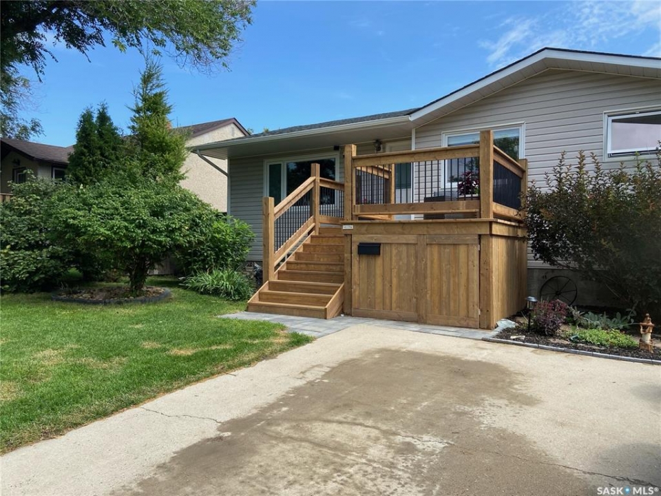 Walk up these 2025 stairs to a brand new deck with storage under it for many of your treasures. This 1980 house was moved onto a 2010 basement with 9' walls and completely upgraded at that time. Newer kitchen cabinets, flooring and stainless steel appliances flow into the dining area and west facing living room. 2 bedrooms, a 4 piece bath and main floor laundry complete the top level. The lower level has large windows letting in lots of natural light into 2 more bedrooms and a large family/rec area. The 3 piece bath, storage and utility room are efficient and centrally located. With both the furnace and the hot water heater being high efficient helps to minimize your energy bills. an air exchanger and Reverse Osmosis water system complete the upgrade. The backyard is a Get Away in the city with large patio, pergola, hot tub area,(hot tub is negotiable) grassy area for the kids or dogs and 2 storage sheds. Don't Forget to check out the 24' x 24' heated garage to keep the automobiles warm and tools hot and ready for action. Book a showing with your favorite agent and get a good look at this gem of a house/Home.