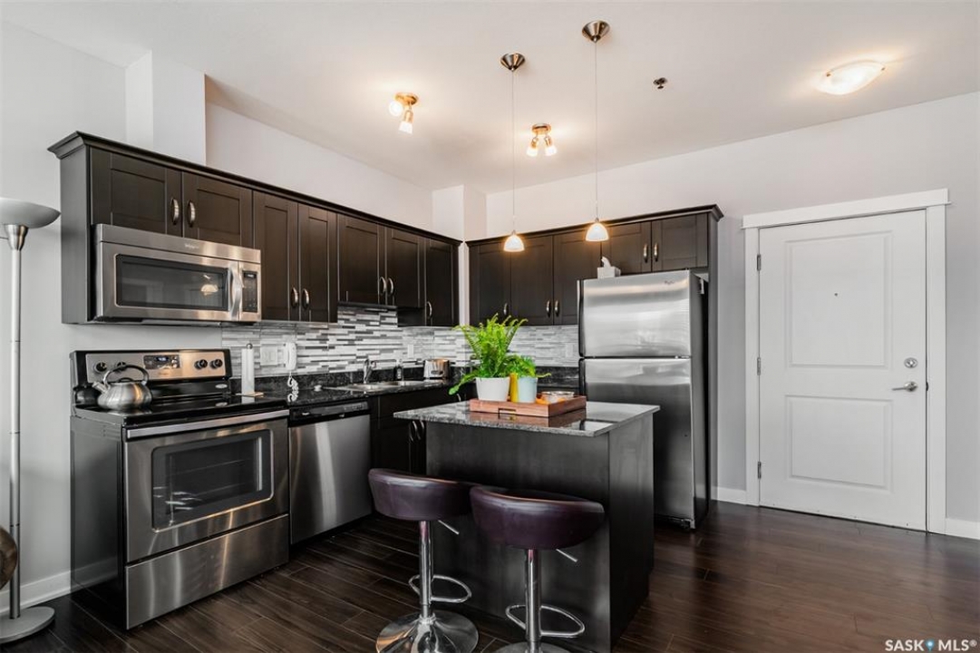Welcome to #307-710 Hart Road — a move-in ready condo that combines comfort, convenience, and value in the heart of Saskatoon's Blairmore neighborhood. This 580 sq. ft. one-bedroom, one-bathroom home has been thoughtfully designed with first-time buyers, students, and investors in mind. The open-concept layout features a stylish kitchen with laminate flooring, granite countertops, and sleek cabinetry. A functional island with seating and extra storage adds versatility and charm. The space flows seamlessly into a bright living room, filled with natural light from large windows. Recently painted and well maintained over the years, this condo truly feels like home. Step outside onto the balcony overlooking your parking stall, convenient for remote control access on those cold winter mornings. Safe, affordable and move in ready! The cozy, carpeted bedroom offers generous closet space, while the 4-piece bathroom and in-suite laundry provide everyday practicality. All appliances are included — fridge, stove, dishwasher, washer, and dryer — making your move effortless. Located in a secure, elevator-equipped building, this condo offers quick access to parks, shopping, public transit, and nearby schools — everything you need just minutes away. With low monthly taxes and a recently replaced boiler system for warmth and efficiency, this is a smart, affordable ownership opportunity.