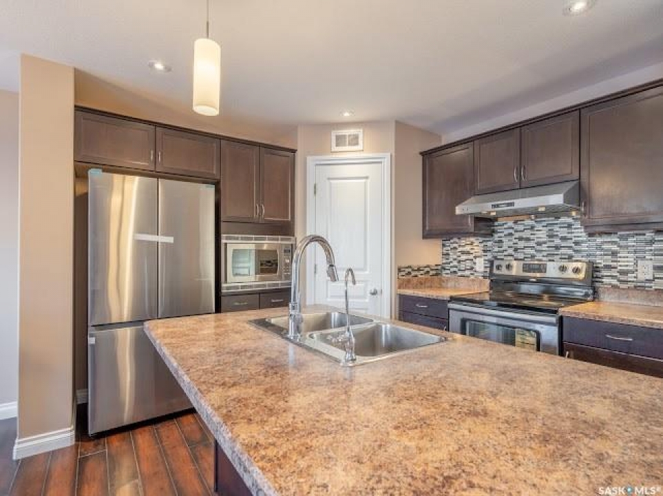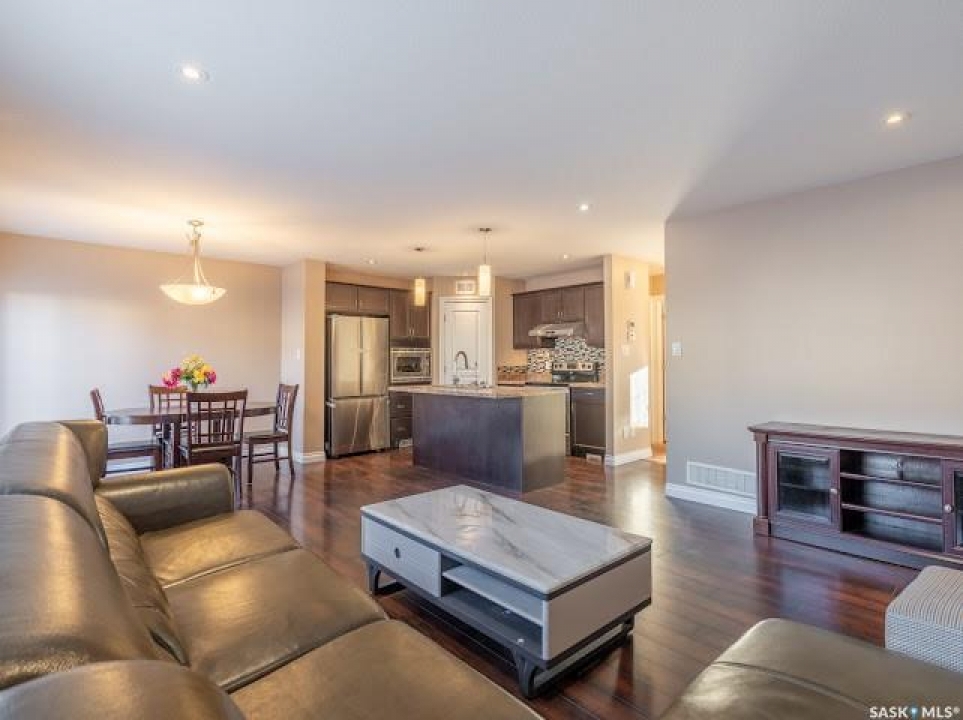 Nestled in the vibrant community of Harbour Landing, this impeccably maintained 2-storey home at 4637 Padwick Road is a true move-in ready gem, awaiting your arrival. From the moment you approach, the attention to detail is evident, starting with the beautiful new flooring that welcomes you inside. The heart of the home is a stunning open-concept main floor, where a chef-inspired kitchen takes center stage—boasting sleek stainless steel appliances, including a brand-new fridge, a spacious island perfect for casual dining, and a generous pantry, all flowing seamlessly into the bright living and dining areas. Step through the sliding doors off the dining room to your private deck and sprawling, fully-fenced backyard, an entertainer's paradise. Upstairs, you'll discover a serene master retreat complete with a convenient 3-piece ensuite, two additional well-proportioned bedrooms, and a pristine 4-piece main bathroom. The incredible fully-finished basement is a major bonus, offering a massive recreation room, a fourth bedroom, and a third bathroom, providing ample space for a growing family, guests, or a home gym. With fresh updates and a thoughtful layout spanning 1,466 sqft, this home effortlessly combines modern convenience with comfortable living—don't let this opportunity slip away; contact your agent now to book your private tour.