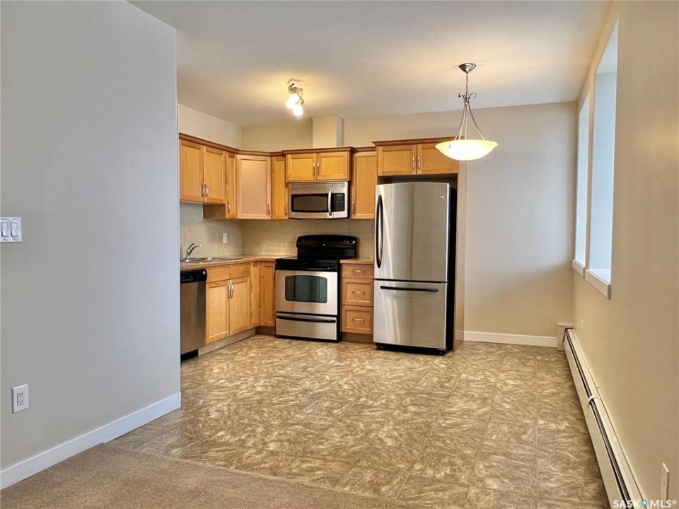 Main floor unit located at end of hallway is bright and well maintained. This functional condo provides shaker style kitchen cabinets that include fridge, stove, built in dishwasher & microwave/fan. One bedroom, full bath unit. Large windows that allow you to view your vehicle stall & easy to start from inside your warm home! Laundry room includes washer/dryer and storage space.