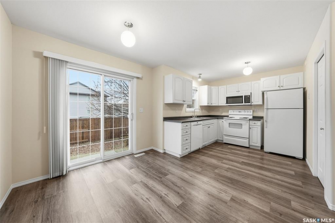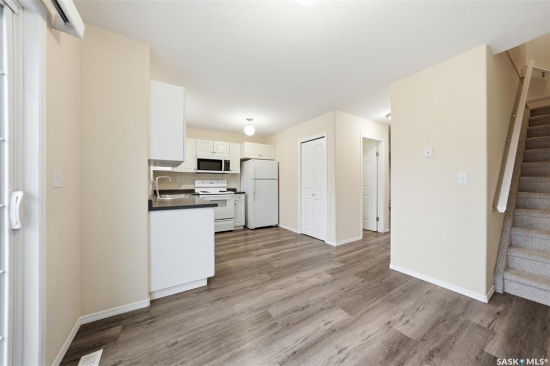 Welcome to Unit 68–135 Pawlychenko Lane — a quiet end-unit townhouse offering two spacious bedrooms and two bathrooms, perfect for university students, young professionals, or first-time homebuyers. Situated in the heart of Lakewood, this move-in-ready home provides exceptional convenience with direct bus service to the university right outside your door. The main floor features bright and functional layout, including living room with newer flooring, dining area, and well-appointed kitchen with heritage cabinets, a pantry, and abundant countertop space. The south-facing backyard offers a private patio, perfect for enjoying sunny afternoons. Upstairs, you'll find two generous bedrooms and a four-piece bathroom, with one bedroom featuring extra side window and double closets. The unfinished basement provides excellent space for storage, laundry, and utilities. Additional highlights include central air conditioning, central vacuum, and newer kitchen appliances, along with washer and dryer replaced in 2023. Two surface parking stalls are conveniently located right in front of the unit. This desirable location is close to parks, shopping, and all amenities.Shows 10/10!