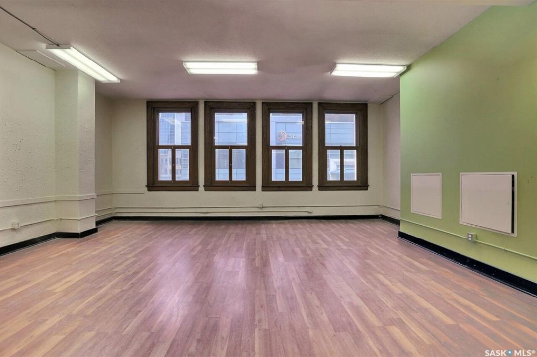 This historic three-storey building is located in the heart of Downtown Regina, surrounded by prominent local businesses and notable landmarks. The top two floors are available for lease, offering approximately 2,500 sq. ft. per level. These flexible spaces are well-suited for a wide range of uses, including office environments, studios, meeting rooms, or workshop space. The landlord is open to subdivision and will work with the tenant to customize the space to their requirements. The main floor is home to Lancaster Taphouse, a long-standing and well-established anchor tenant.