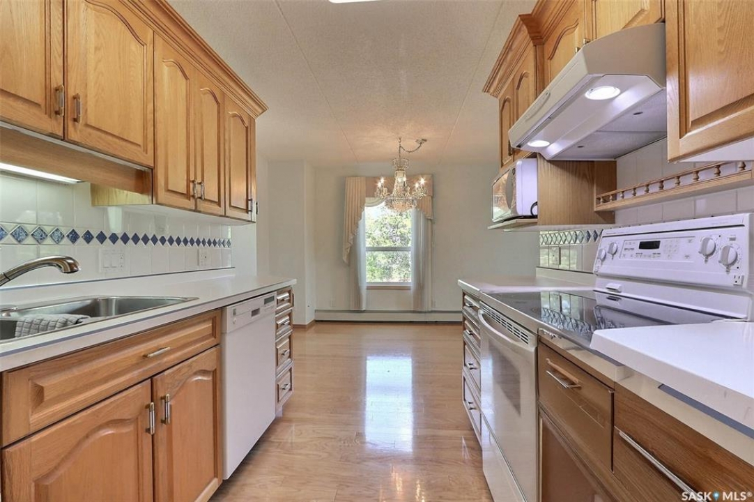 Rare opportunity to own a 4-bedroom 3-bathroom condo in the Regency Arms! Meticulously maintained, this spacious unit offers 2,361 sq/ft of living space with 2 balconies, large windows and faces Southeast, providing plenty of natural light throughout the day. Gleaming hardwood flooring in the dining room and galley kitchen with ample storage, counter space and white appliances. Included in the four bedrooms are two primaries, one with a 4-piece ensuite and one with a 2 piece ensuite. This quiet adult-only building also offers an elevator, underground parking space, gym equipment and a common room available to be used as a guest suite. Blocks away from plenty of amenities such as Safeway, Good Life Fitness, Galaxy Cinemas, Kinsmen Park, restaurants and so much more. If you're looking for low maintenance living without losing the space and storage, this is the unit for you. Don't pass up the opportunity to view this amazing property!